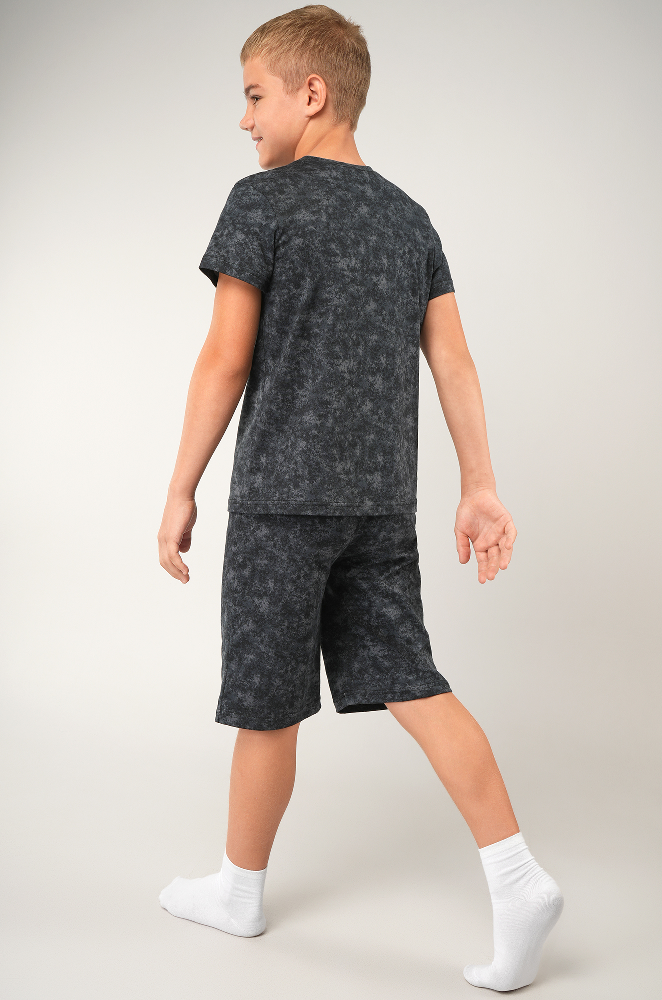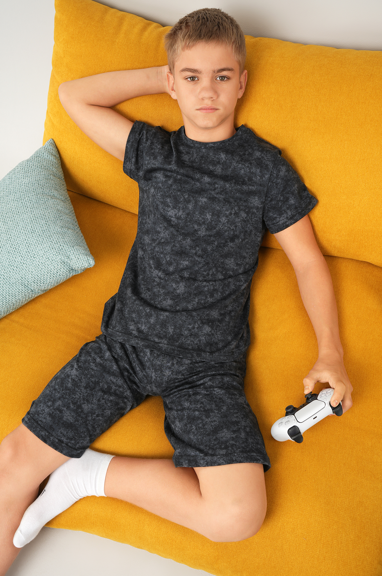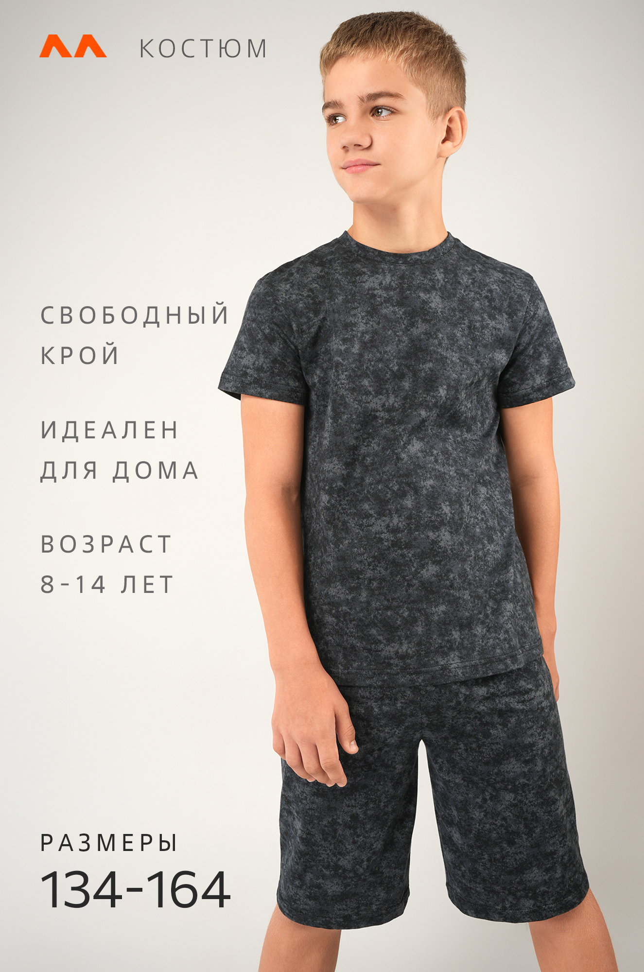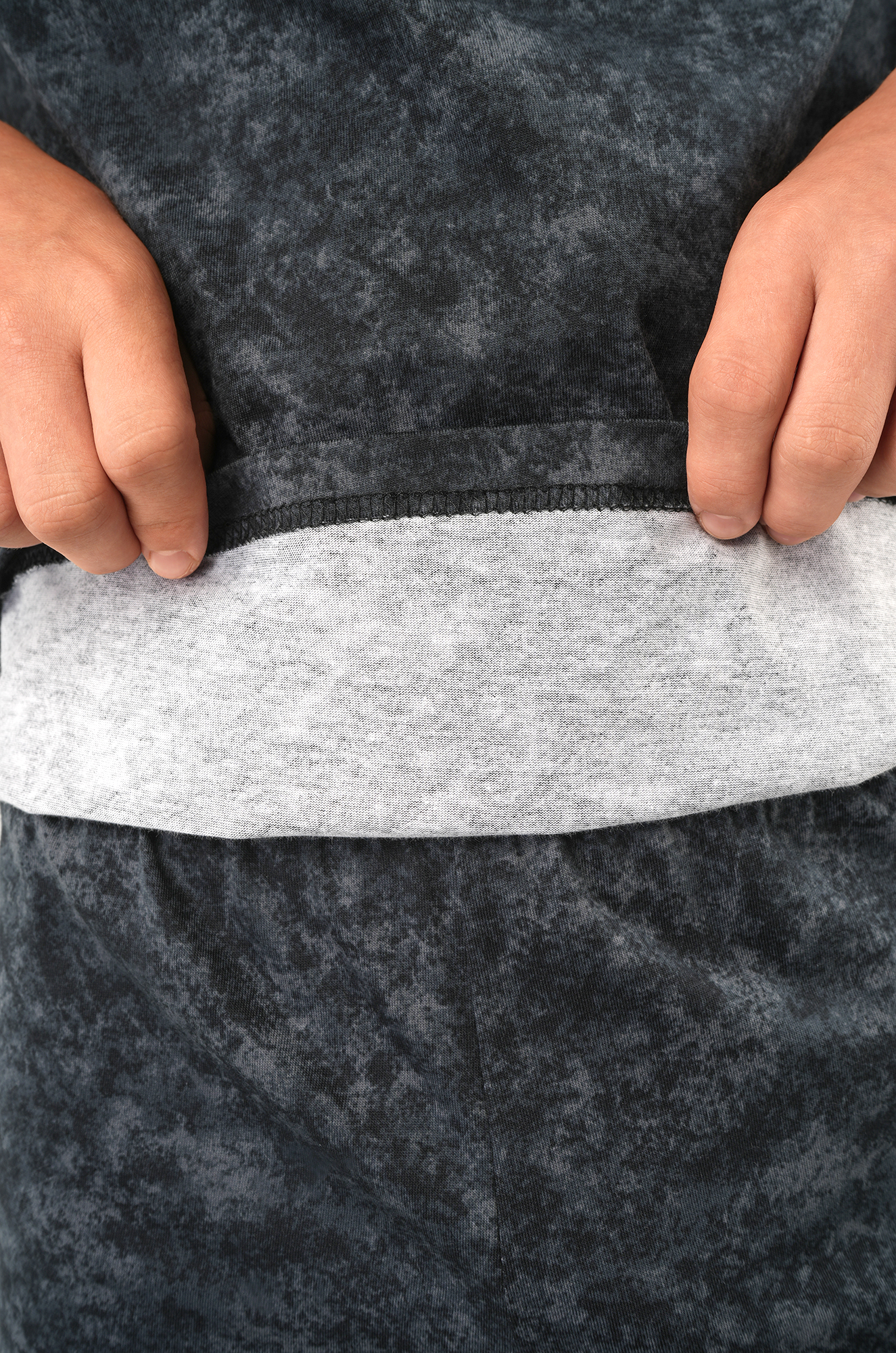 Темно-серый костюм с винтажным эффектом варенка подходит для сна и отдыха. Подростковый трикотажный костюм идеален для дома.