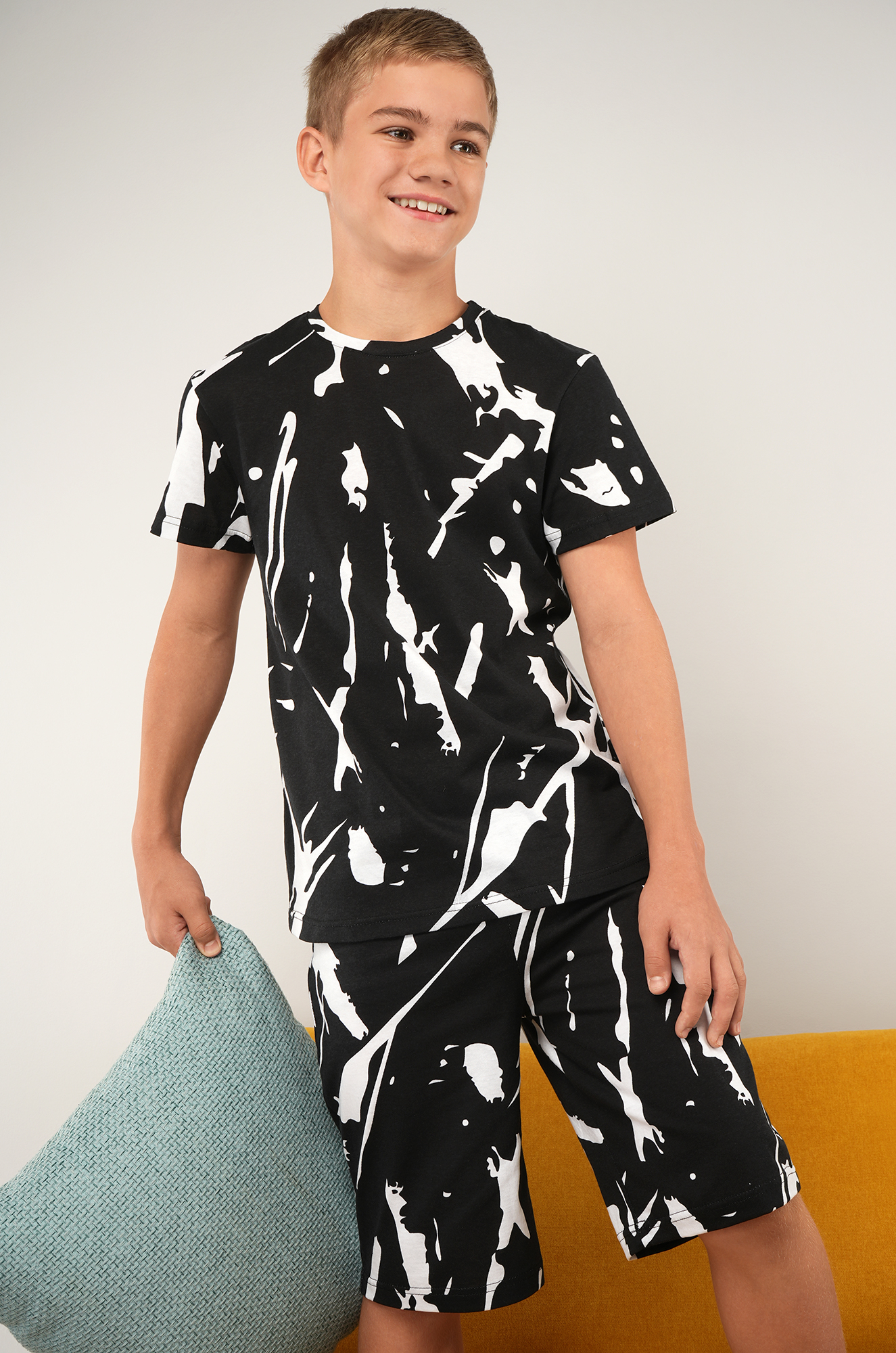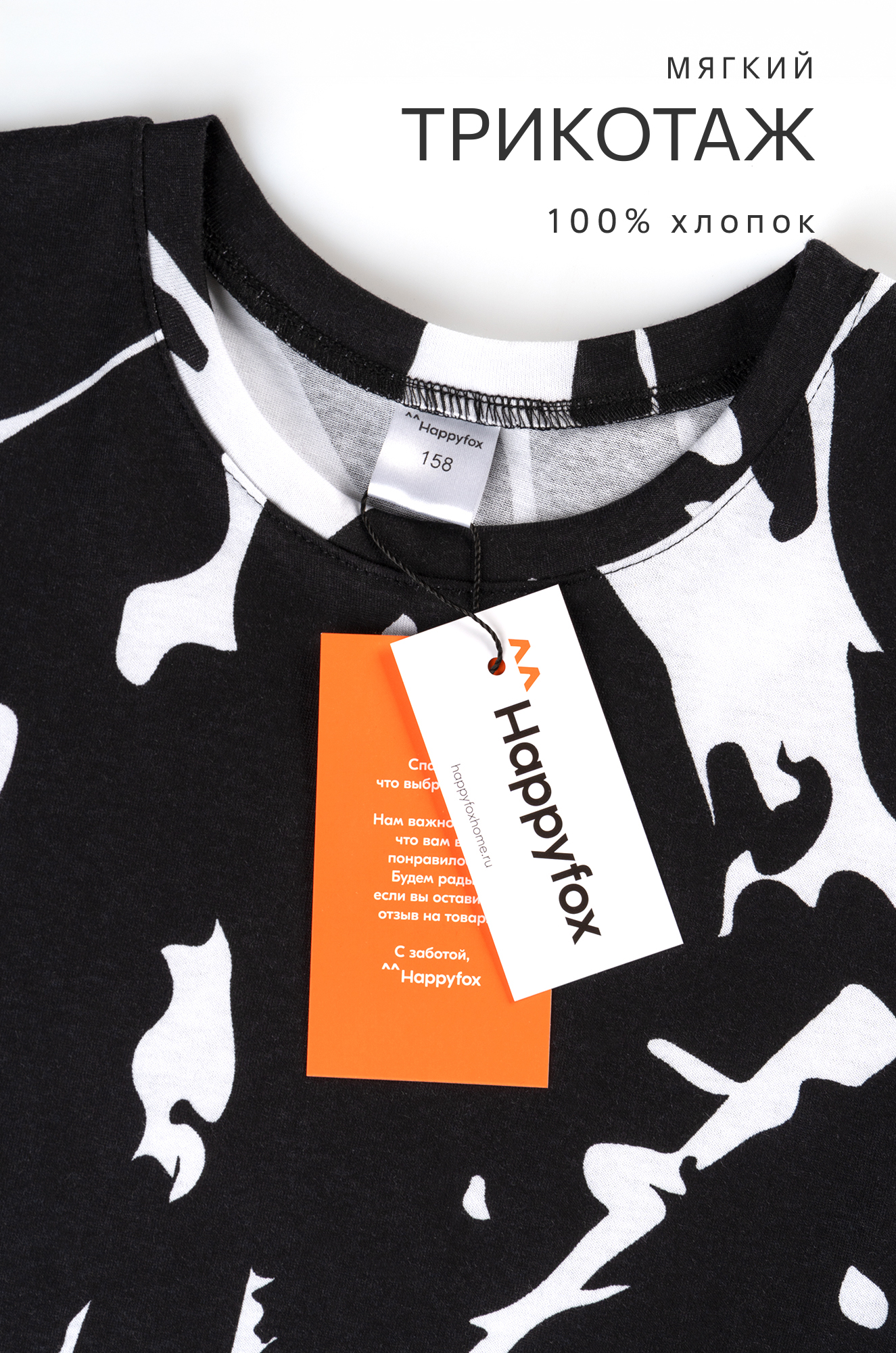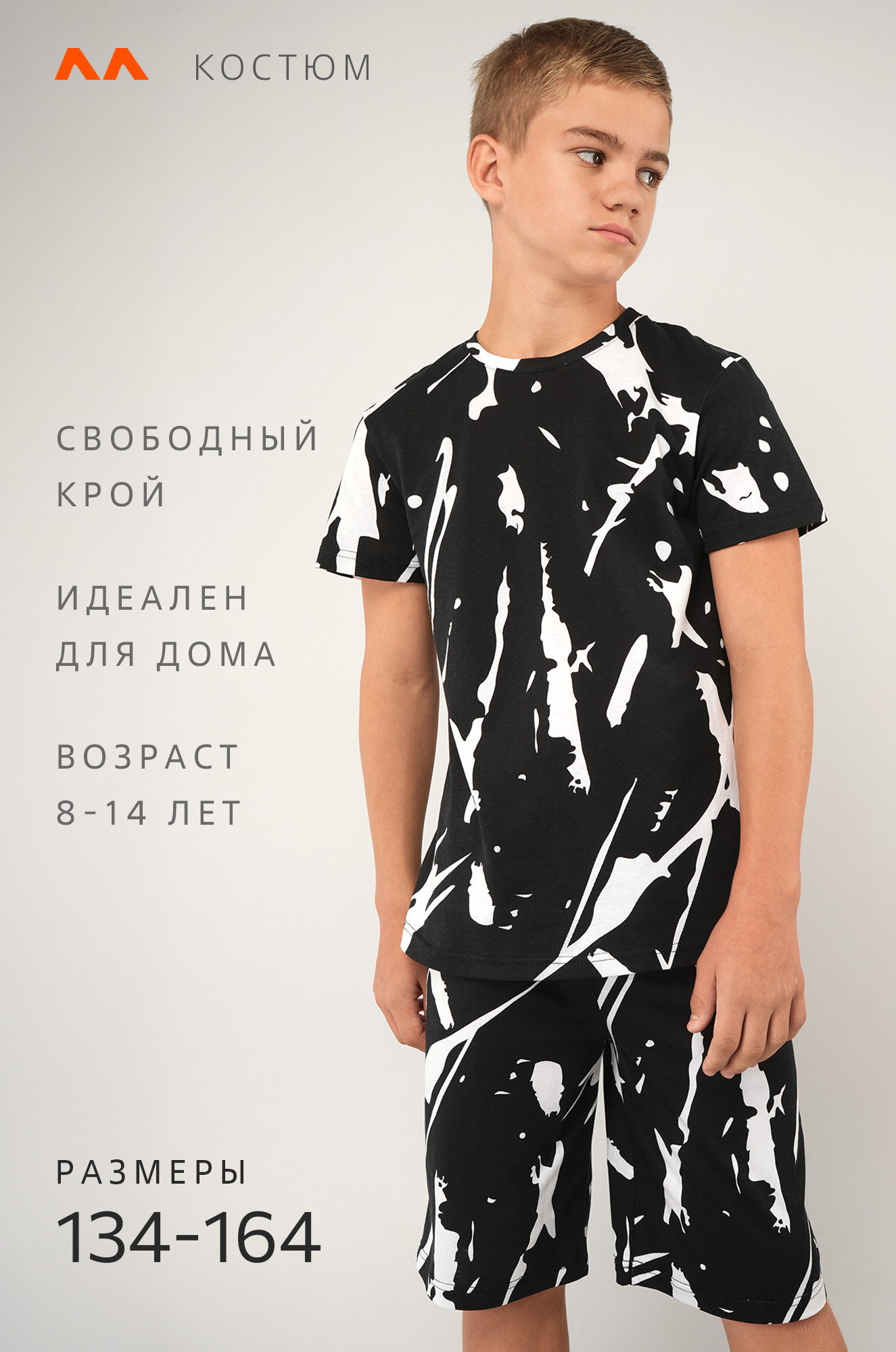 Черно-белый костюм с рисунком подходит для сна и отдыха. Подростковый трикотажный костюм идеален для дома.