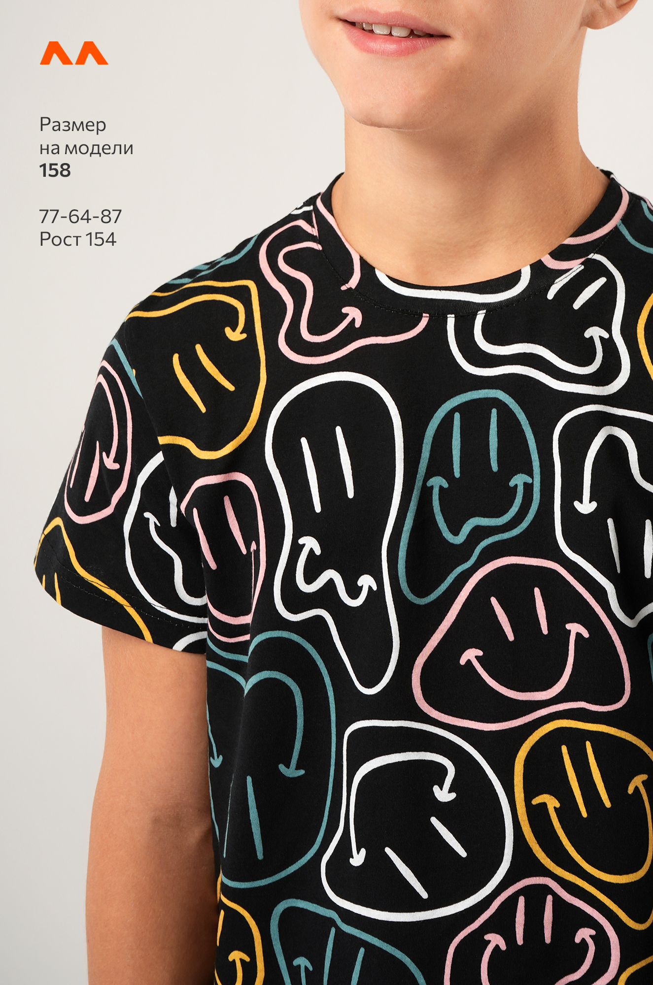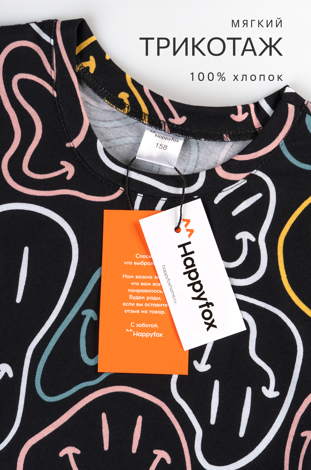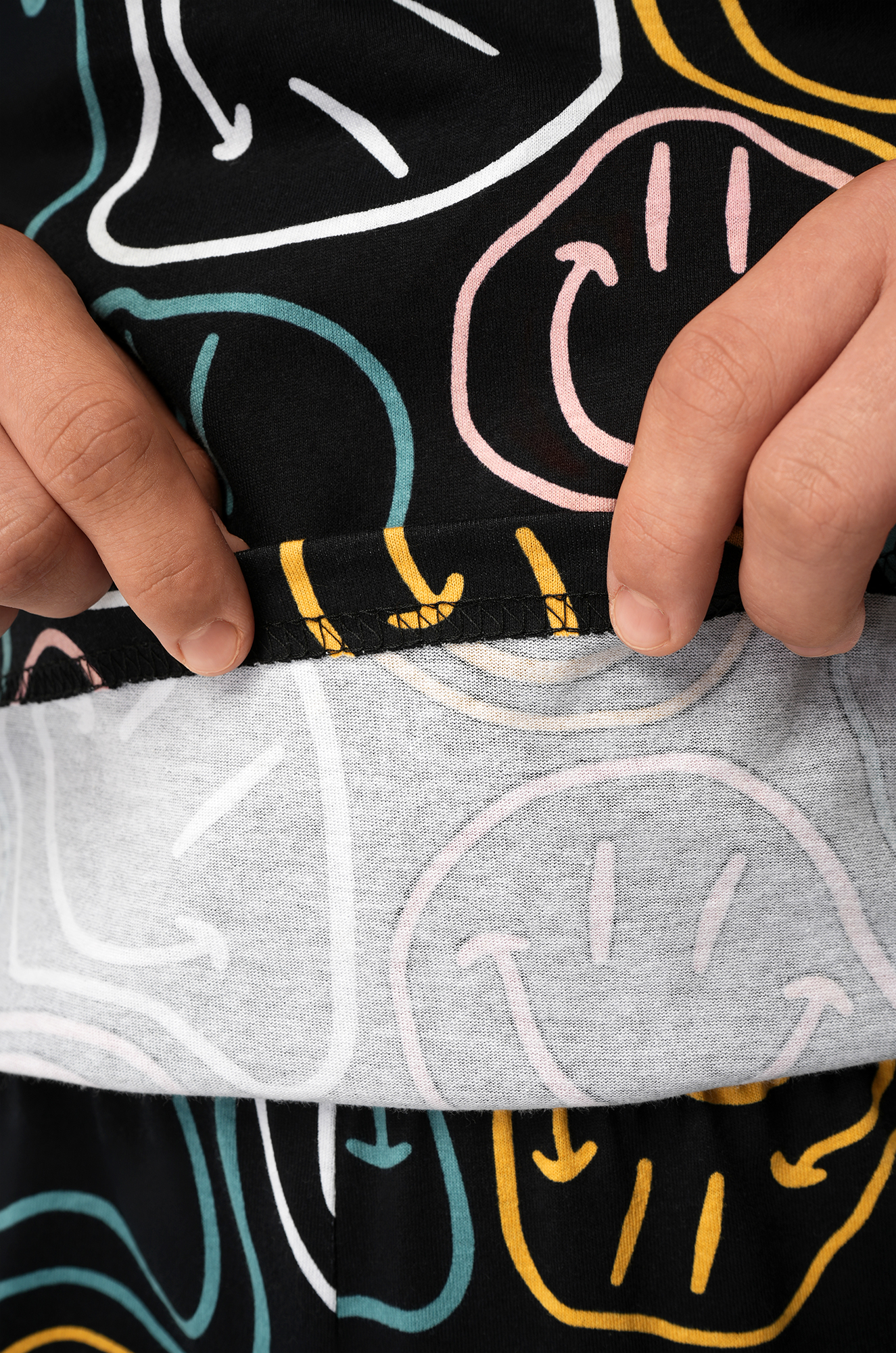 Черный костюм со смайликами подходит для сна и отдыха. Подростковый трикотажный костюм идеален для дома.
