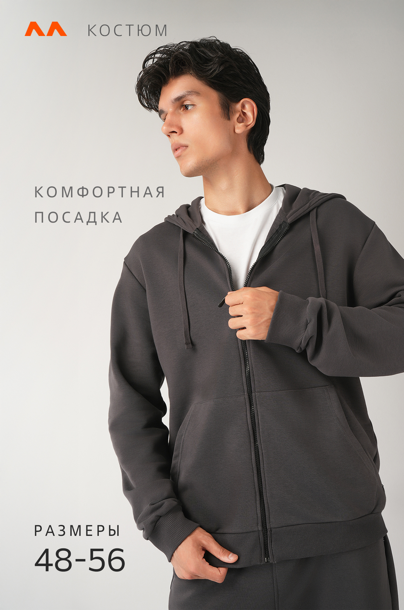 — костюм с толстовкой с глубоким капюшоном дарит уют и комфорт;