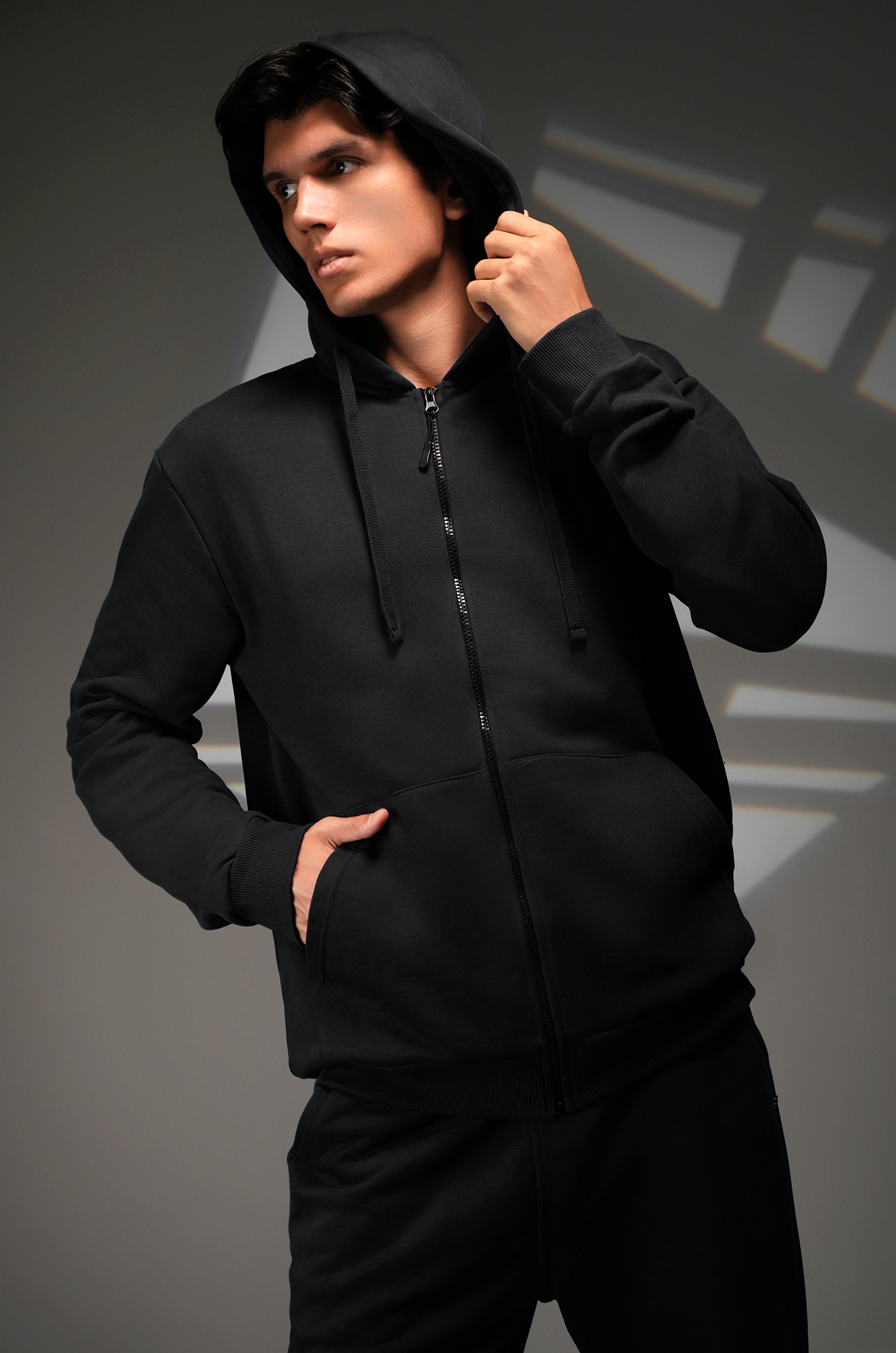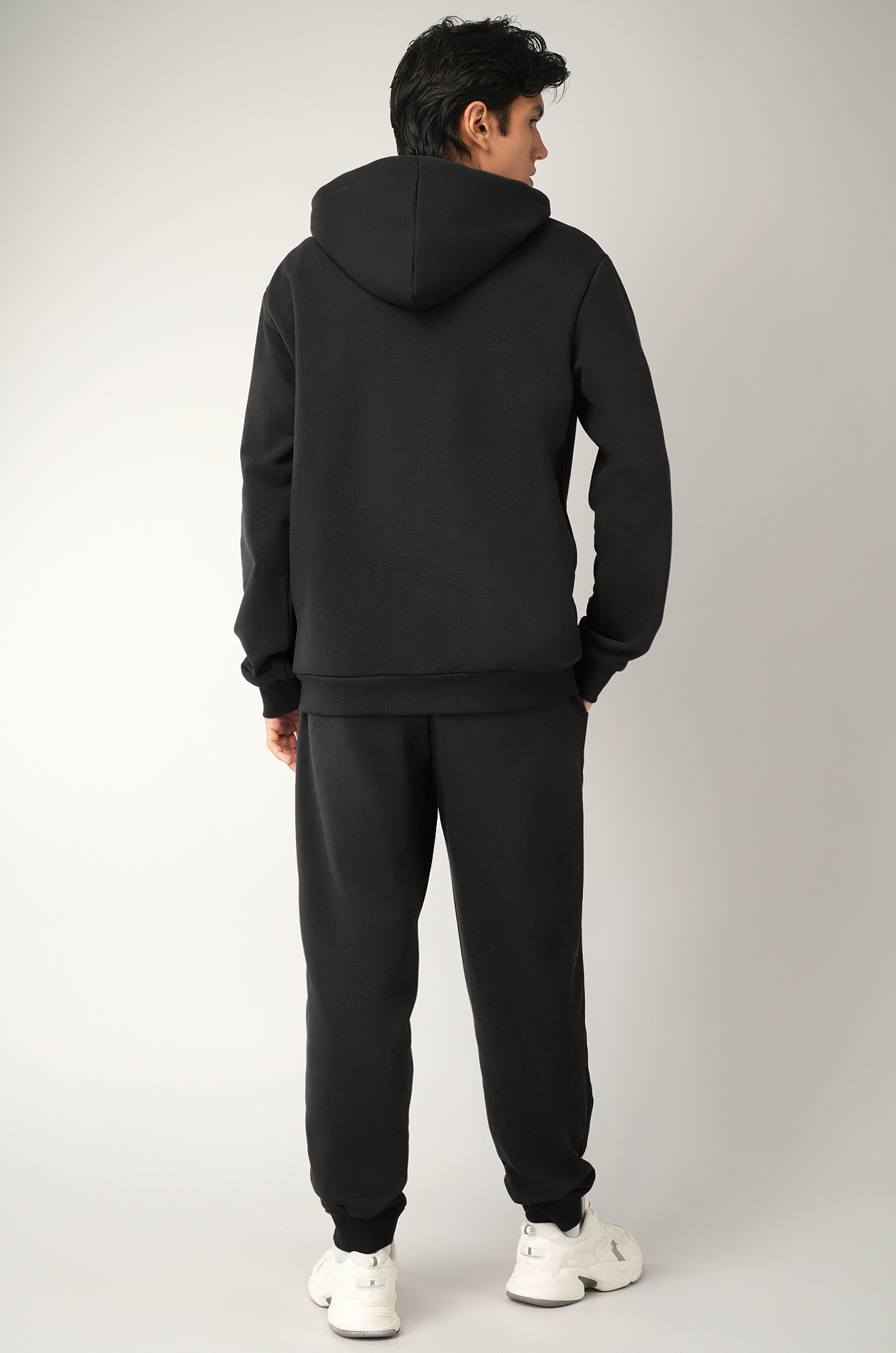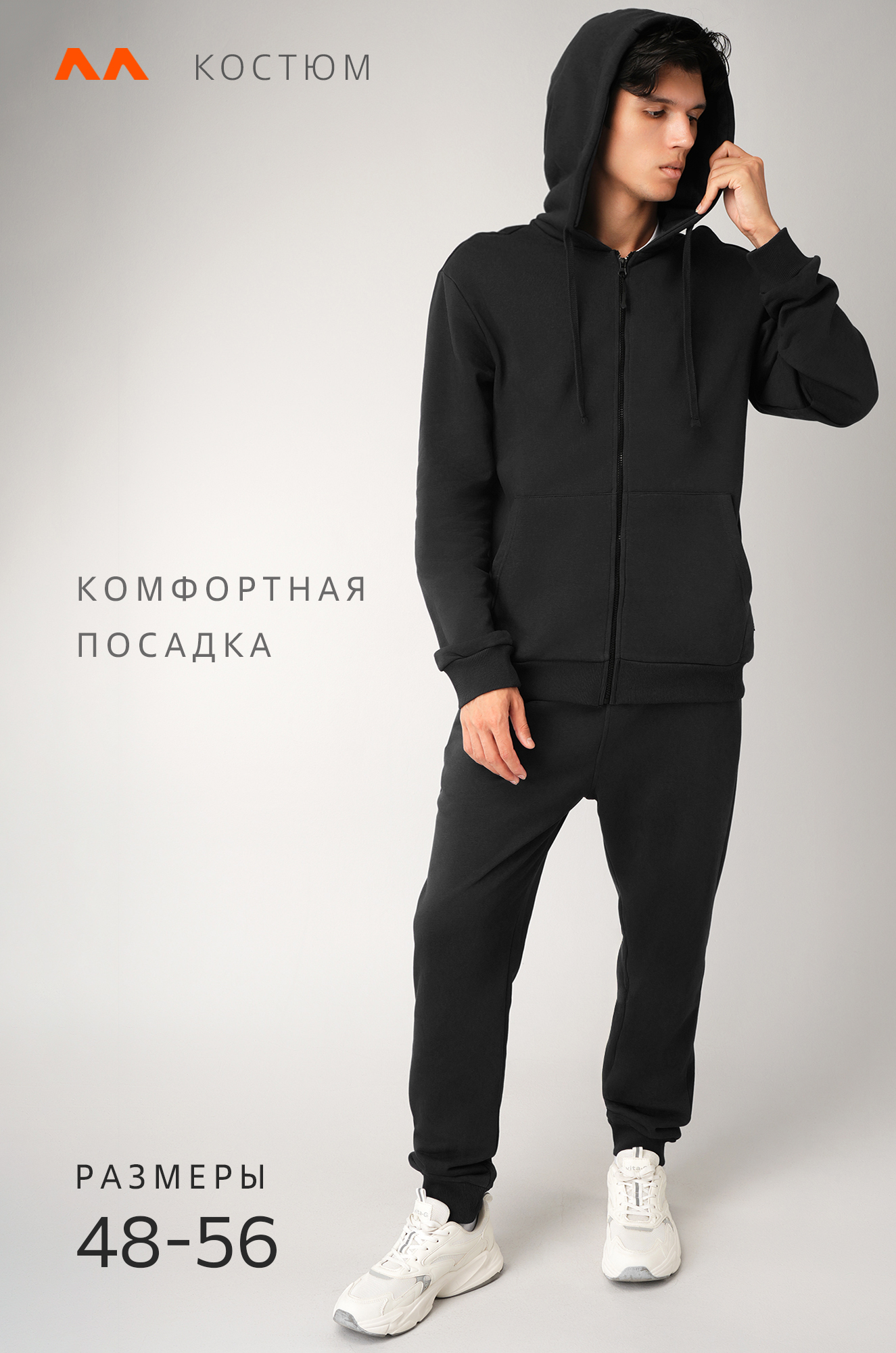 — костюм с толстовкой с глубоким капюшоном дарит уют и комфорт;