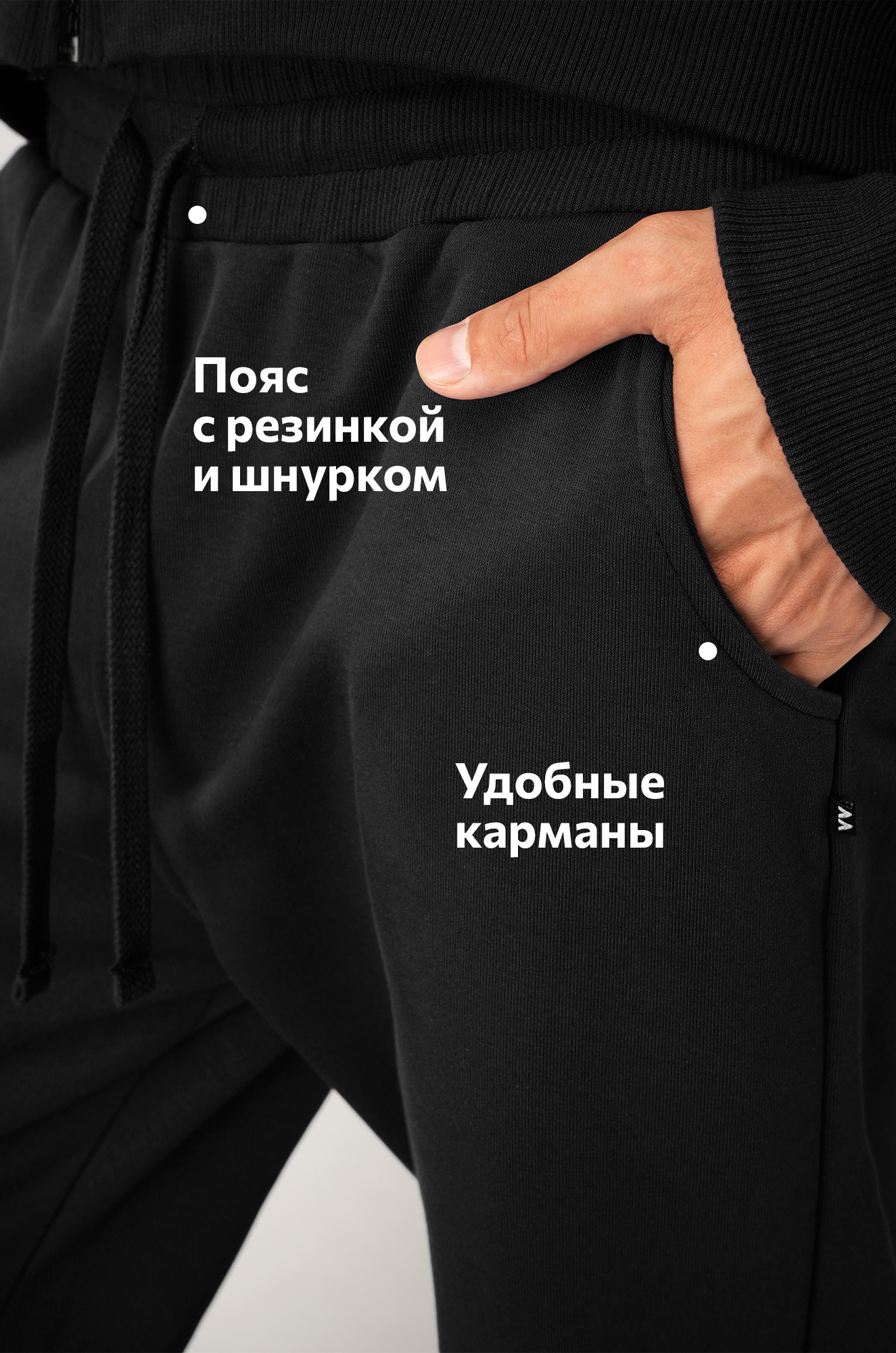 — пояс со шнурком позволяет регулировать посадку брюк;