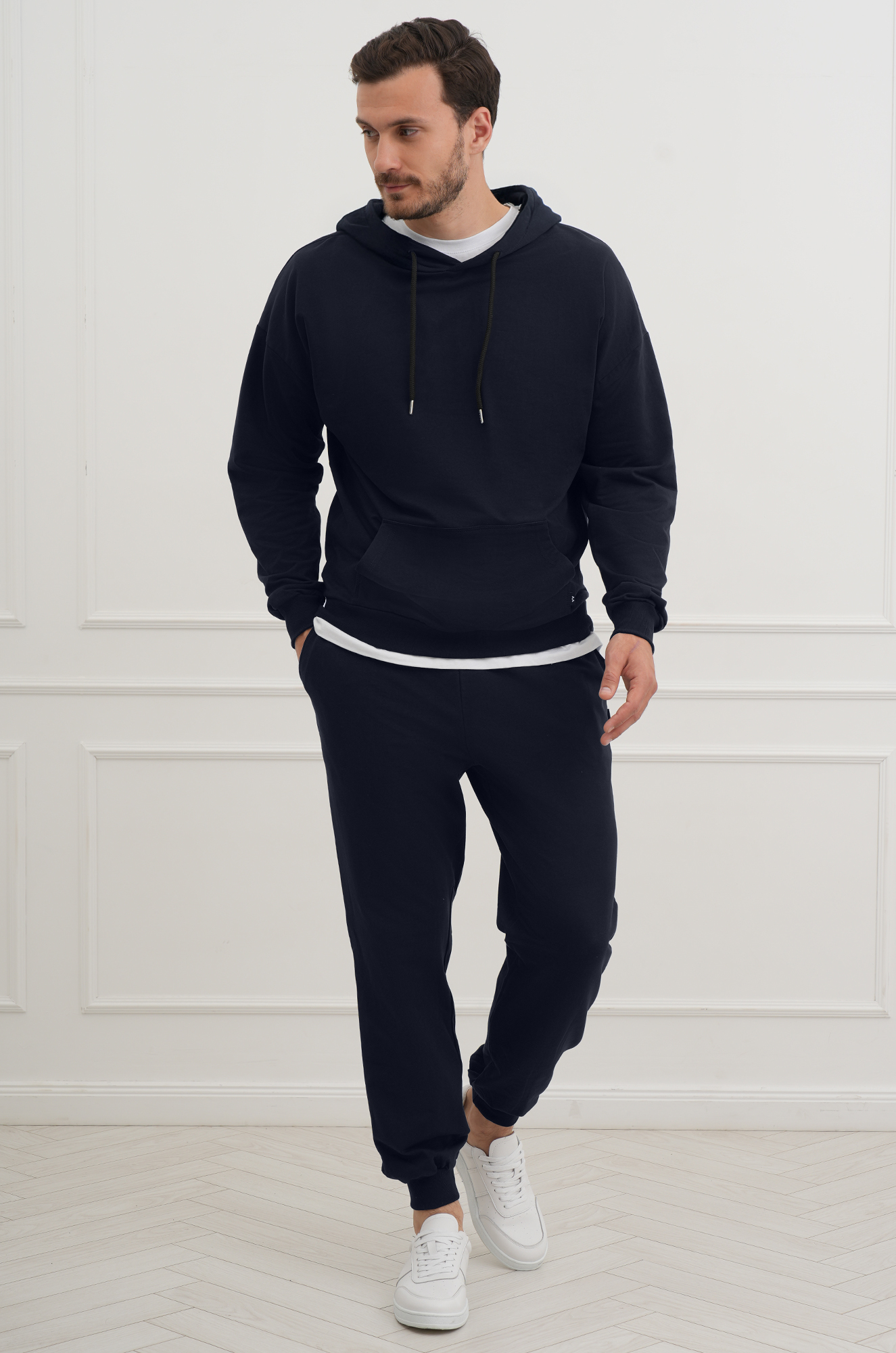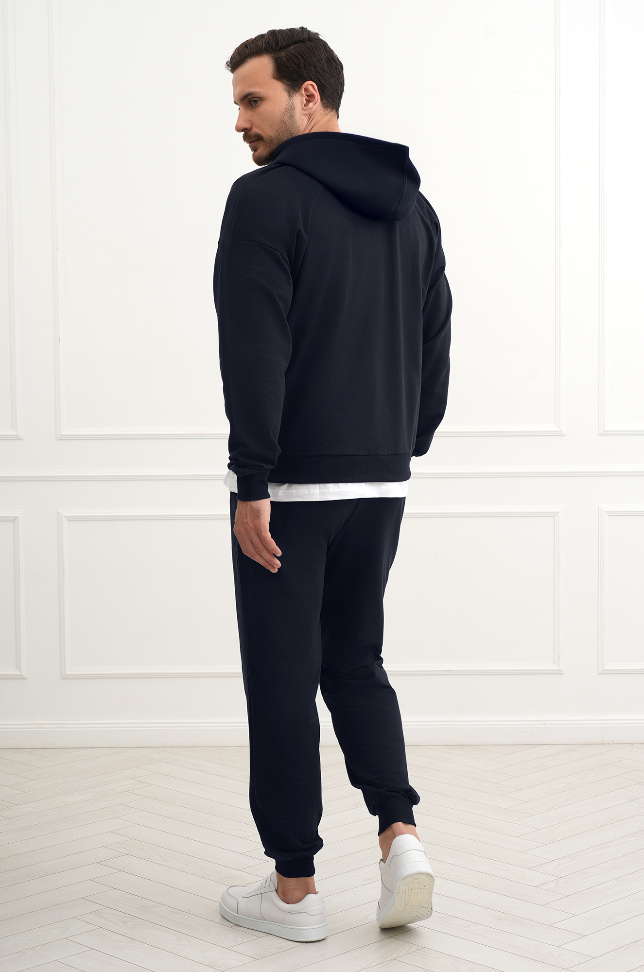Темно-синий спортивный костюм для мужчин станет отличным выбором для тренировок, отдыха и городских прогулок осенью и весной.