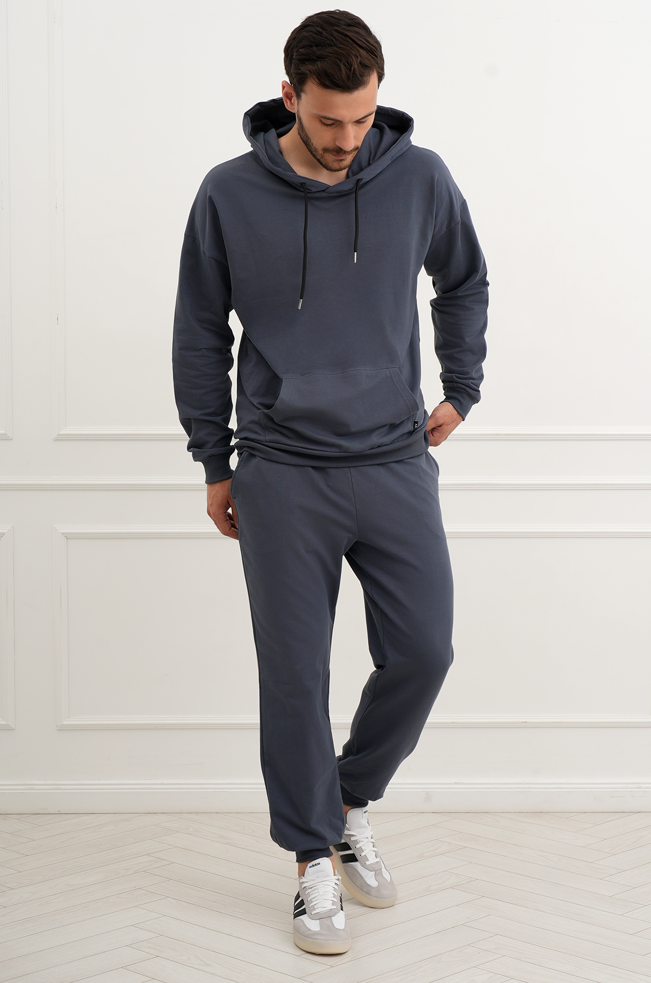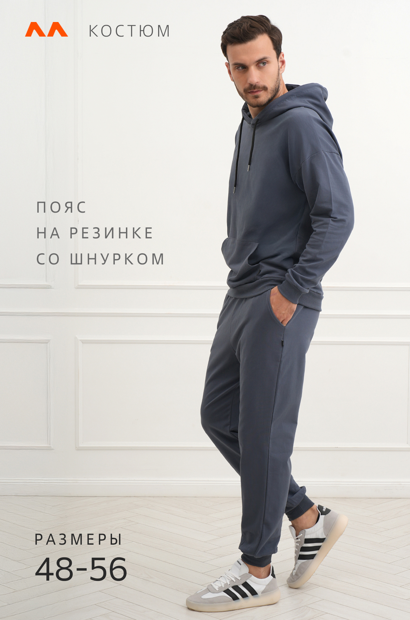 Темно-серый спортивный костюм для мужчин станет отличным выбором для тренировок, отдыха и городских прогулок осенью и весной.