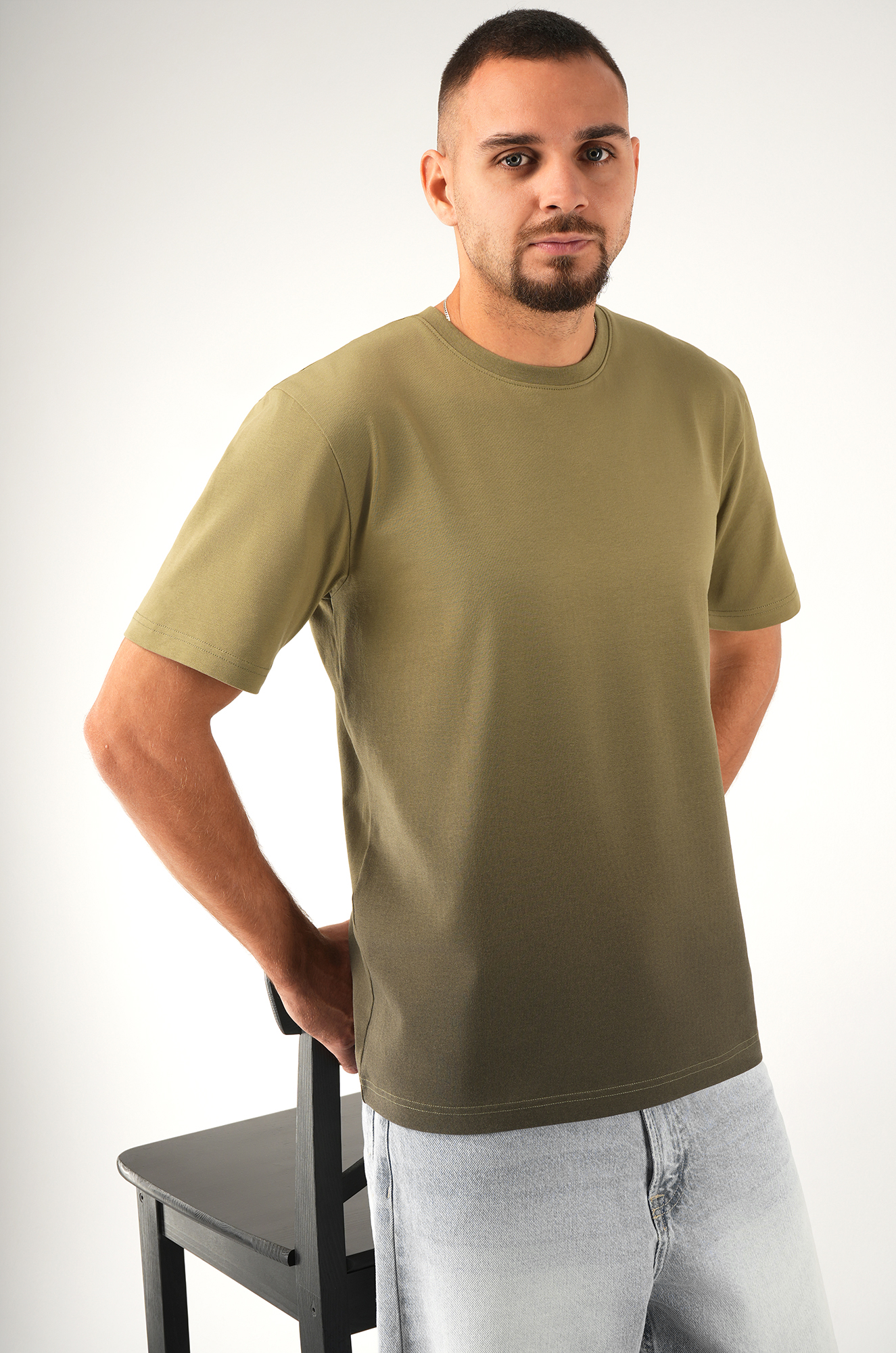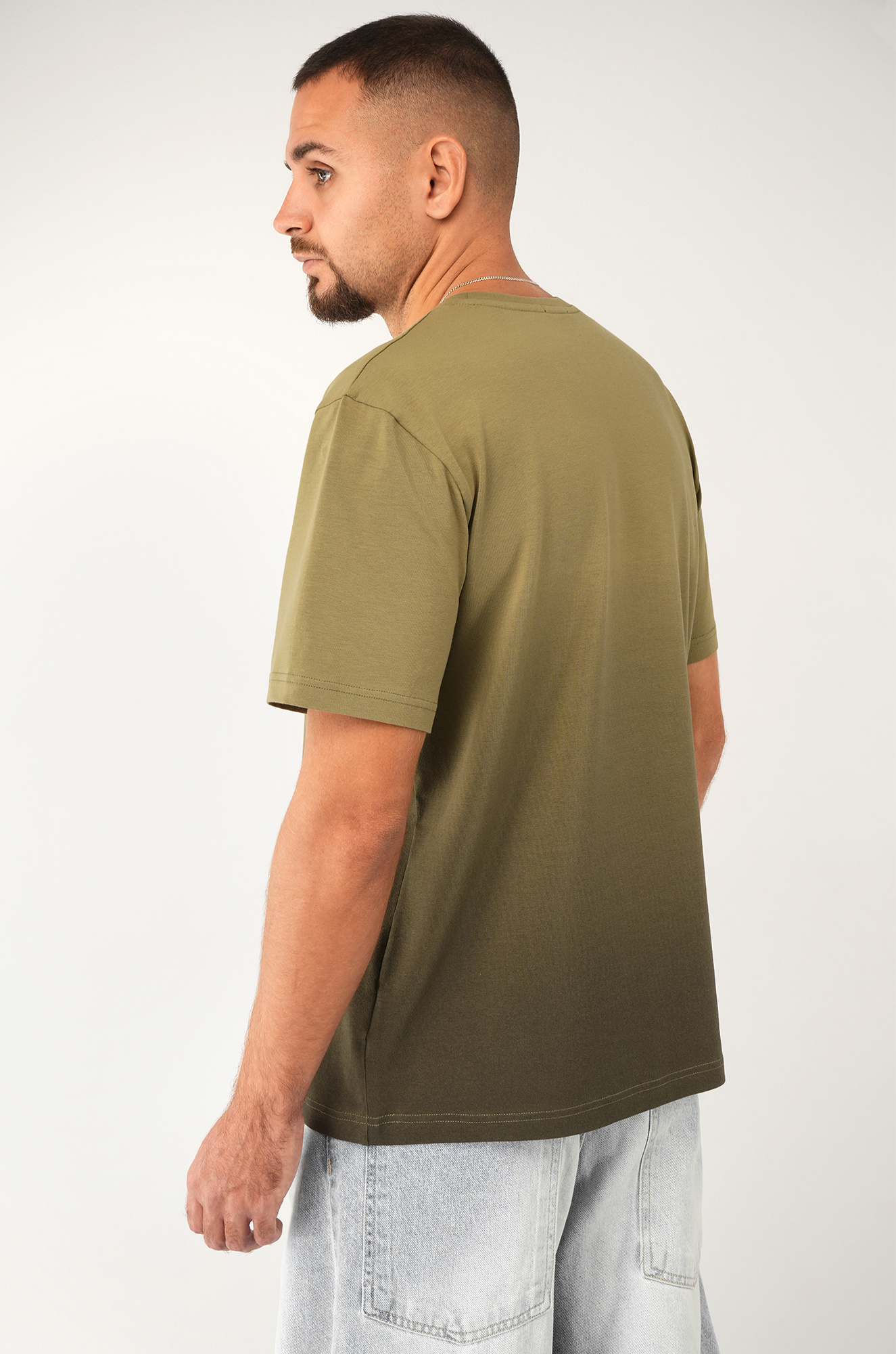 Мужская футболка с градиентным принтом выполнена из хлопка с добавлением лайкры. Футболка с эффектом омбре идеальна для создания стильных и расслабленных образов. Плавный переход от светлого хаки к тёмному добавляет динамики.