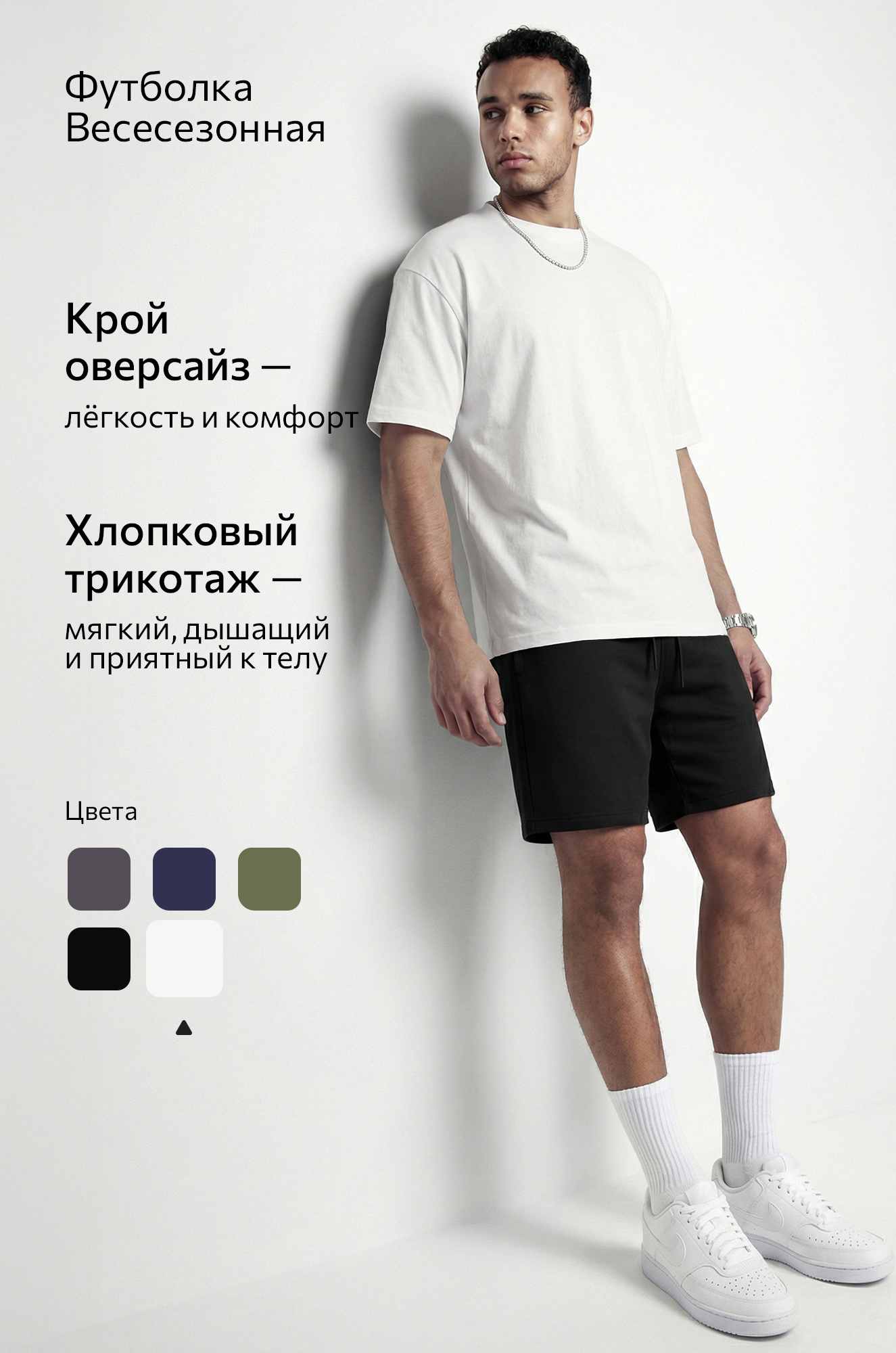 Мужская футболка оверсайз – комфорт и стиль каждый день. Плотная футболка станет основой многослойных образов. Лаконичная белая футболка — идеальный выбор для тех, кто ценит универсальность и классику. Плотный трикотаж из 100% хлопка (235 г/м²) и свободный силуэт делают эту футболку незаменимой для стильных образов.