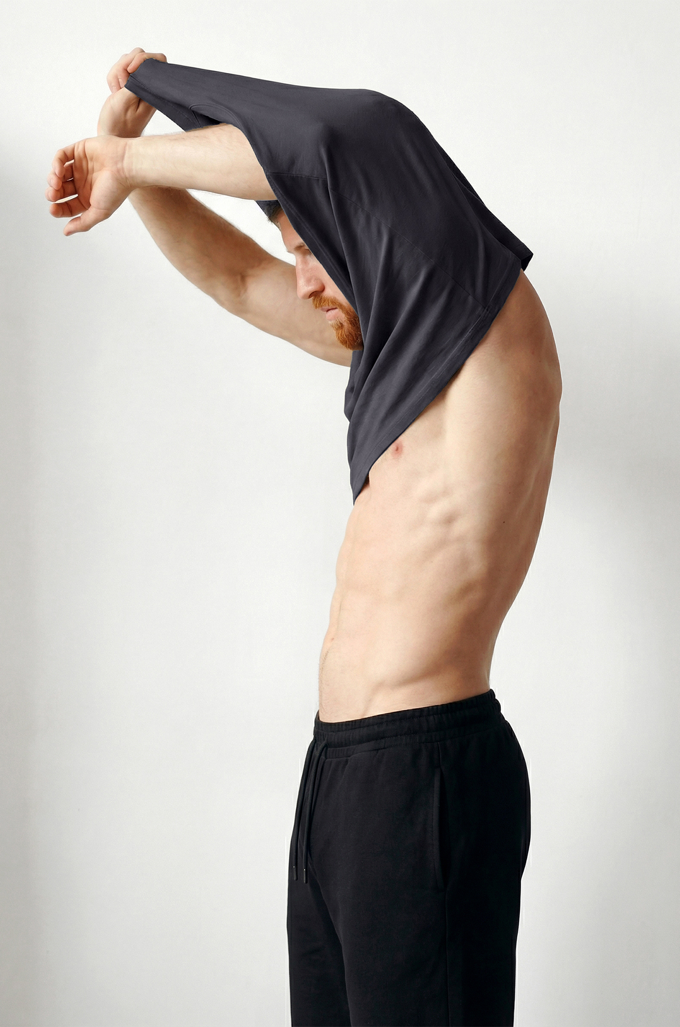 — темно-серая майка универсальна и практична, идеальна для зала;