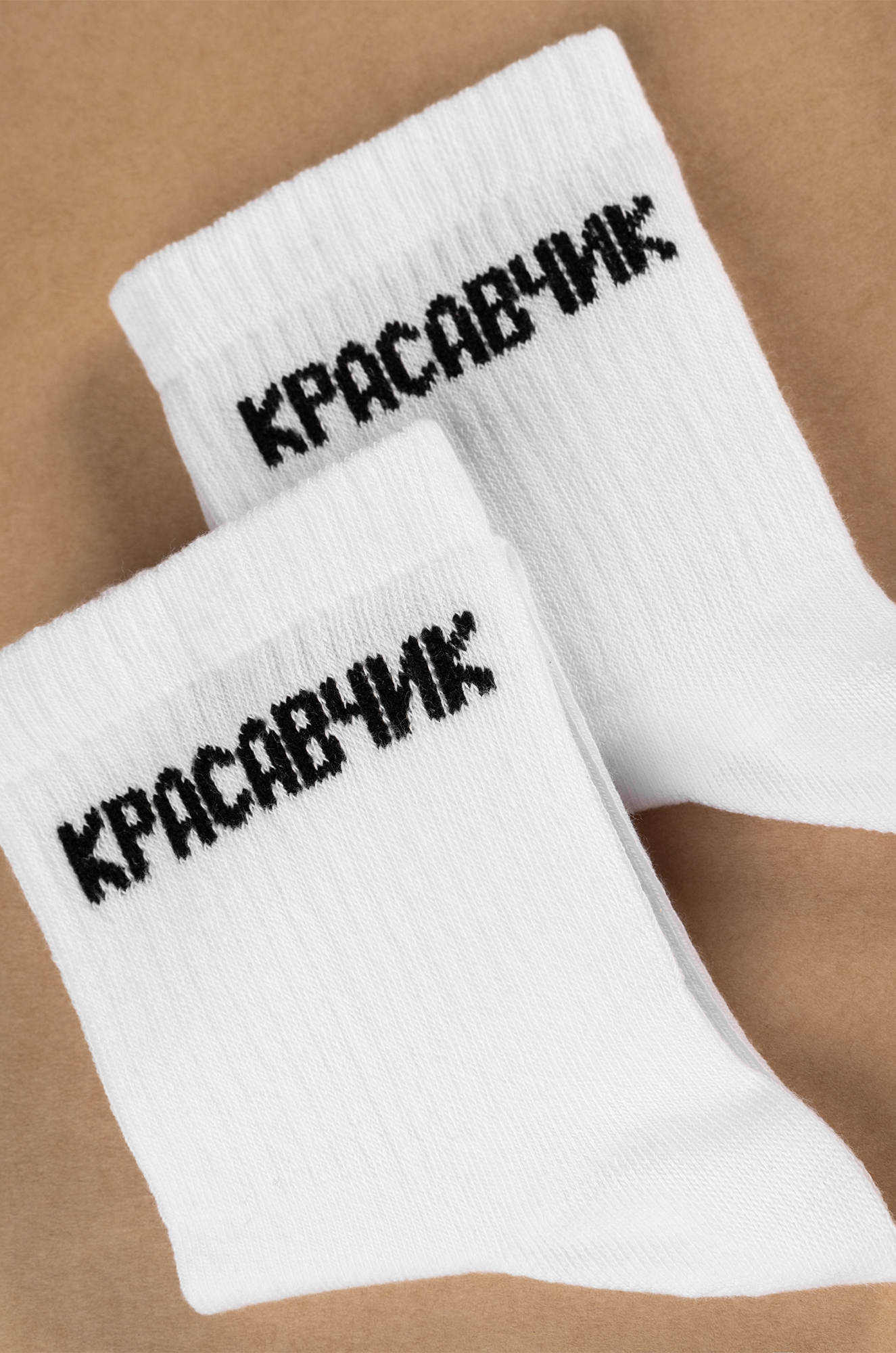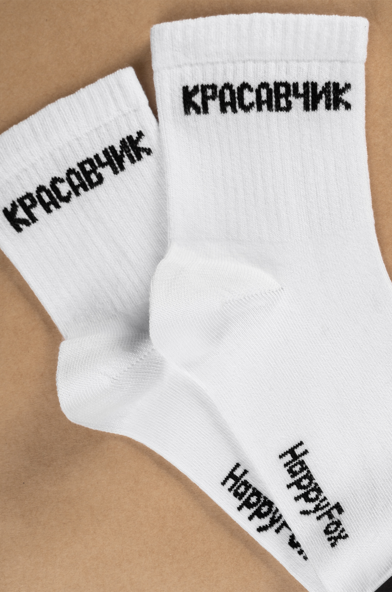 Добавь немного юмора и стиля в повседневный образ! Белые носки с прикольной надписью Красавчик для мужчин поднимут настроение тебе и окружающим.