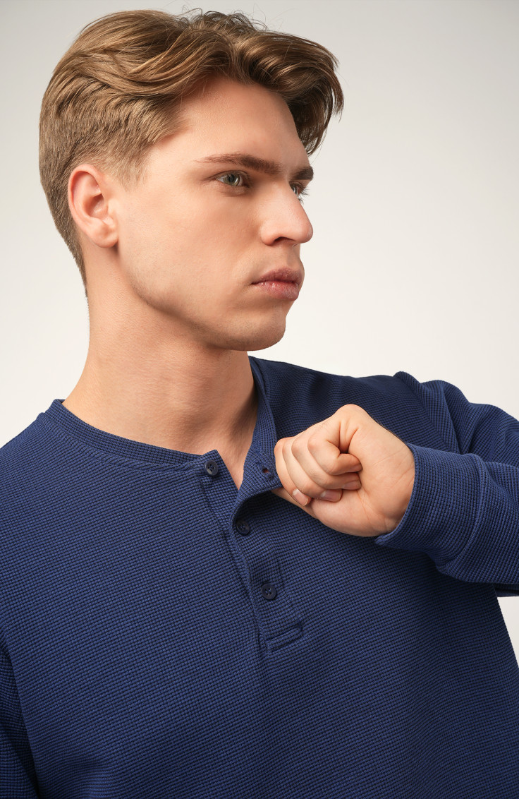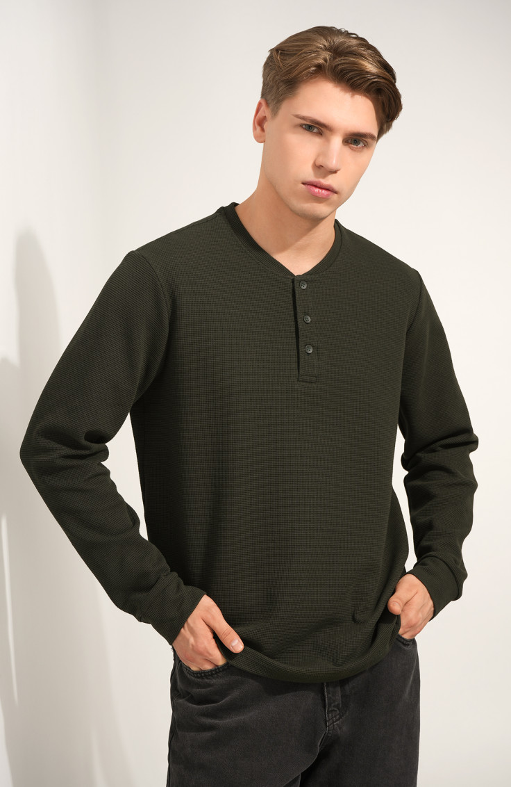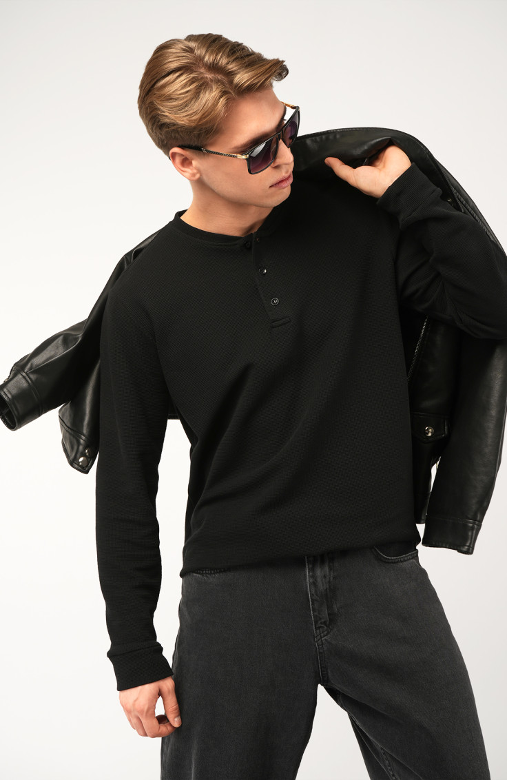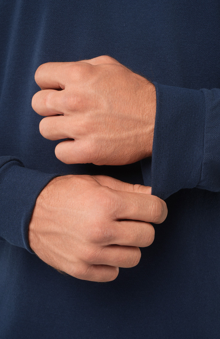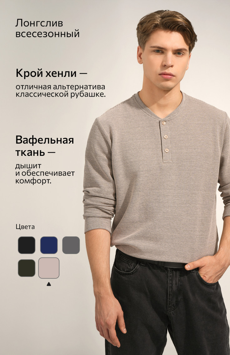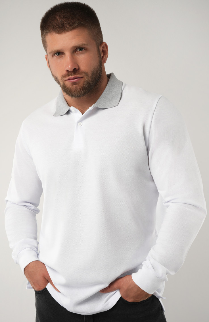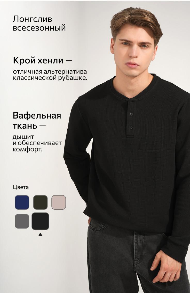 • Лонгсливы-поло — с отложным воротником и застежкой на пуговицах, подойдут тем, кто ценит баланс между классикой и повседневным стилем. Такая модель выглядит аккуратно и подходит как для офиса, так и для отдыха.