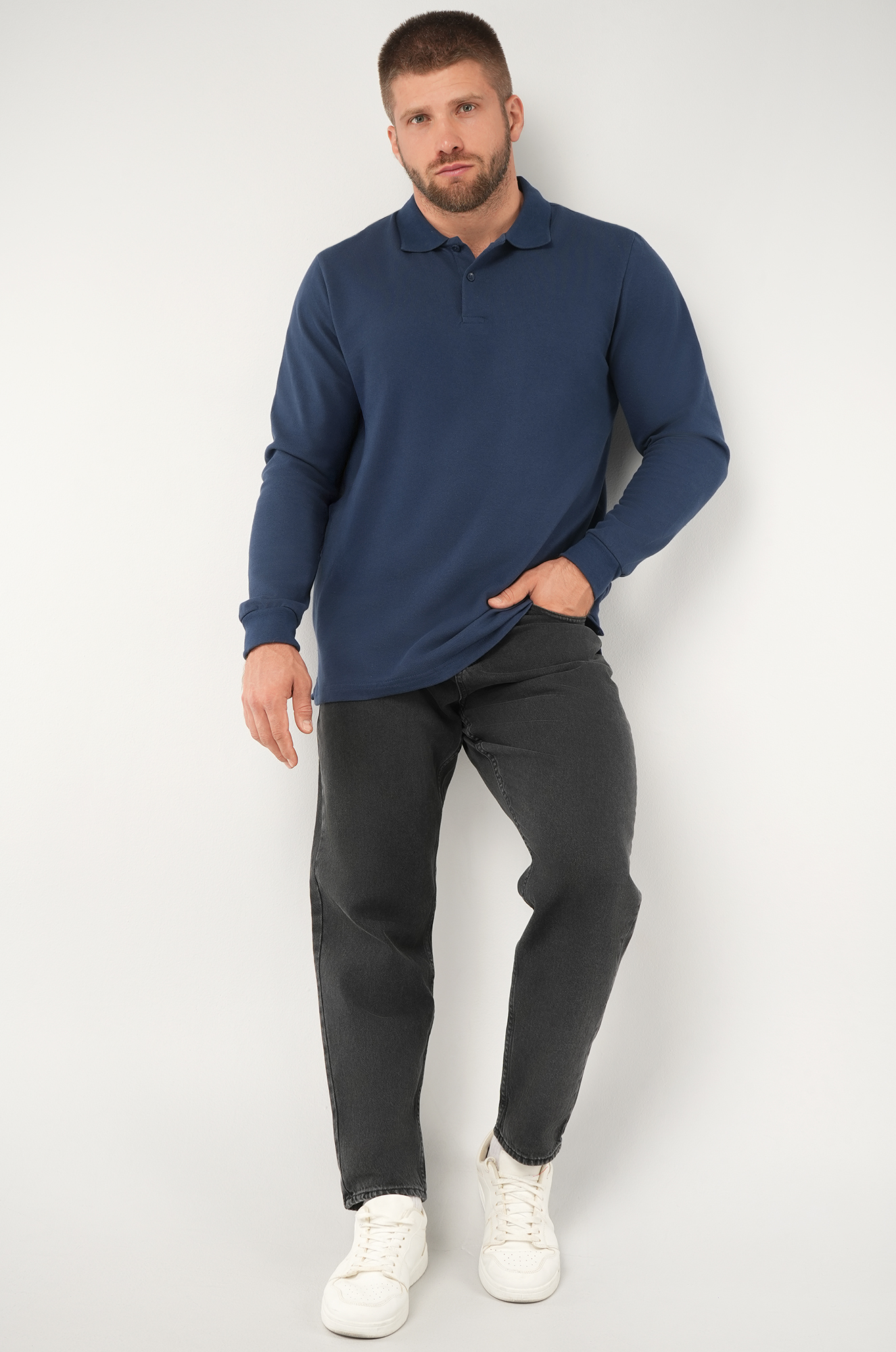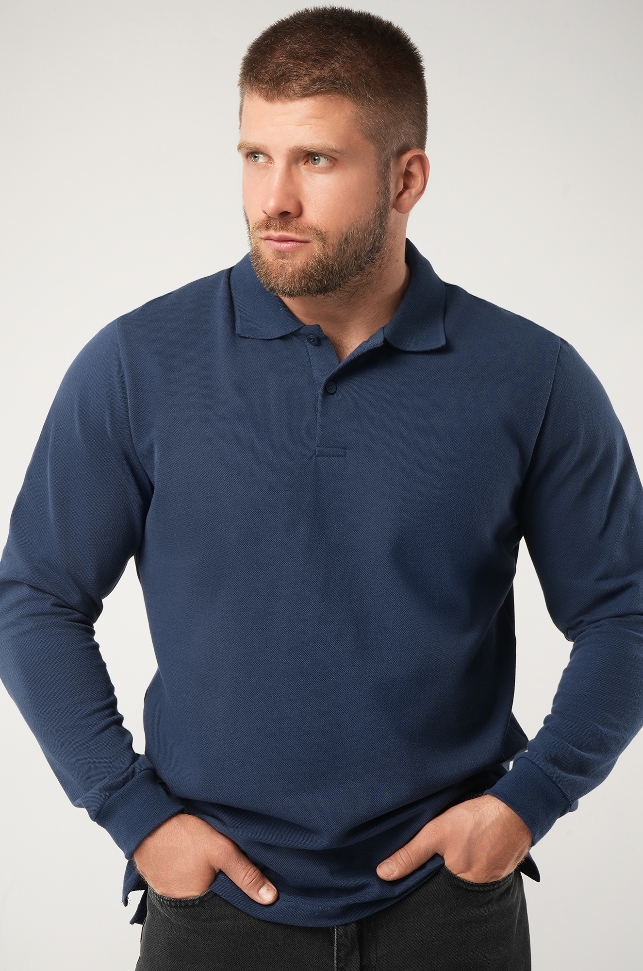 Синий лонгслив поло — лаконичный фаворит мужского гардероба, который всегда к месту. Идеальный баланс между комфортом и стильным минимализмом для повседневных образов.