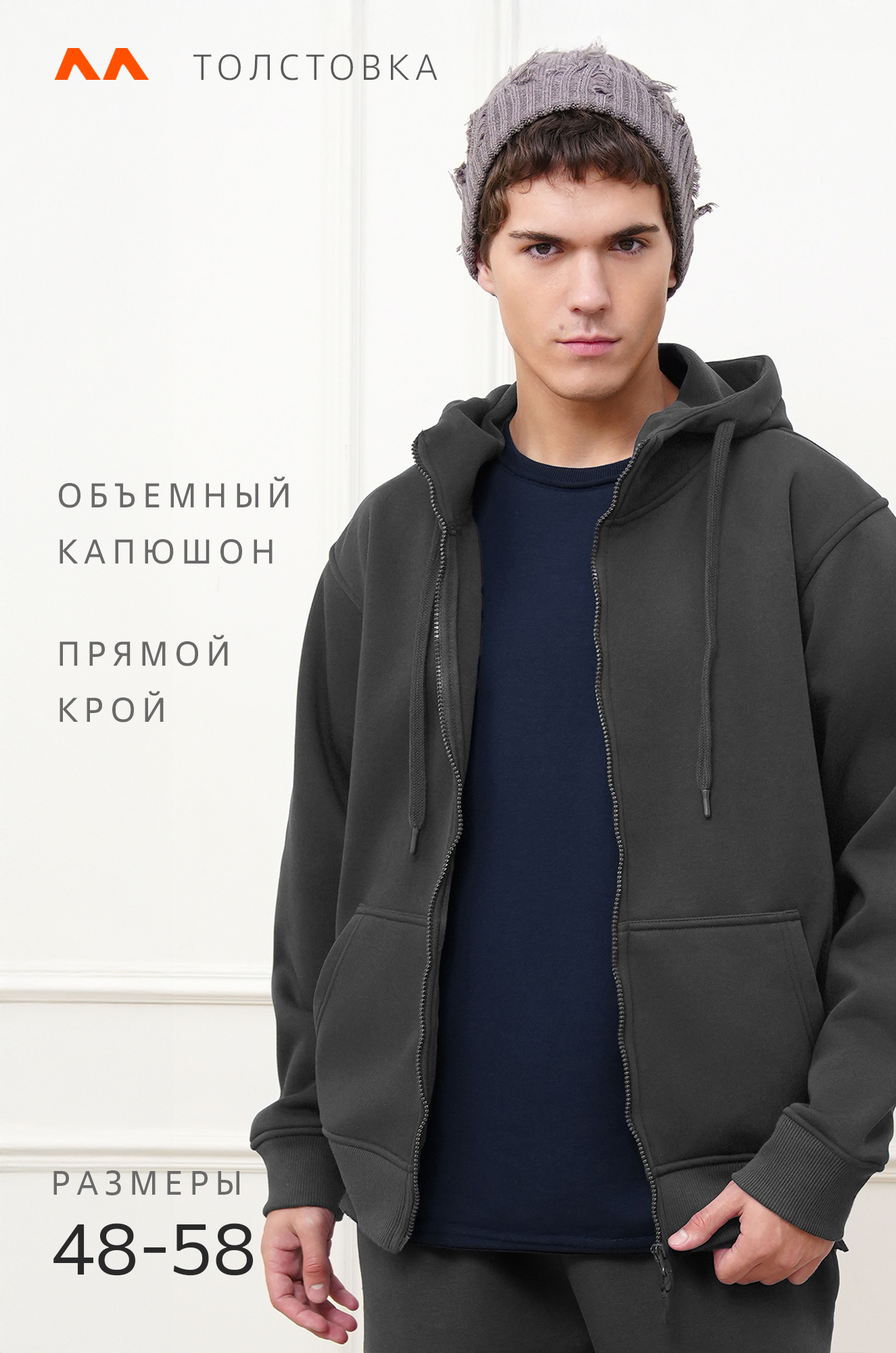 — толстовка на молнии с капюшоном надежно согревает и дарит комфорт в холодное время года;