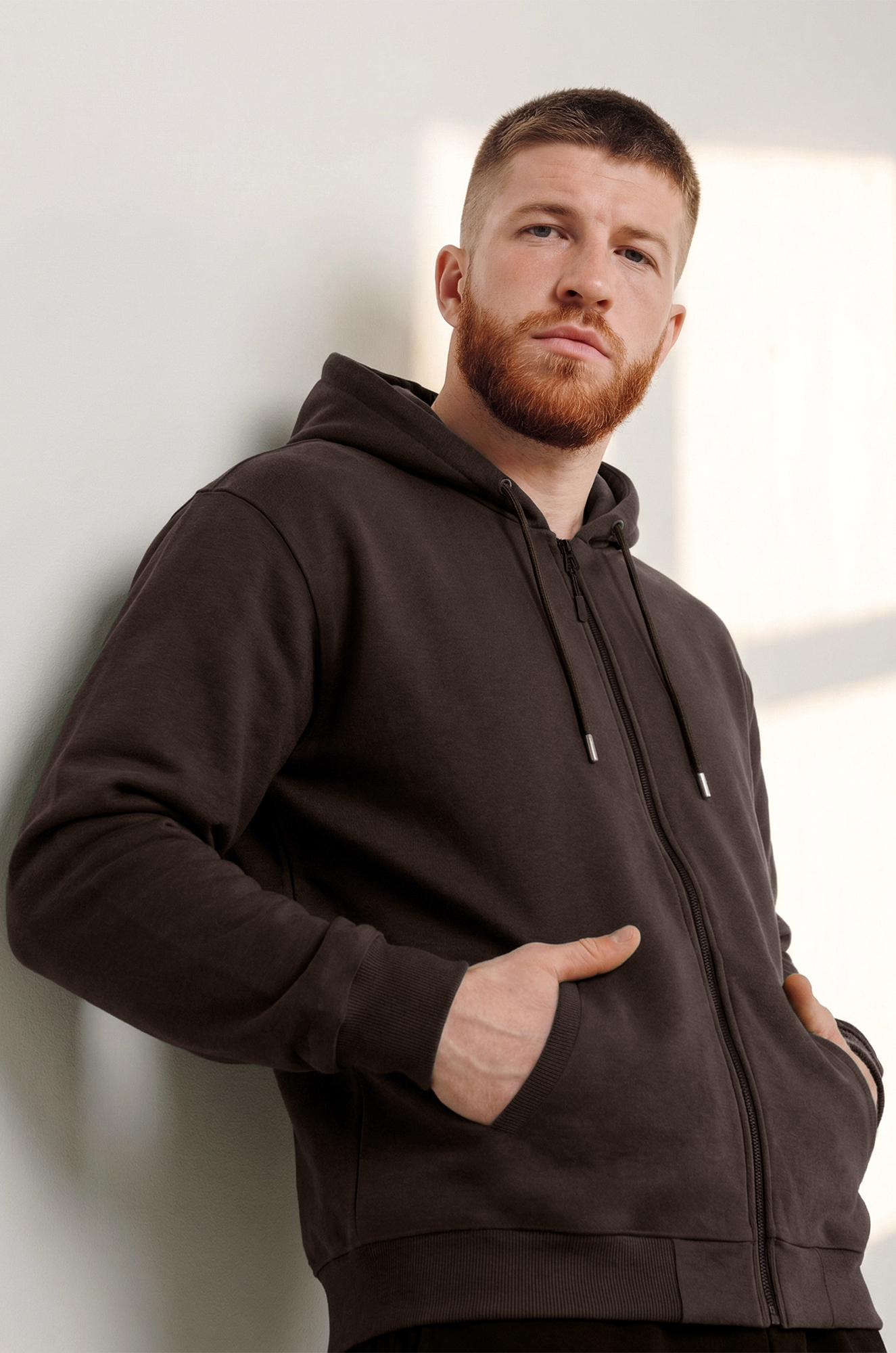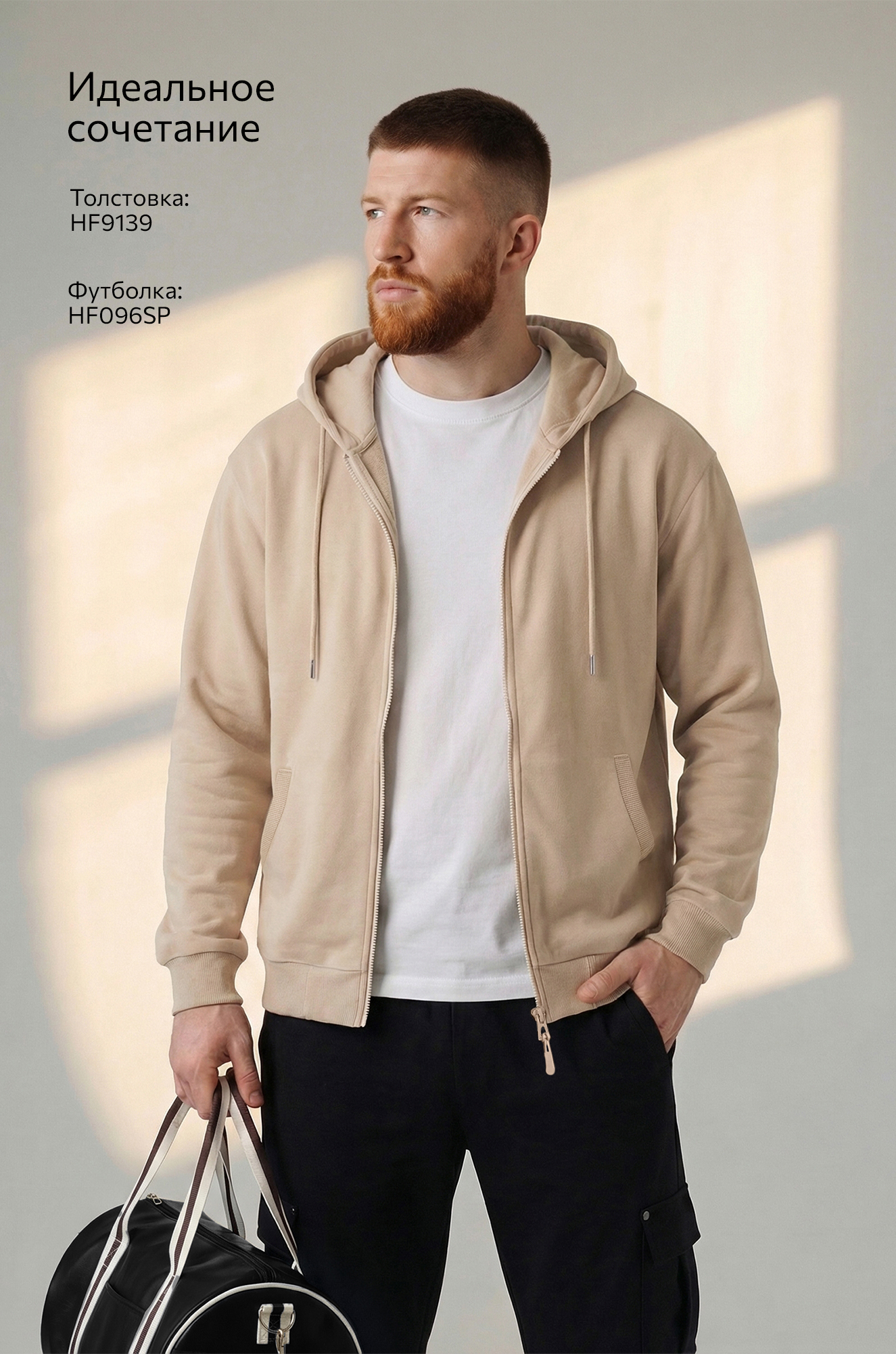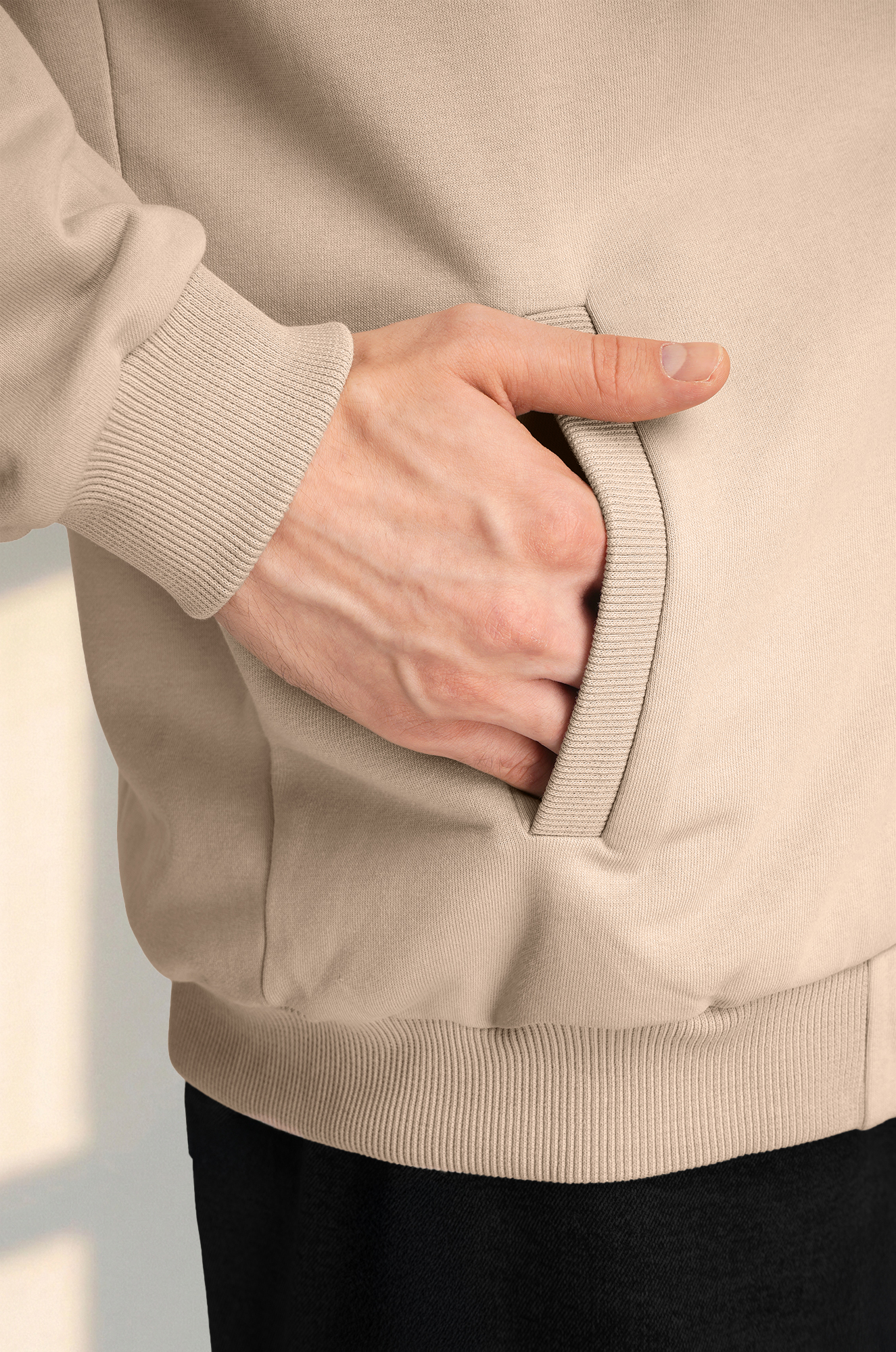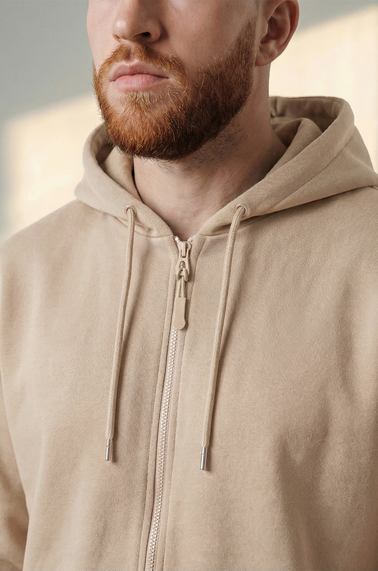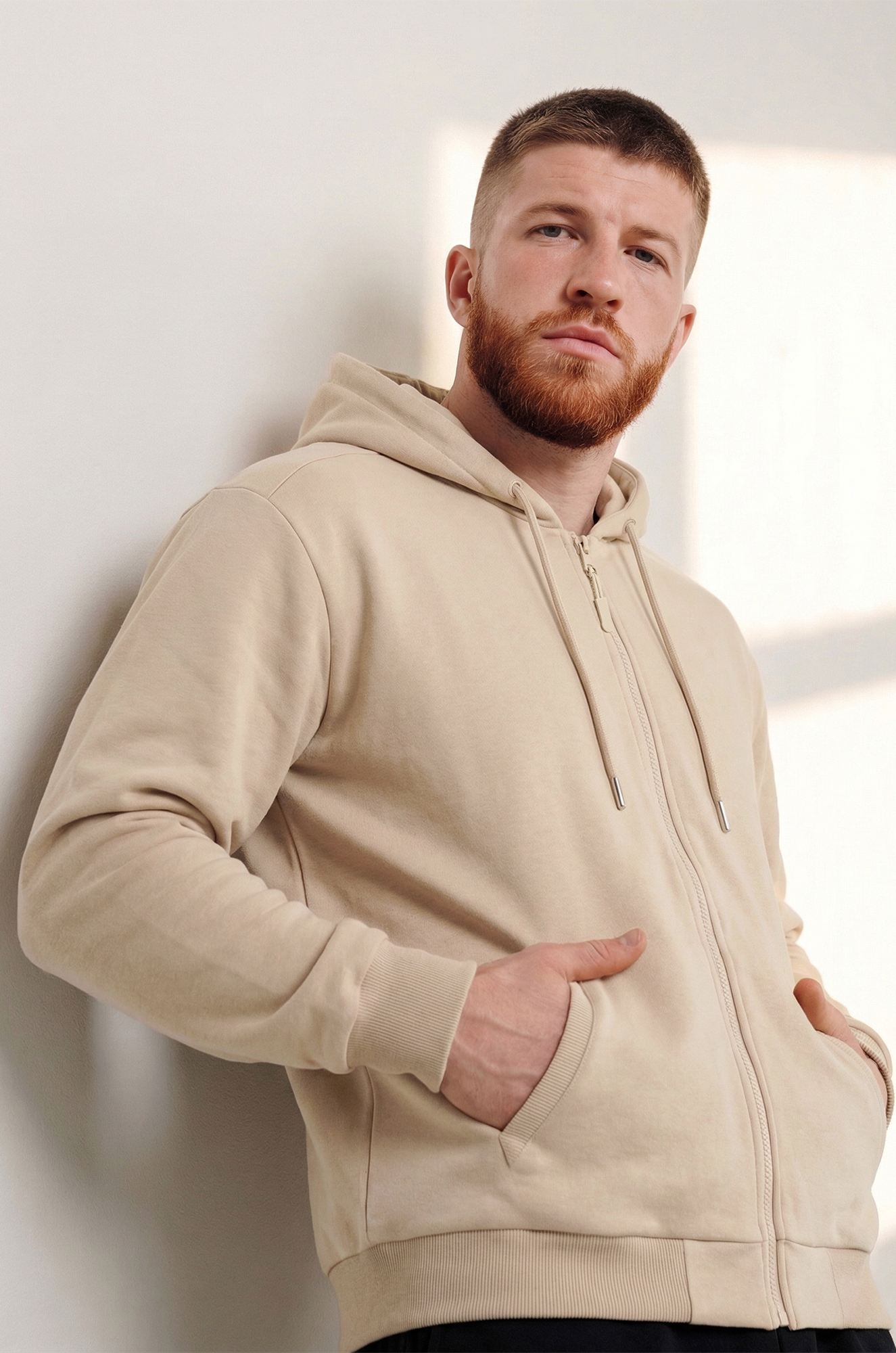 Расслабленный уличный стиль или спортивный образ? Решать вам! Спортивная толстовка с капюшоном идеальна для активного отдыха на природе. Мужская зипка представлена в базовом бежевом цвете.