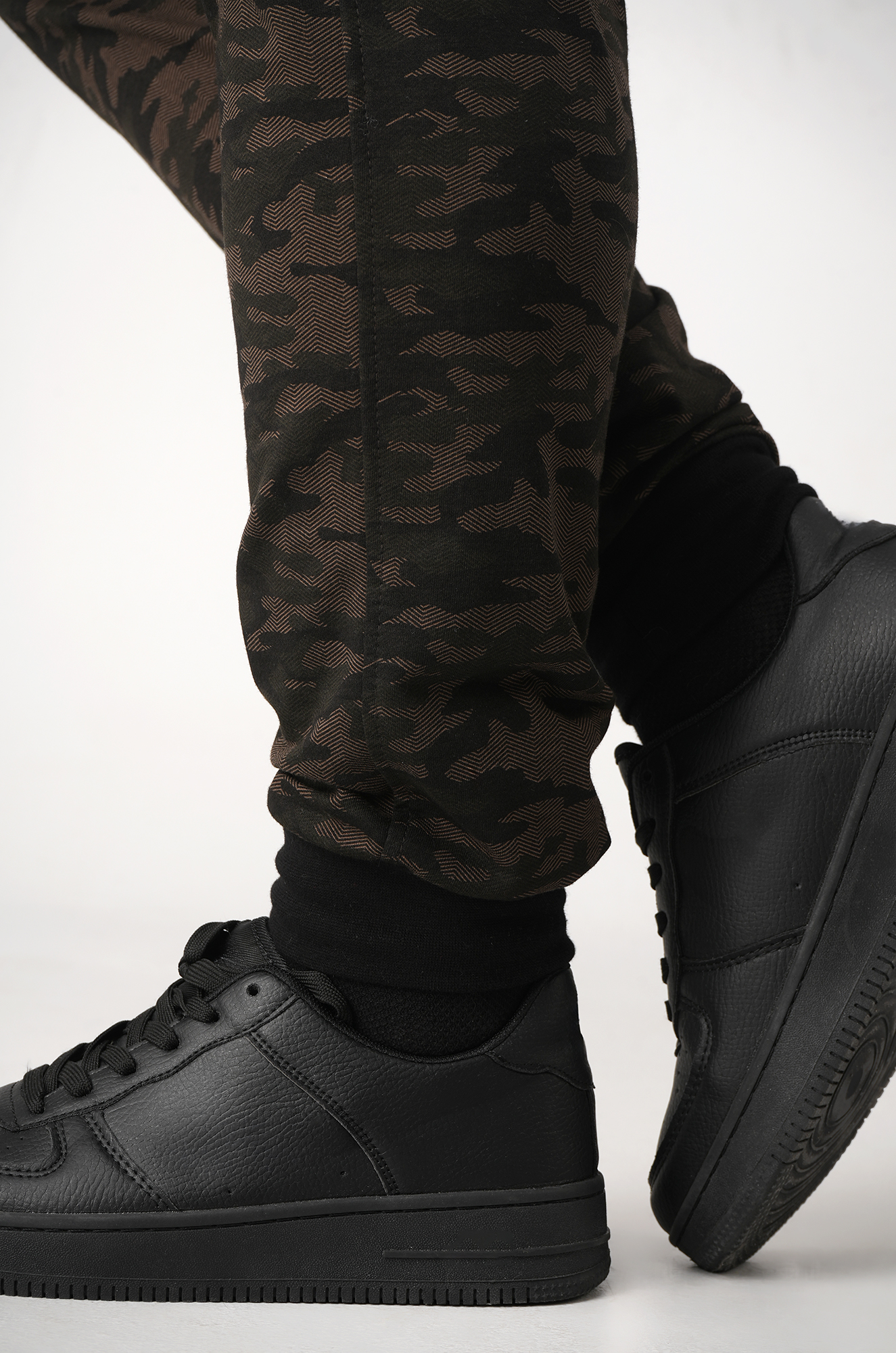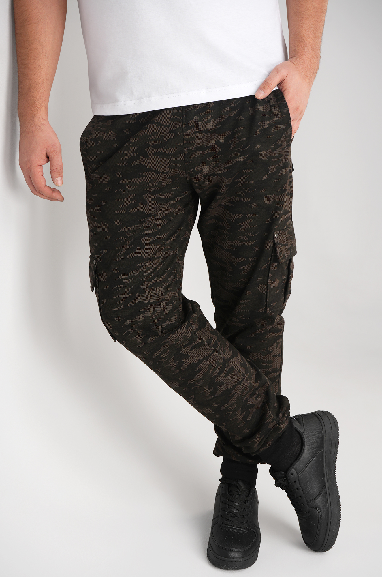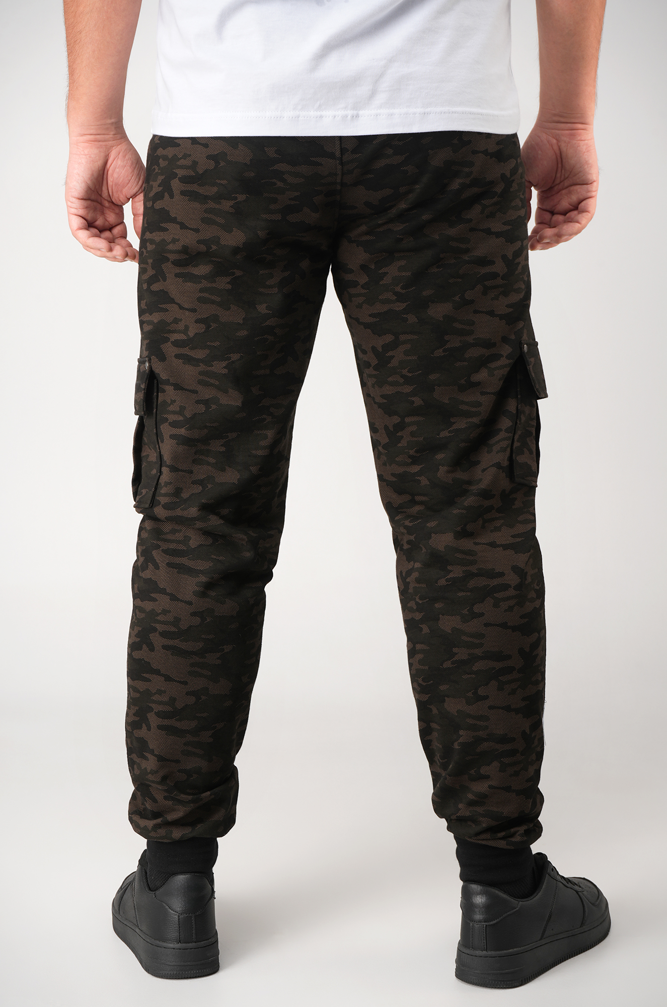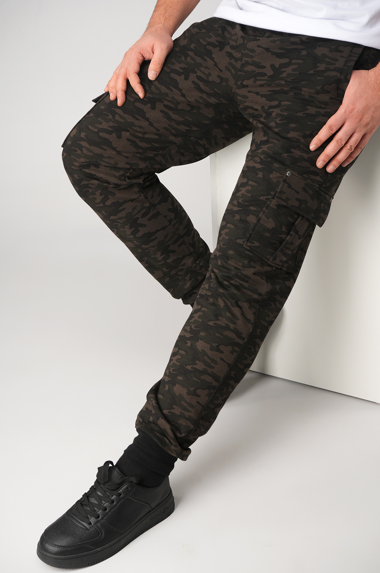 Камуфляжные брюки джоггеры — отличное решение для любителей охоты, рыбалки и туризма. Благодаря добавлению полиэстера мужские брюки из футера двухнитки мягкие и прочные, что делает их идеальным выбором для дачи и активного отдыха на природе. Трикотажные спортивные штаны выполнены в защитном цвете хаки с рисунком в стиле милитари.