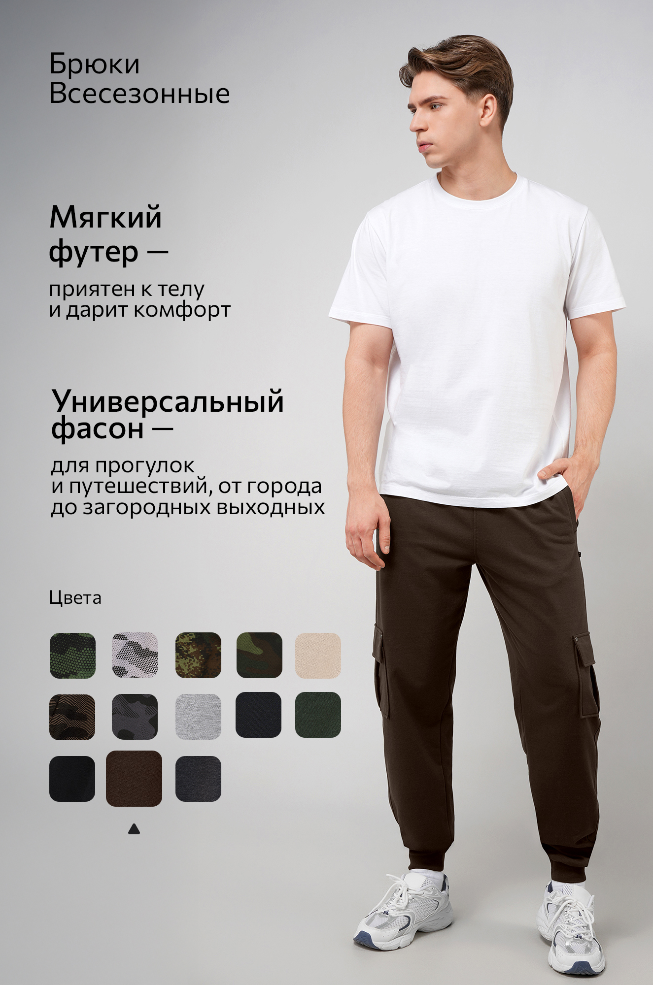 Спортивные брюки для мужчин подойдут для тренировок в зале и активного отдыха на природе. Удобные трикотажные спортивки — универсальный вариант на каждый день.