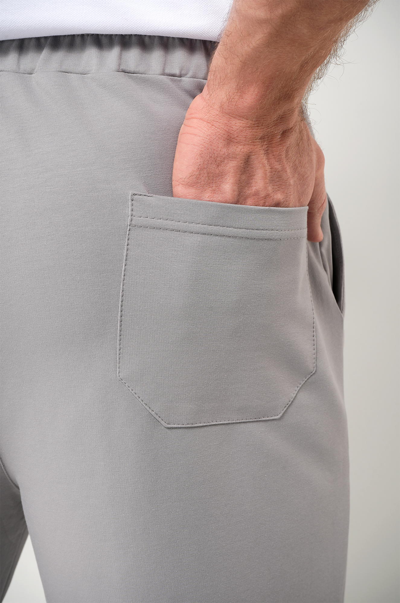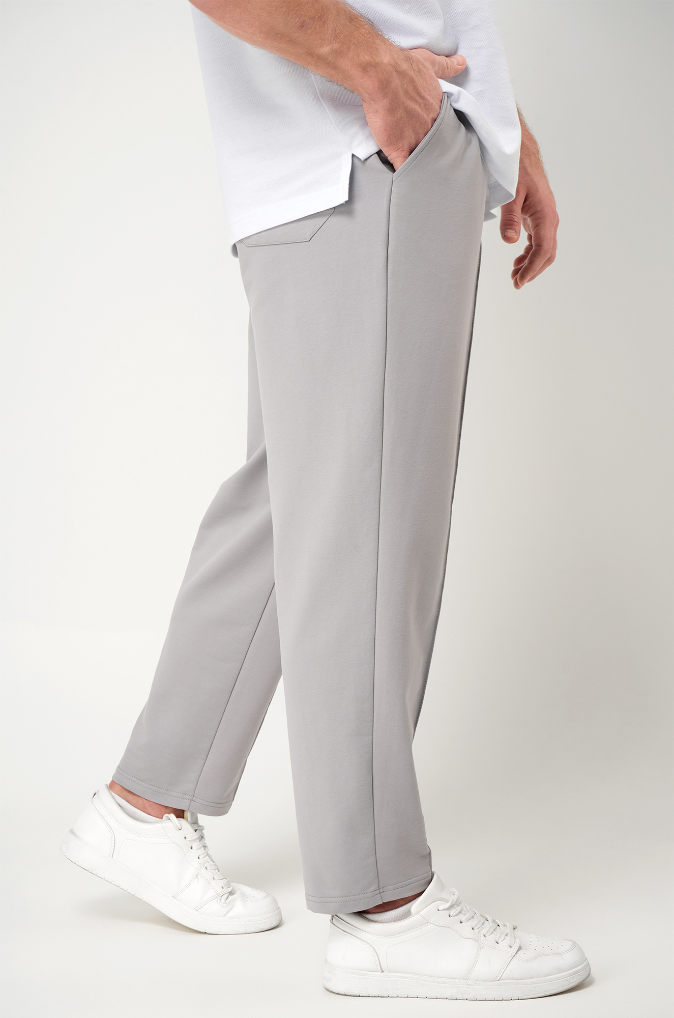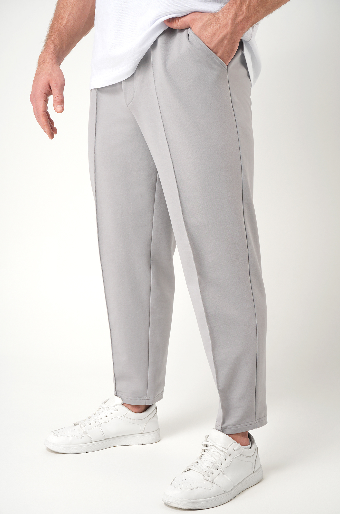 Серые мужские брюки — гармоничное сочетание комфорта и лаконичности. Прямые штаны формируют собранный, уверенный силуэт и легко вписываются в кэжуал-стиль.