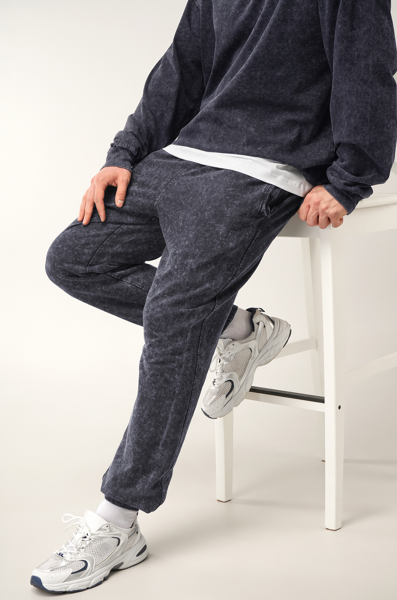 Широкие мужские брюки созданы для тех, кто выбирает свободу движений и комфорт каждый день. Мягкий трикотаж (плотность 240 г/м2), свободный крой и лёгкий винтажный эффект превращают темно-синие спортивные штаны в стильные джоггеры.