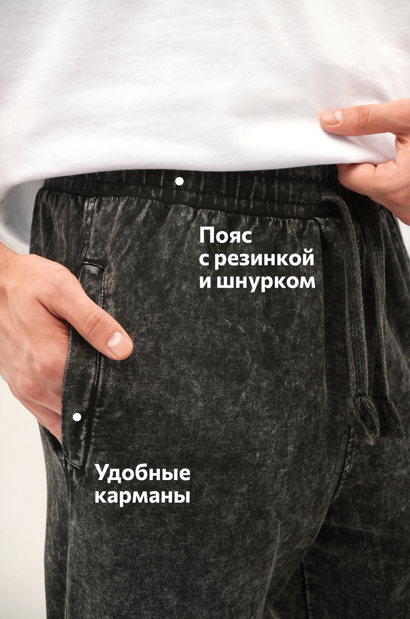 Широкие мужские брюки созданы для тех, кто выбирает свободу движений и комфорт каждый день. Мягкий трикотаж (плотность 240 г/м2), свободный крой и лёгкий винтажный эффект превращают черные спортивные штаны в стильные джоггеры.