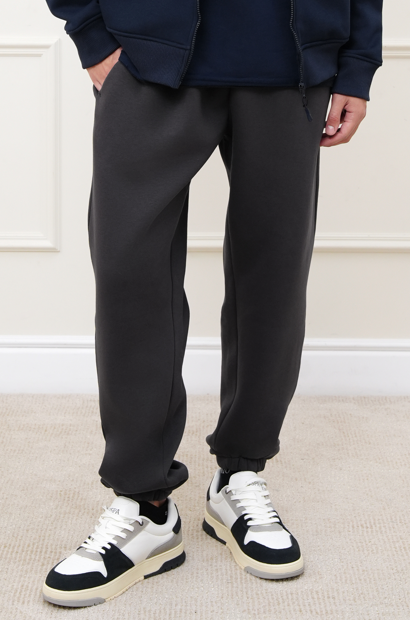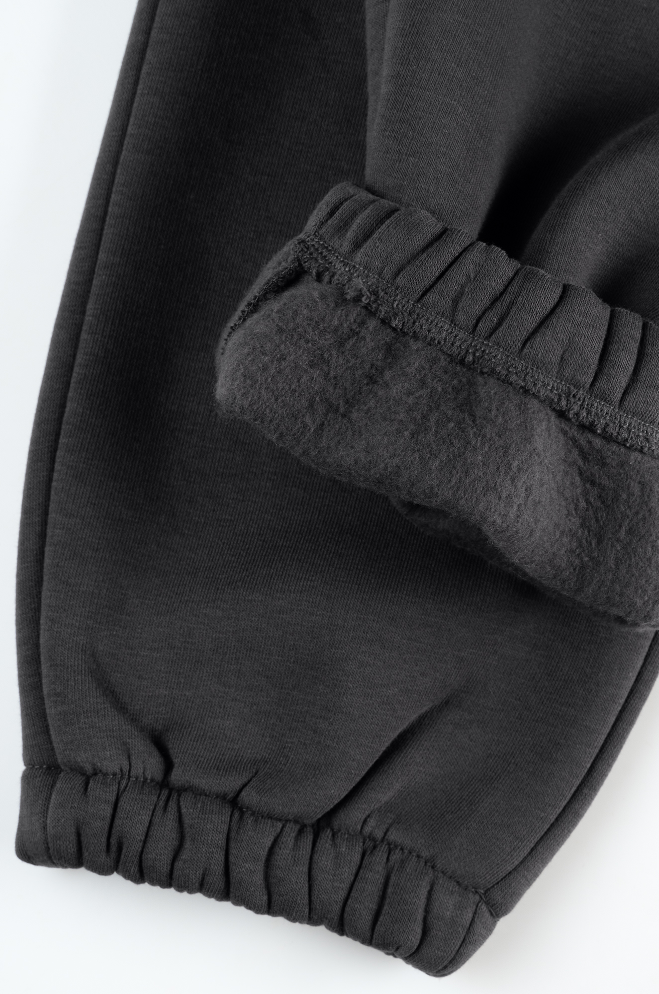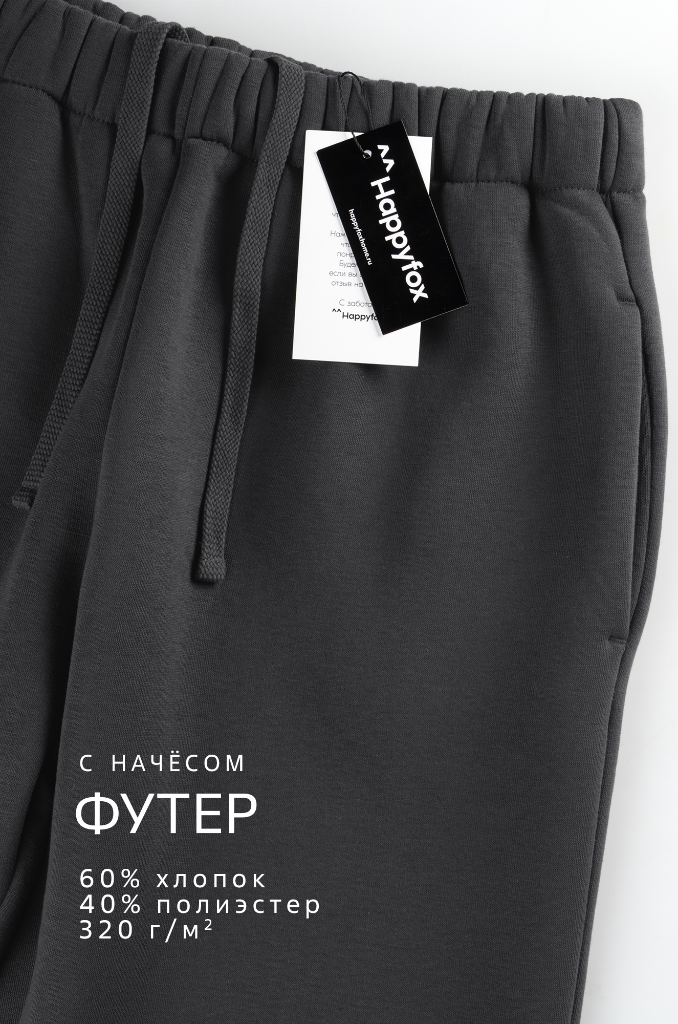 Теплые мужские брюки джоггеры выполнены из трикотажа футер с начёсом. Однотонные штаны в темно-сером цвете подойдут для спорта на улице, активного отдыха и повседневных прогулок.