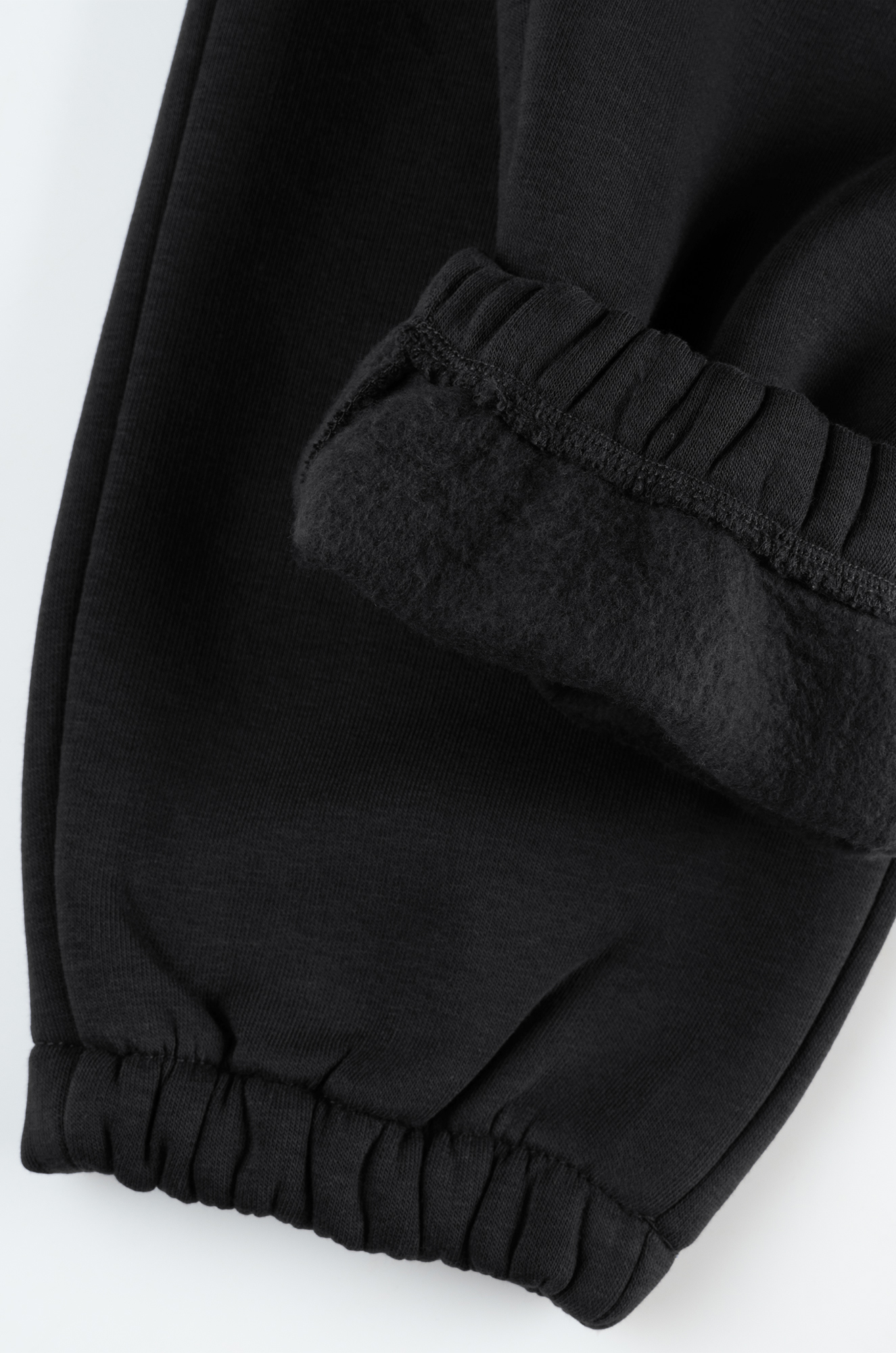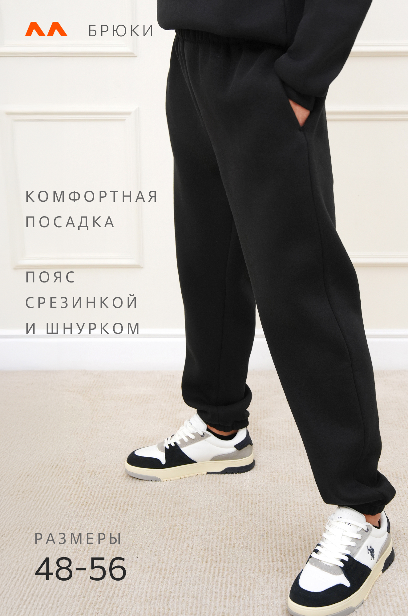 Теплые мужские брюки джоггеры выполнены из трикотажа футер с начёсом. Однотонные черные штаны подойдут для спорта на улице, активного отдыха и повседневных прогулок.