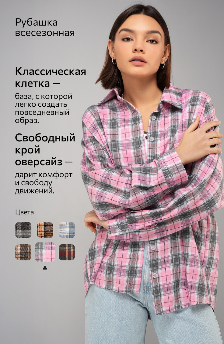 • Оверсайз-рубашки — свободный силуэт дарит ощущение комфорта и отлично смотрится в расслабленных комплектах.