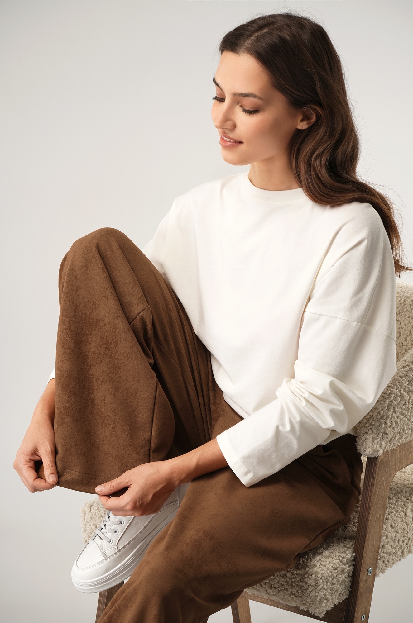 Широкие однотонные брюки свободного кроя идеально подойдут для осенних прогулок, активного весеннего отдыха или расслабленных домашних вечеров. Базовые трикотажные штаны для женщин станут универсальным выбором на каждый день, когда хочется комфорта и легкости в движении.