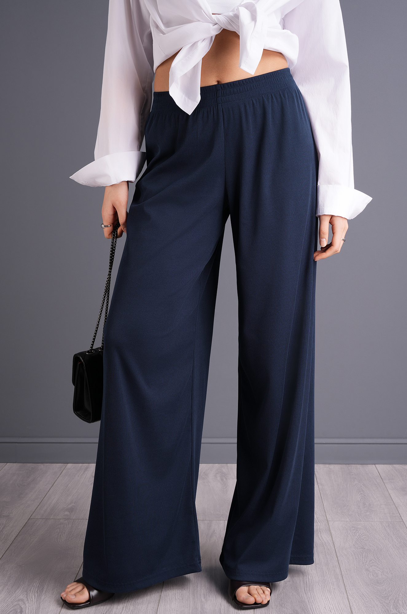 Женские летние брюки в рубчик — идеальный выбор для лёгких и расслабленных образов. Широкие штаны выполнены из материала лапша, что добавляет фактурности и делает их по-настоящему стильной находкой. Прямые линии и удобная посадка на резинке подчёркивают силуэт и дарят комфорт на весь день.