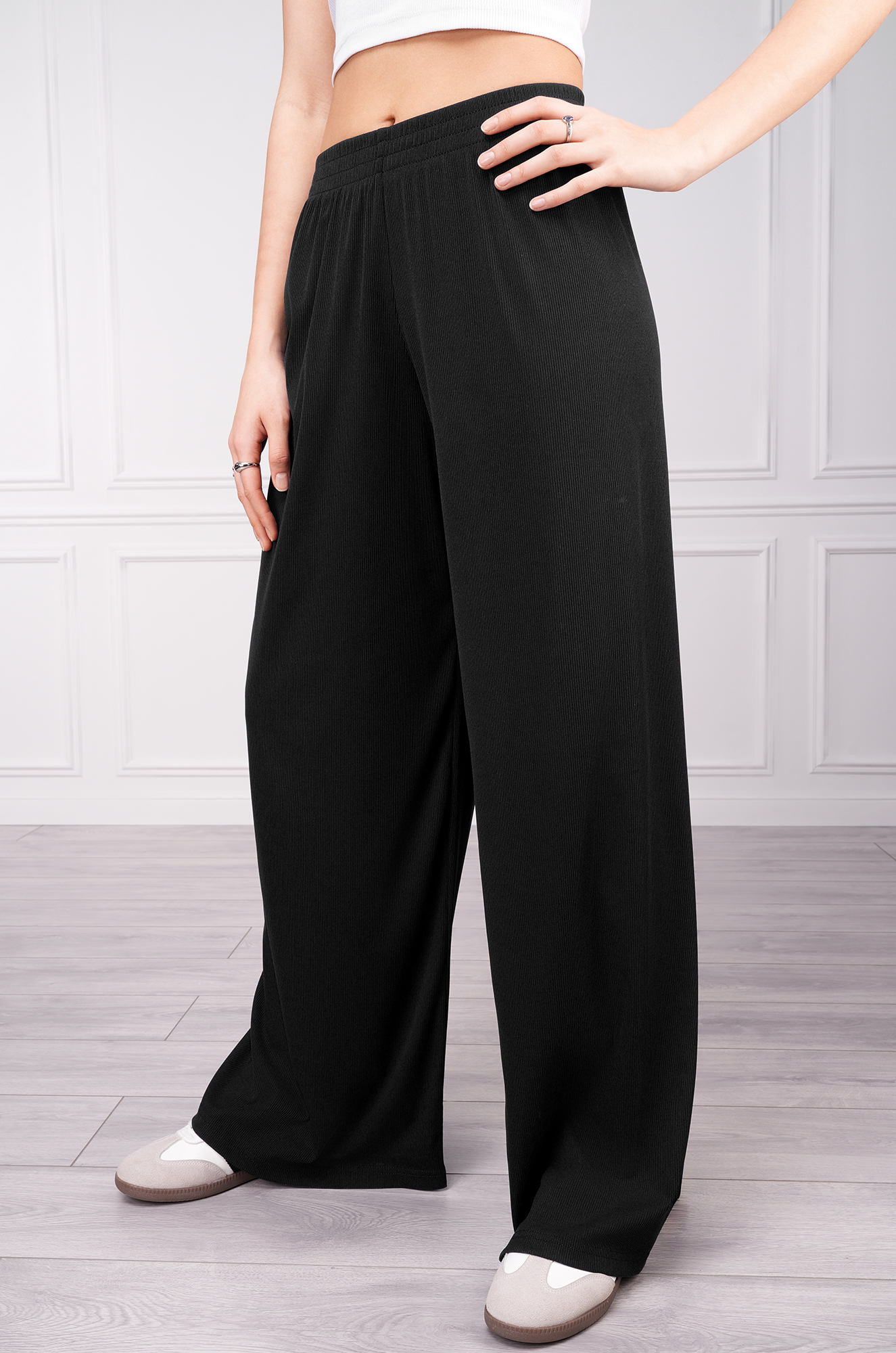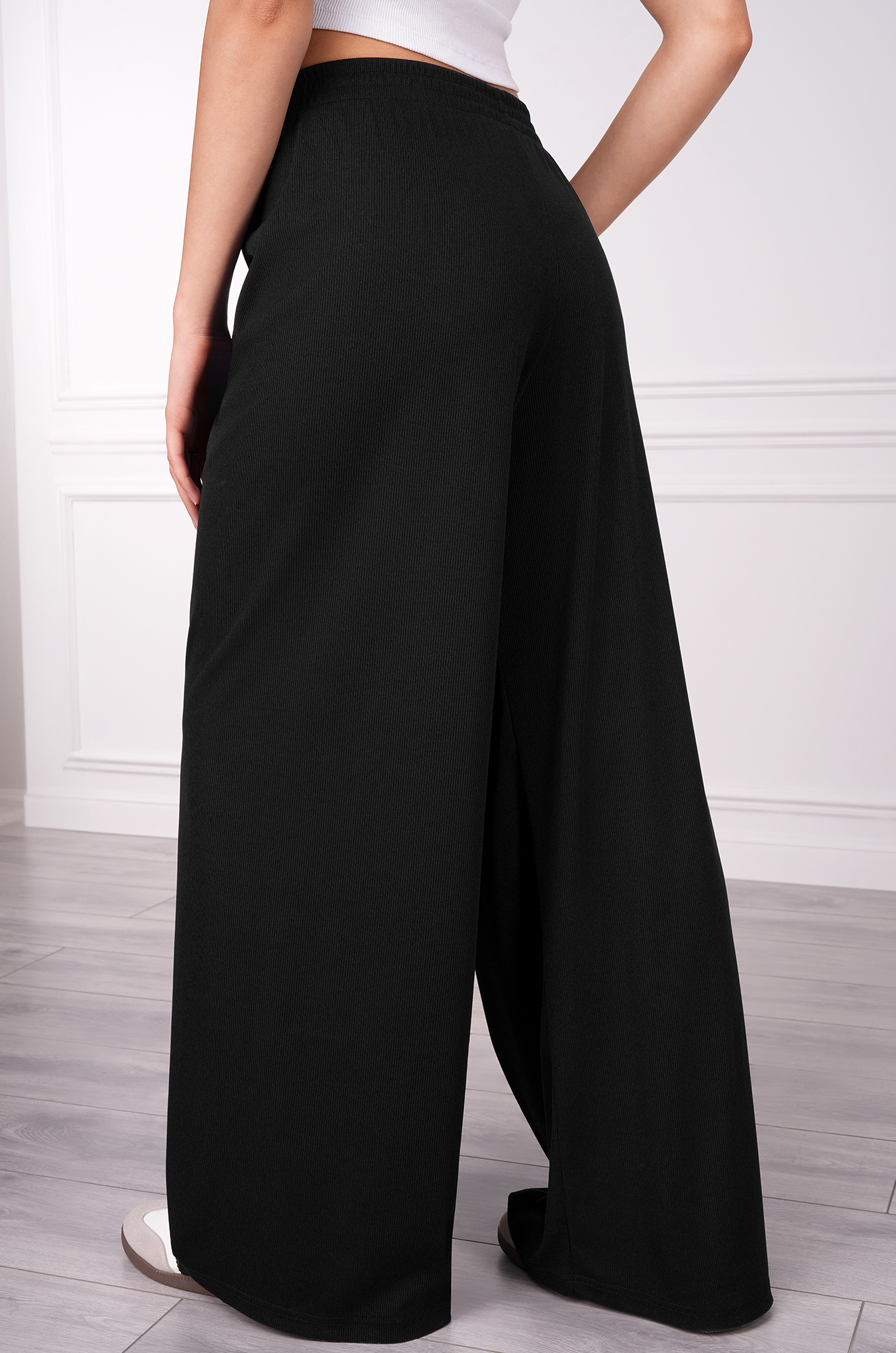 Женские летние брюки в рубчик — идеальный выбор для лёгких и расслабленных образов. Широкие штаны выполнены из материала лапша, что добавляет фактурности и делает их по-настоящему стильной находкой. Прямые линии и удобная посадка на резинке подчёркивают силуэт и дарят комфорт на весь день.