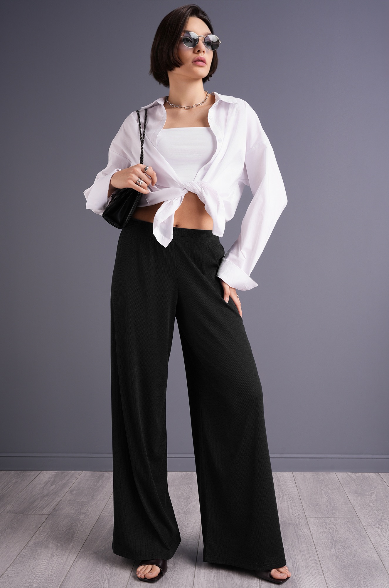 — однотонные свободные брюки — максимум комфорта в жаркую погоду;