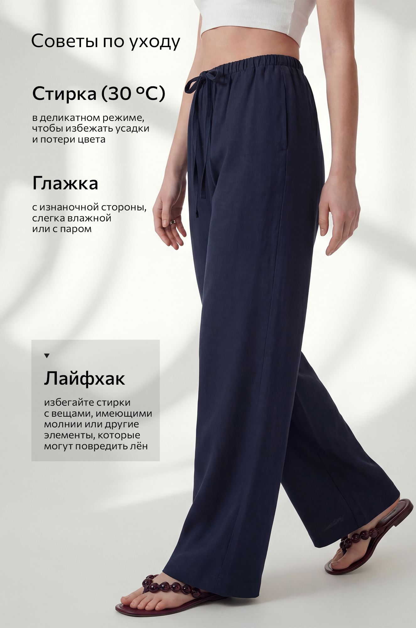 — после стирок штаны палаццо остаются свободными и фактурными.