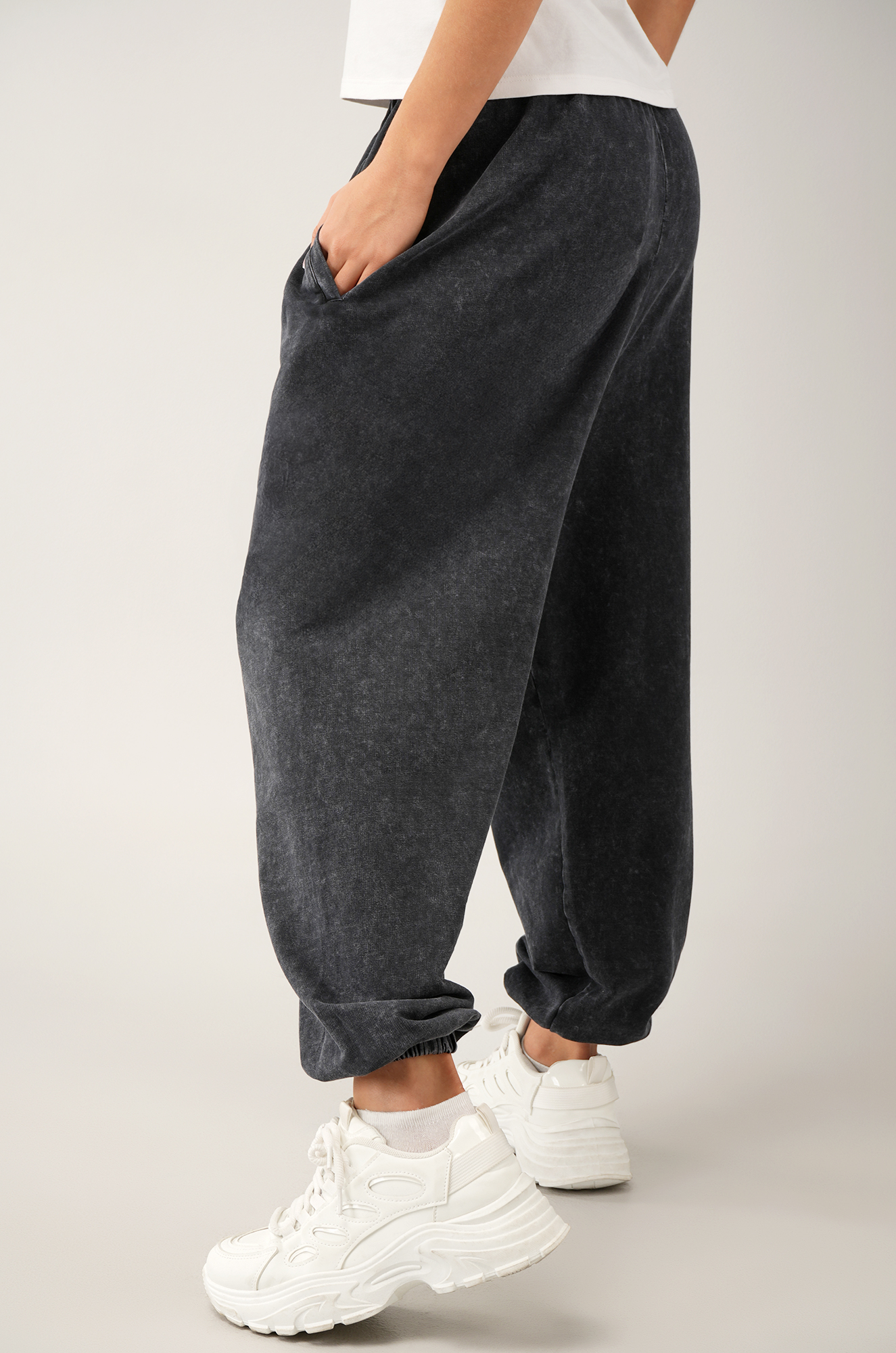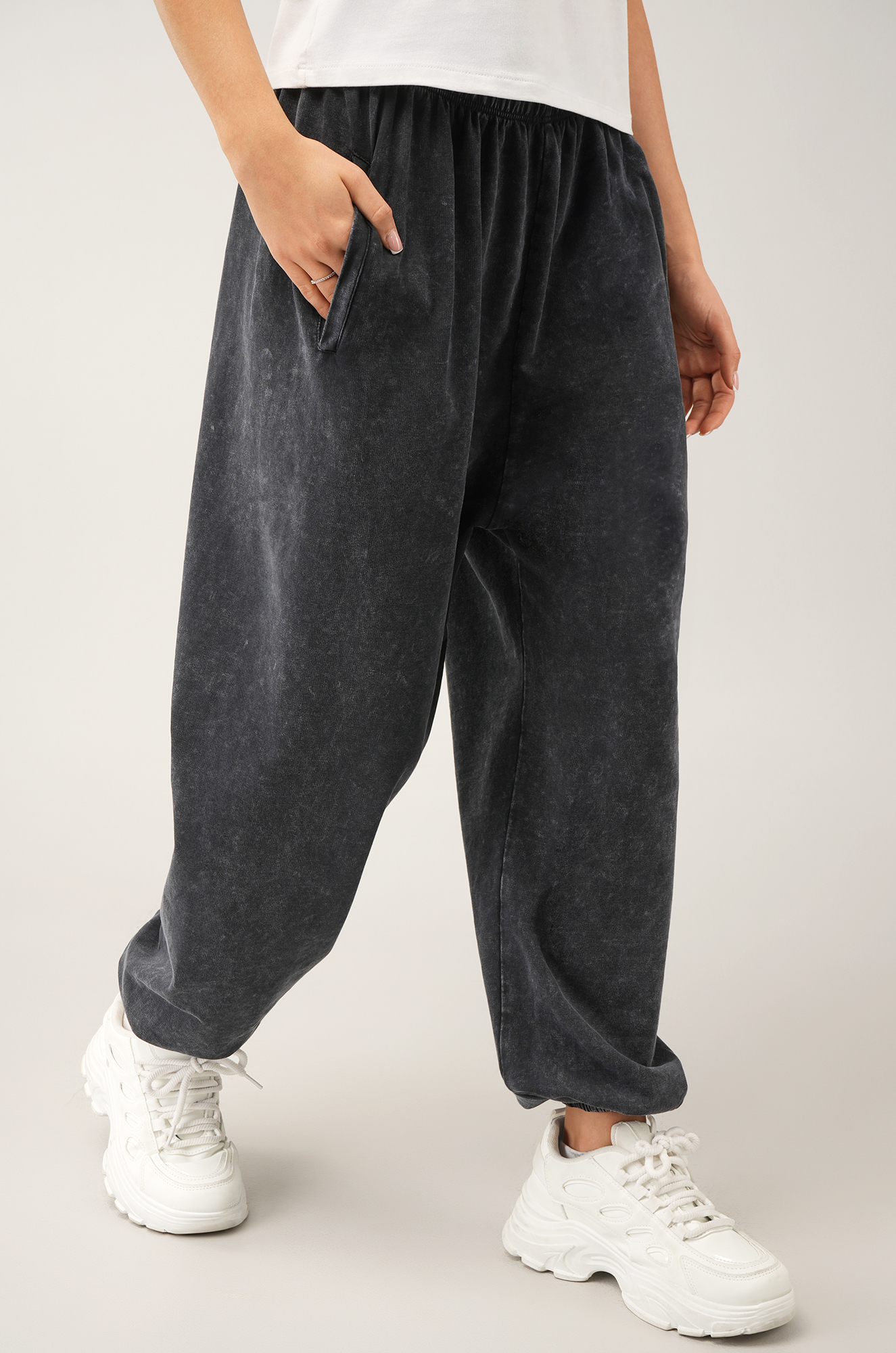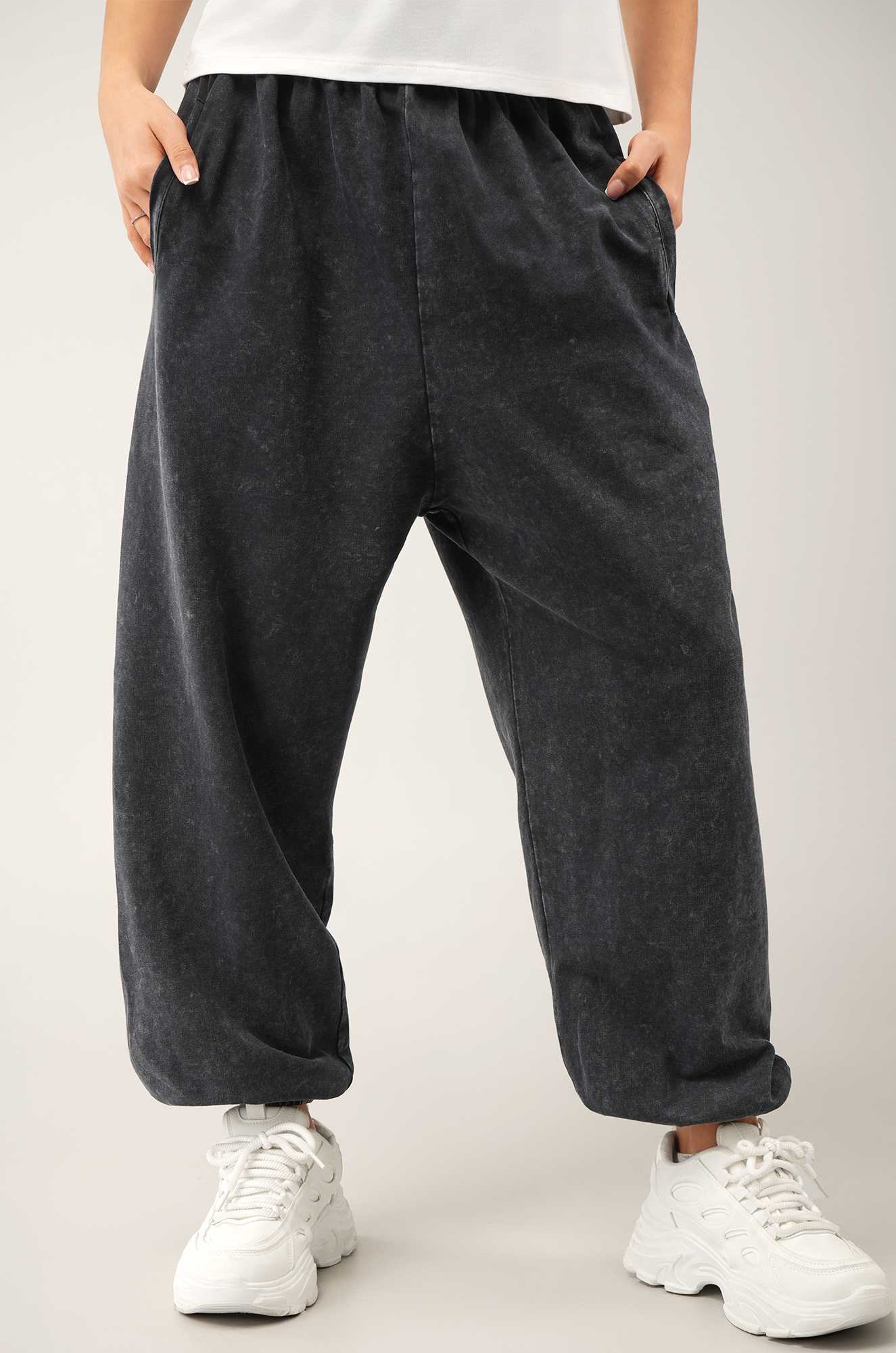 Широкие женские брюки созданы для тех, кто выбирает свободу движений и комфорт каждый день. Мягкий трикотаж, свободный крой и лёгкий винтажный эффект превращают темно-синие спортивные штаны в стильные джоггеры.