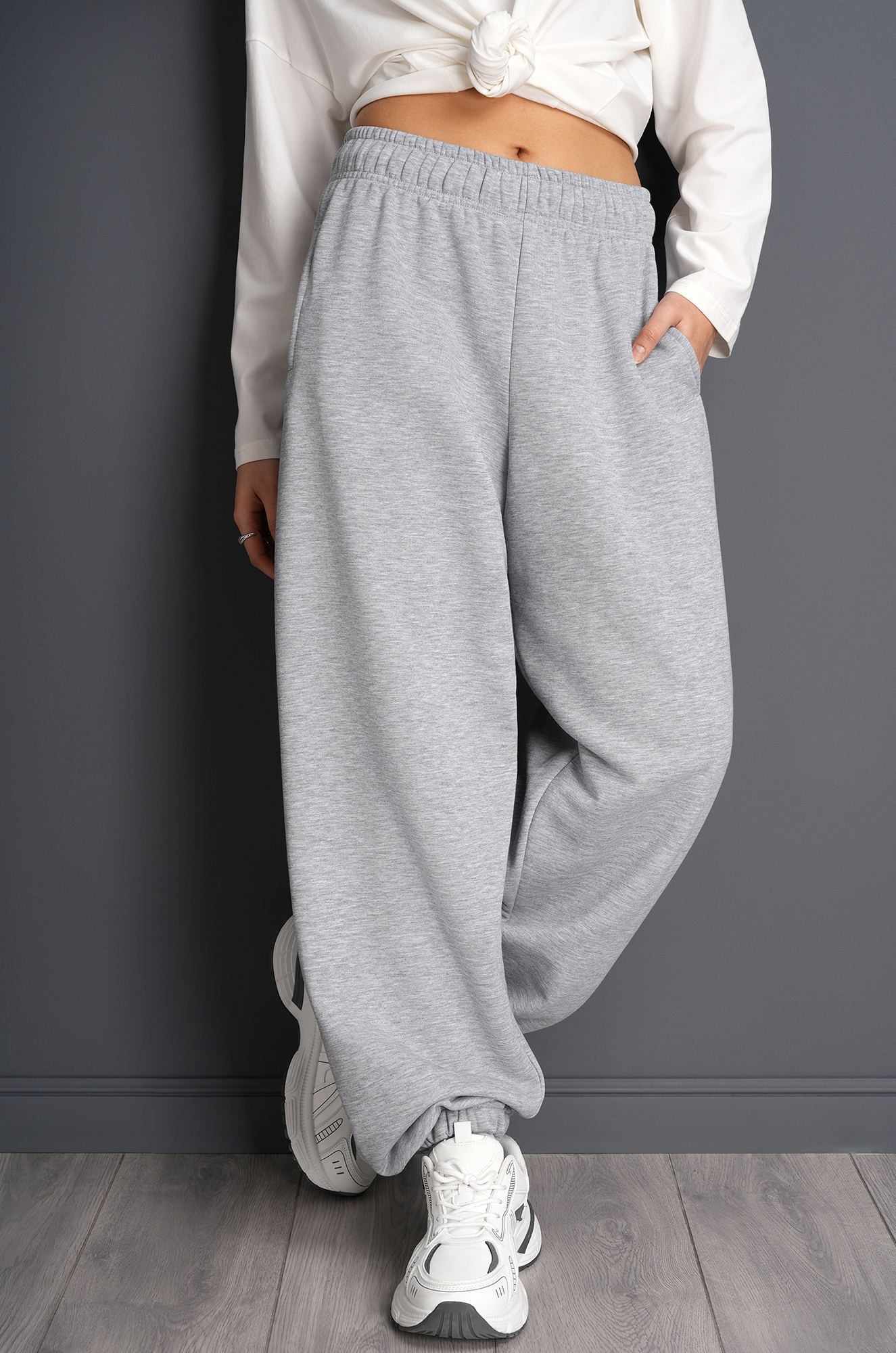 – по низу спортивки оверсайз собраны на манжету с резинкой;