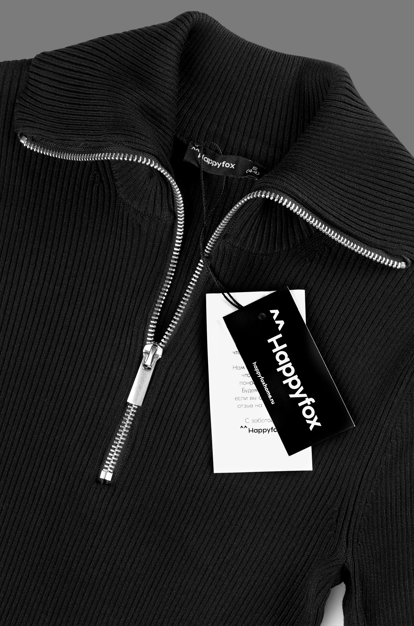 Женский джемпер в рубчик с воротником на молнии Happyfox