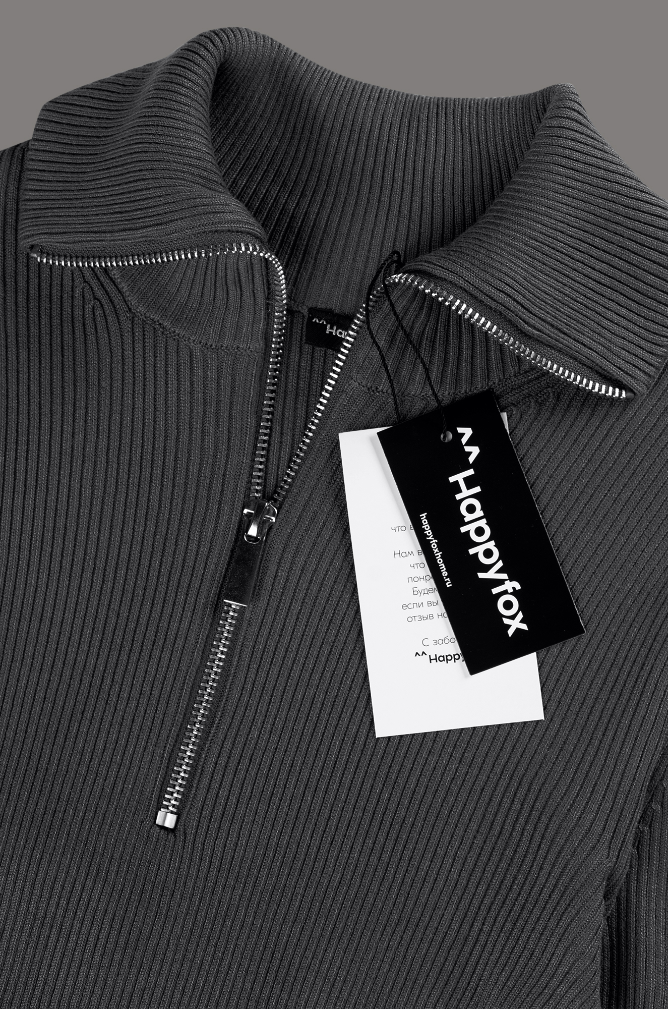 Женский джемпер в рубчик с воротником на молнии Happyfox