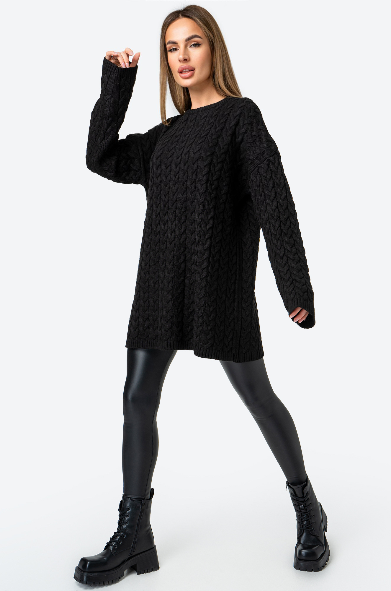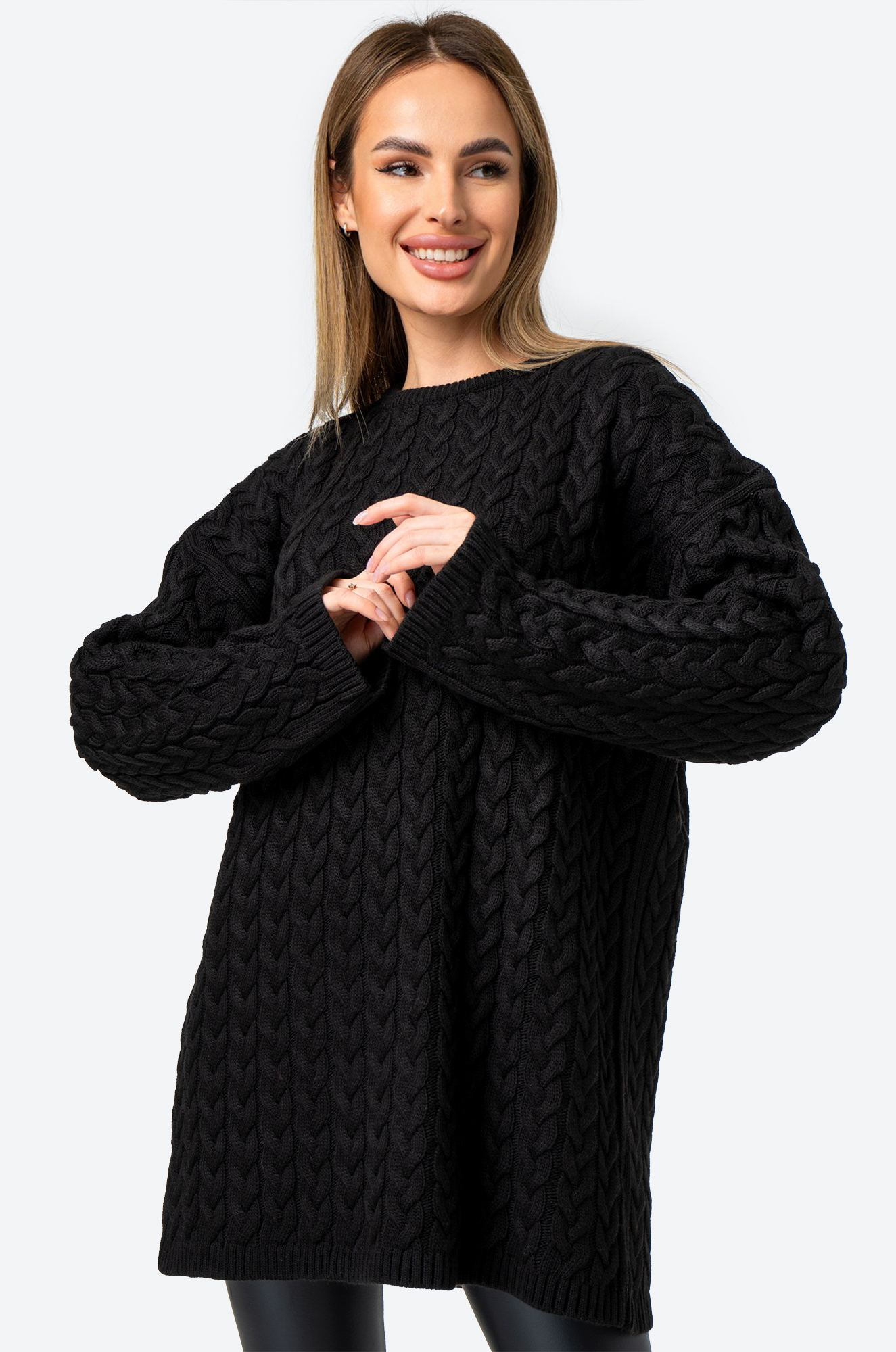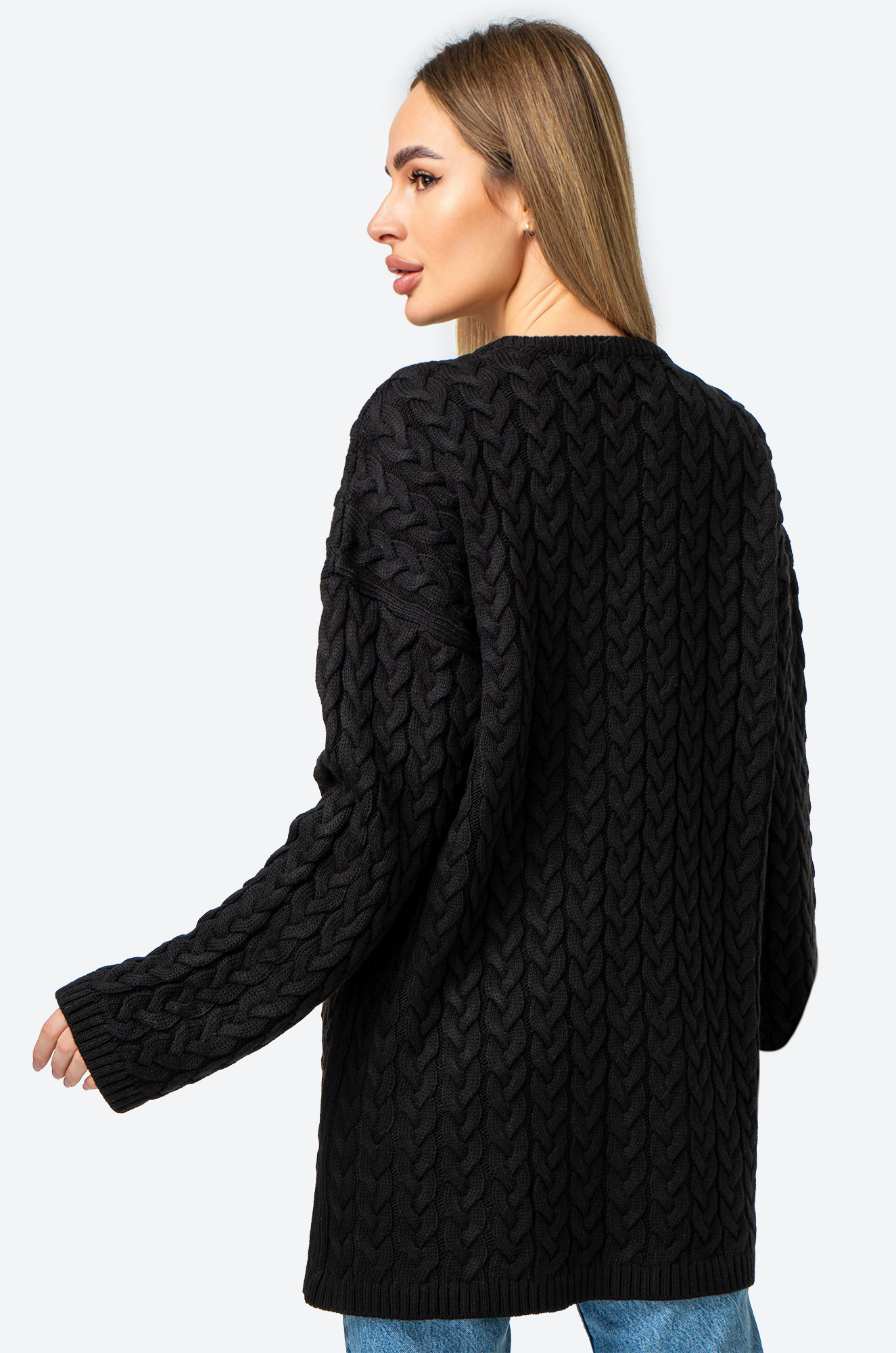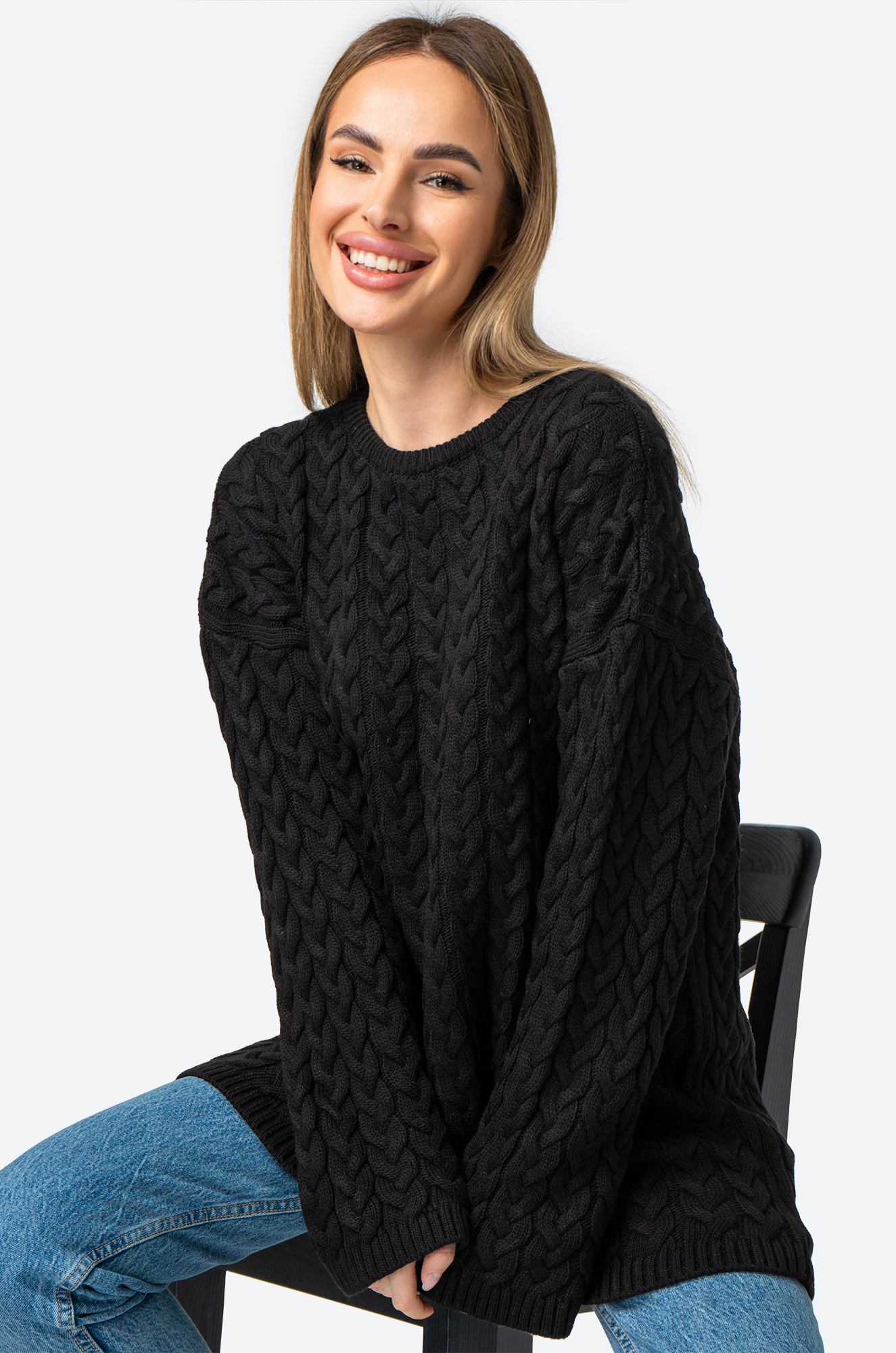 Окутывающий нежностью и заботой женский свитер черного цвета выполнен из акрила и шерсти. Удлиненный силуэт, крой оверсайз, фактурная вязка коса, уютные широкие рукава – в этом джемпере для женщин есть все, что поможет оставаться стильной в любой ситуации!