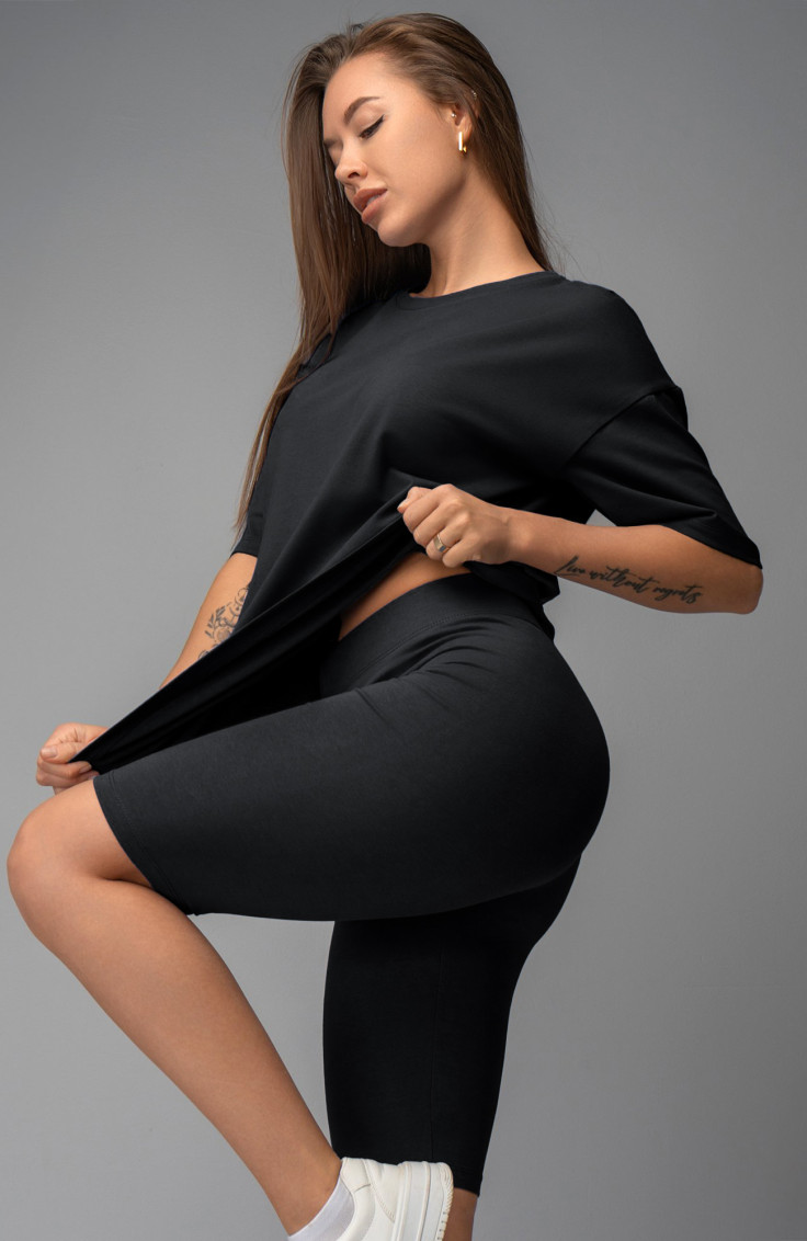• Летние варианты с велосипедками — выбор для активных дней. Комплекты из 100% хлопка идеально подходят для жарких дней.