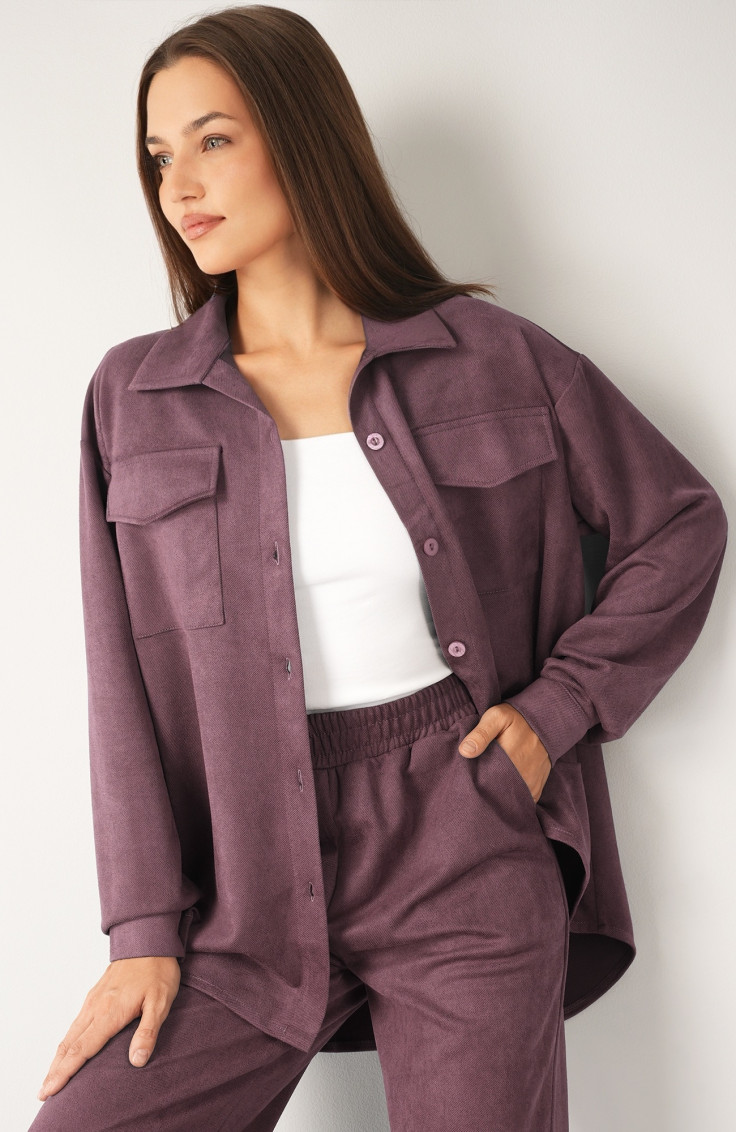 • Костюмы из велюра и экозамши — мягкие, приятные к телу и очень стильные. Отличный выбор на прохладную погоду.