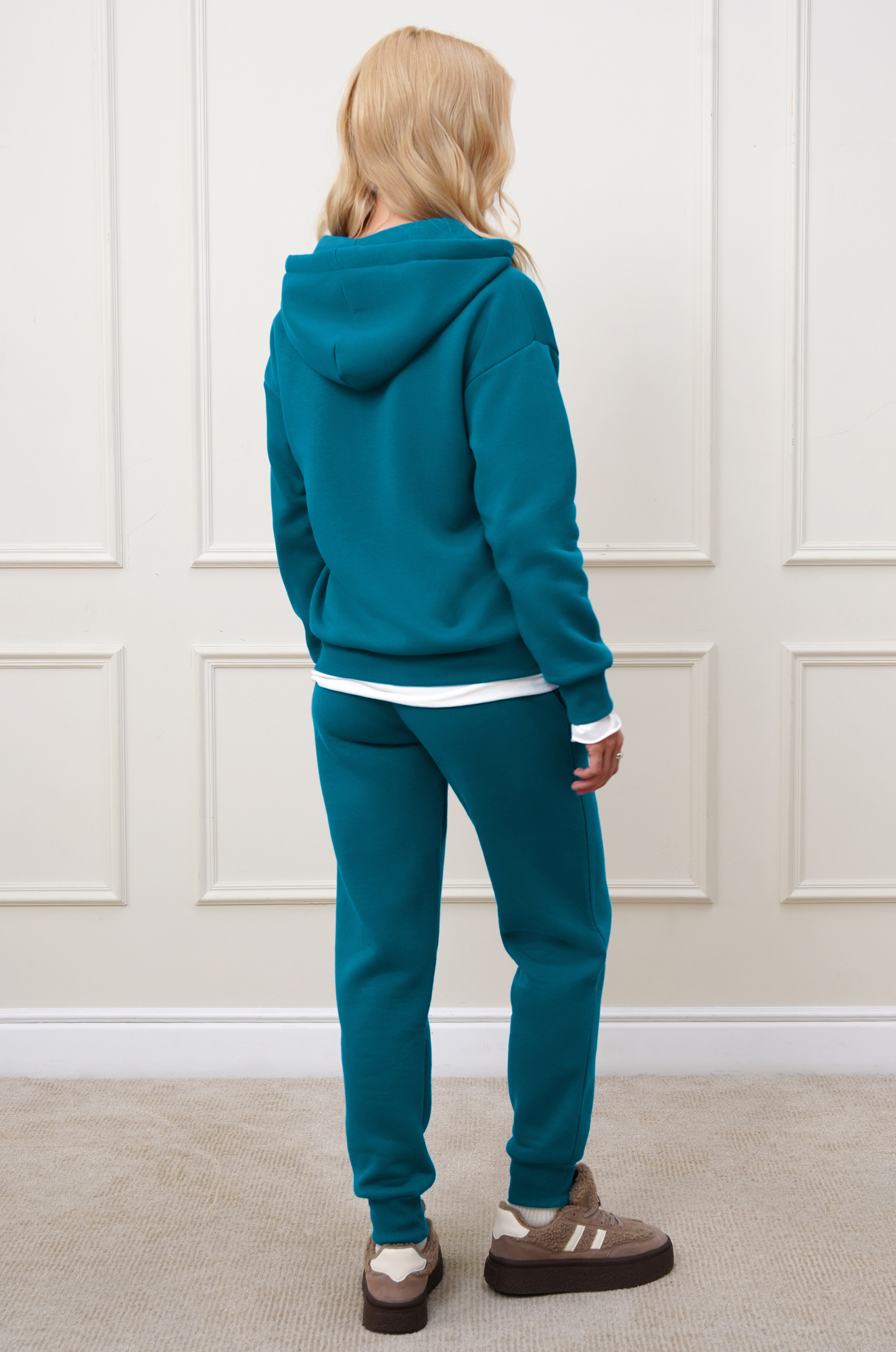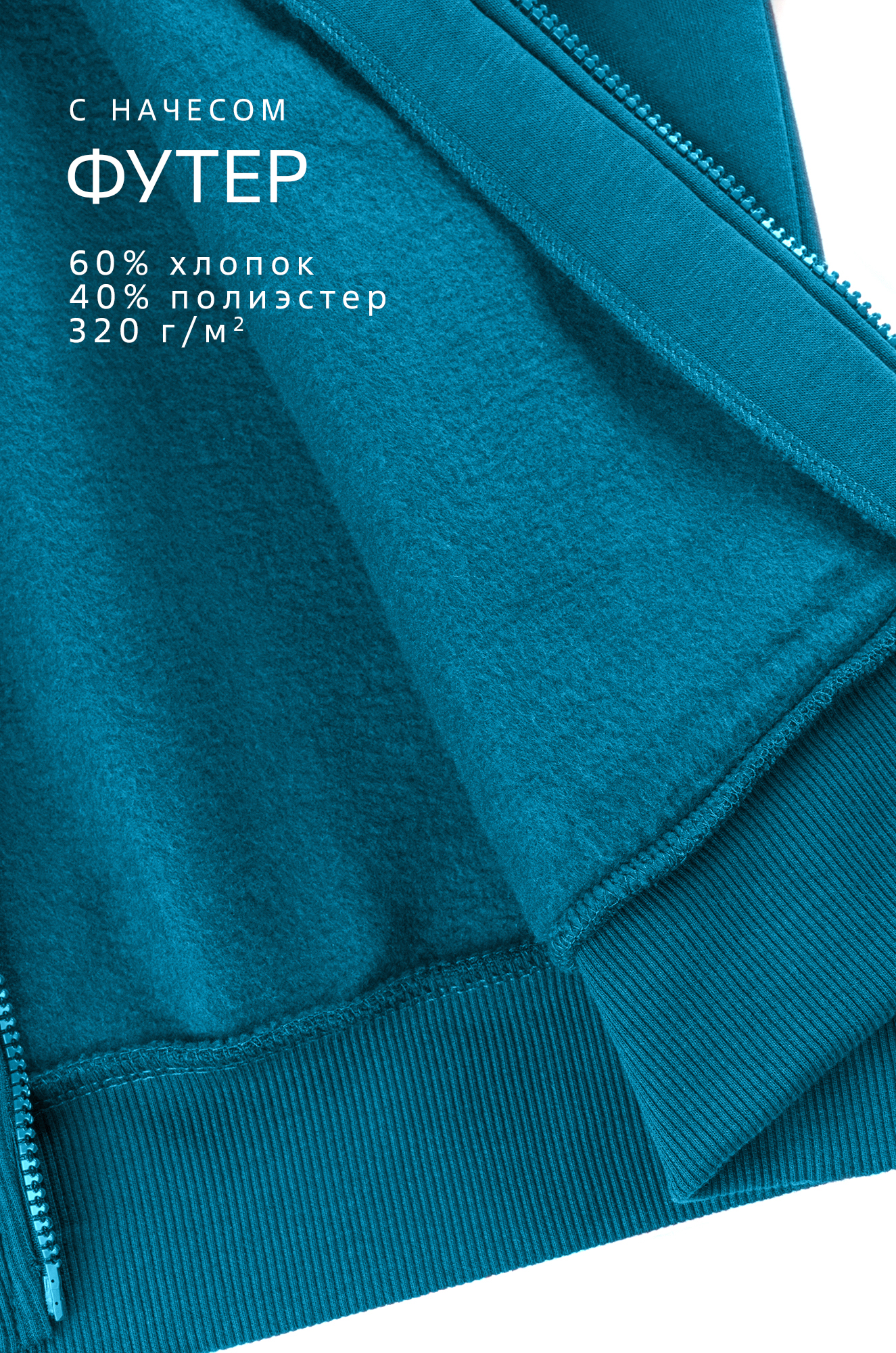— спортивный костюм из футера с начесом (320 г/м2) надежно сохраняет тепло осенью и зимой;