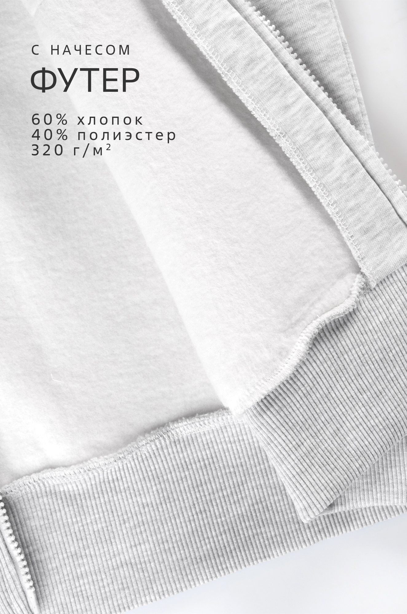 — спортивный костюм из футера с начесом (320 г/м2) надежно сохраняет тепло осенью и зимой;
