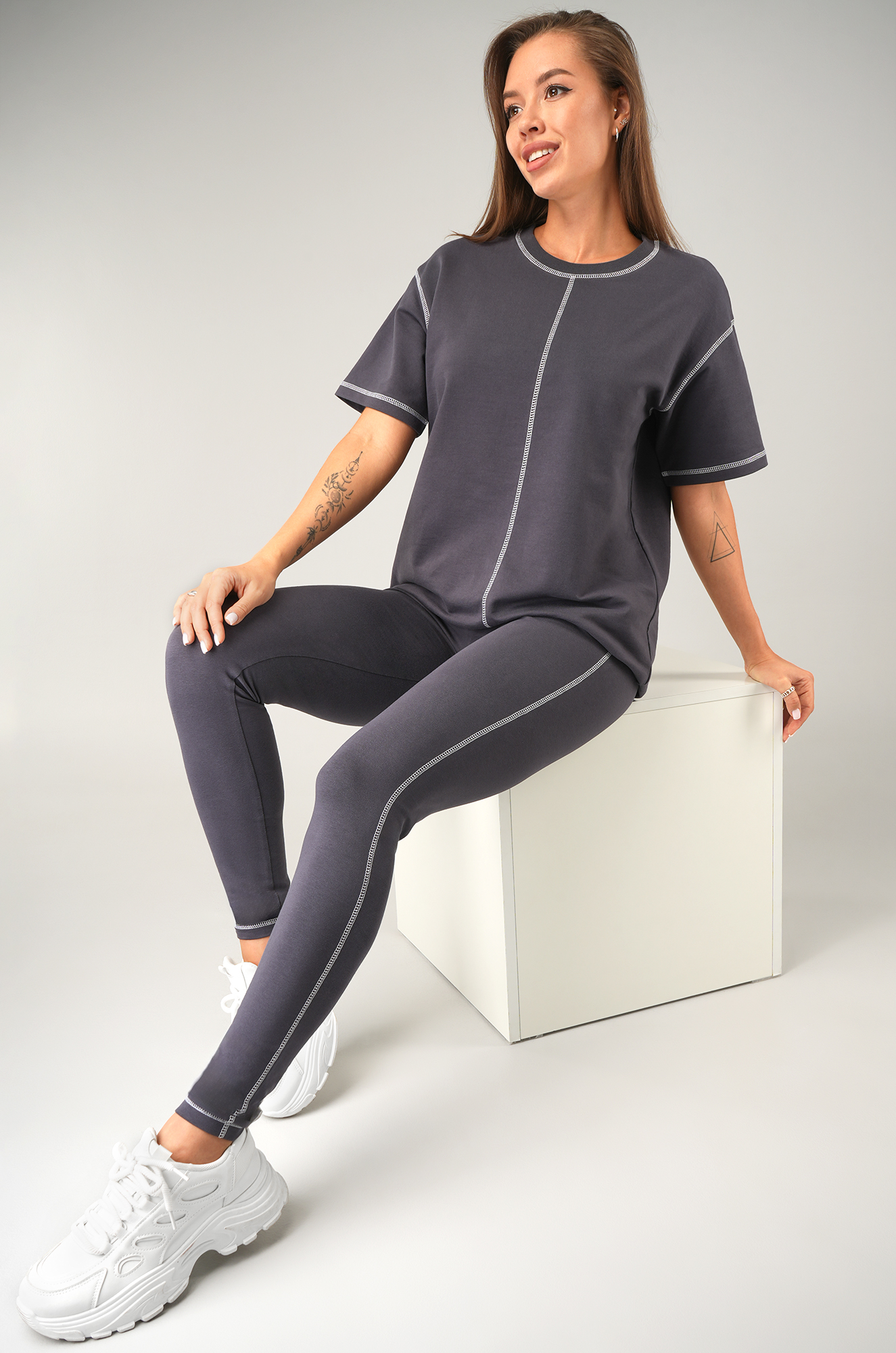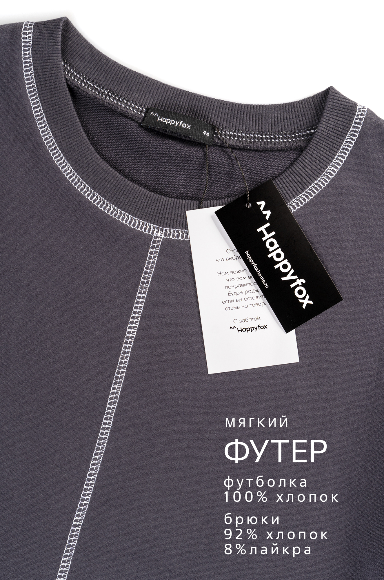 Удобный, стильный и продуманный до мелочей женский костюм с лосинами от Happyfox сочетает в себе комфорт и изящность. Темно-серый спортивный костюм станет любимым вариантом как для дома, так и для спорта.
