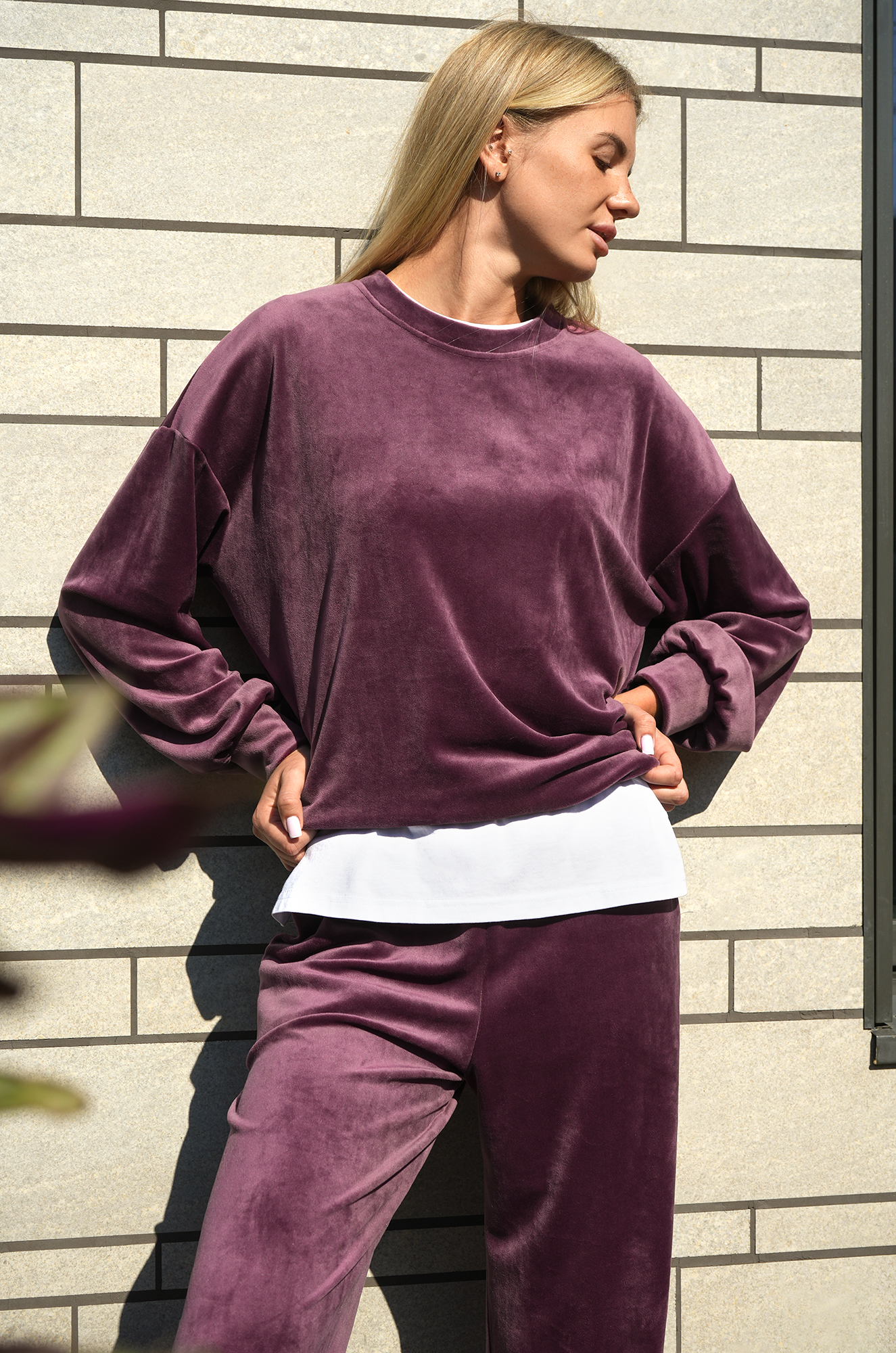 — велюровый костюм оверсайз подойдет на каждый день;