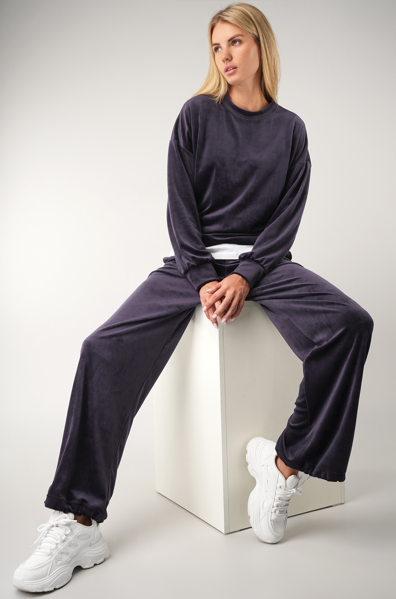 Повседневный велюровый костюм с брюками имеет свободный прямой крой и удобен для дома и прогулок. Бархатный костюм подойдет для путешествий и домашнего уюта. Фиолетовый костюм идеален для осенних и весенних образов.