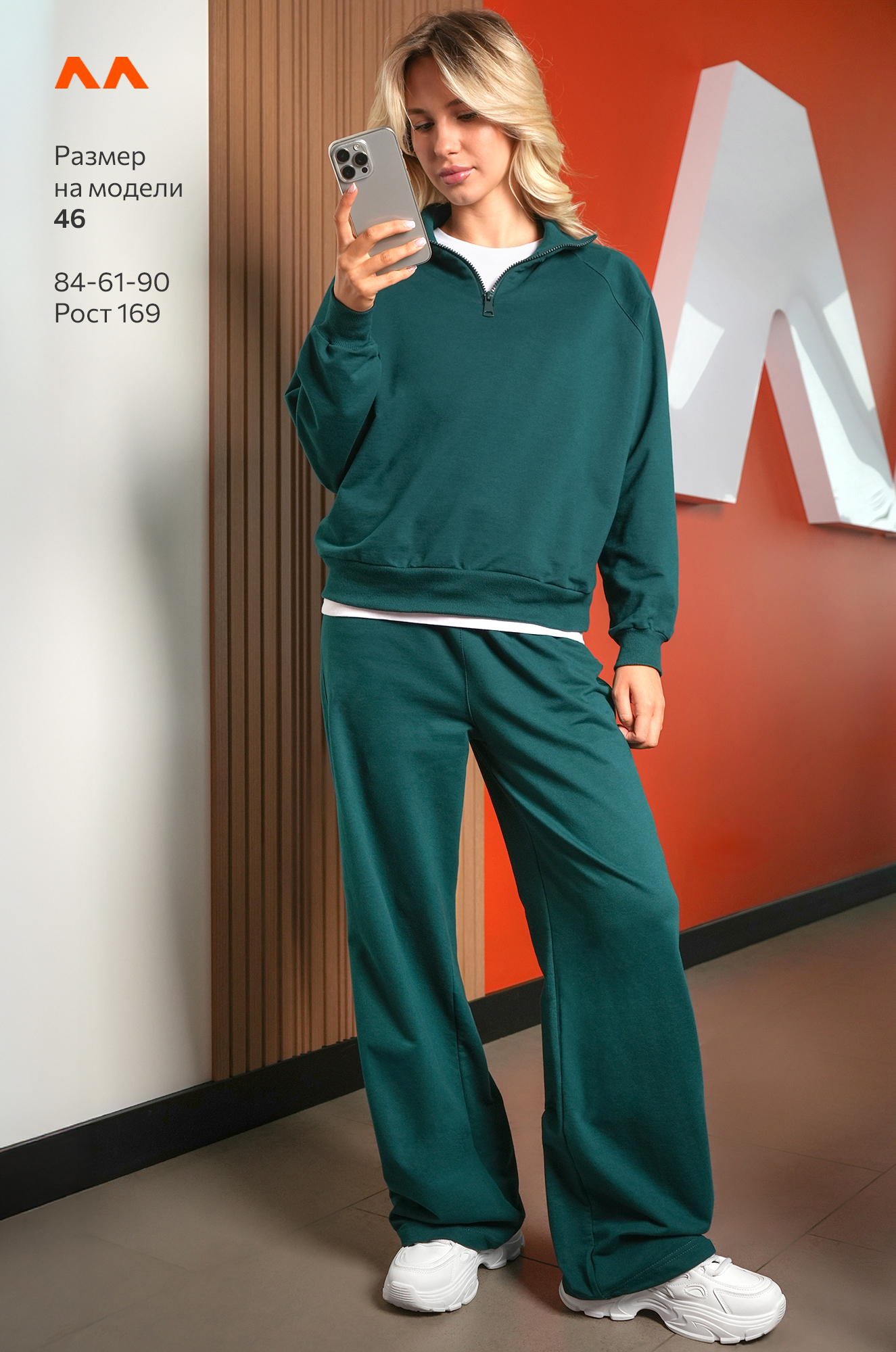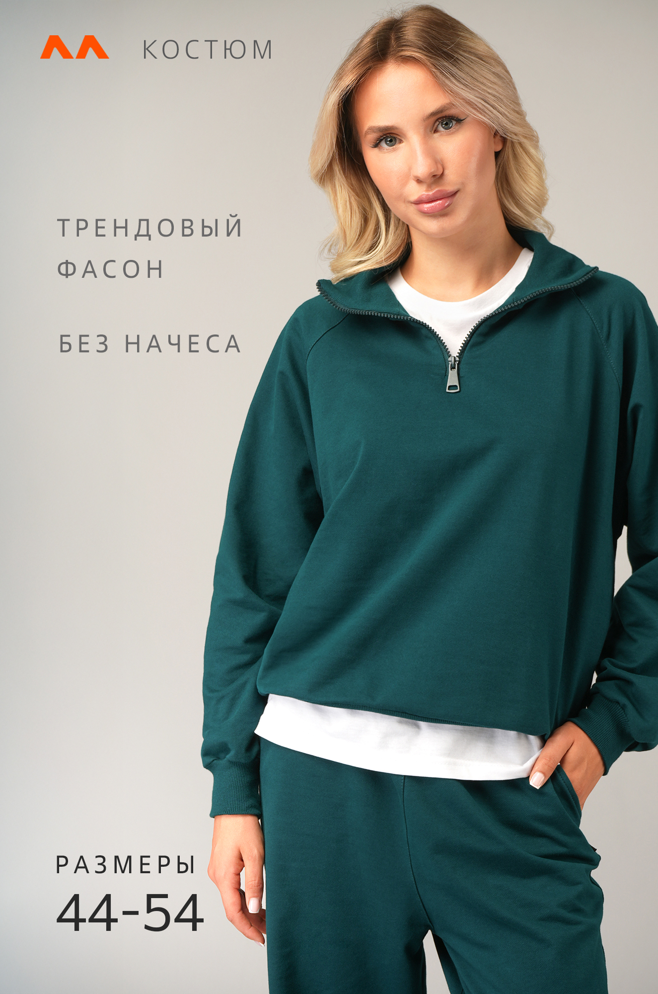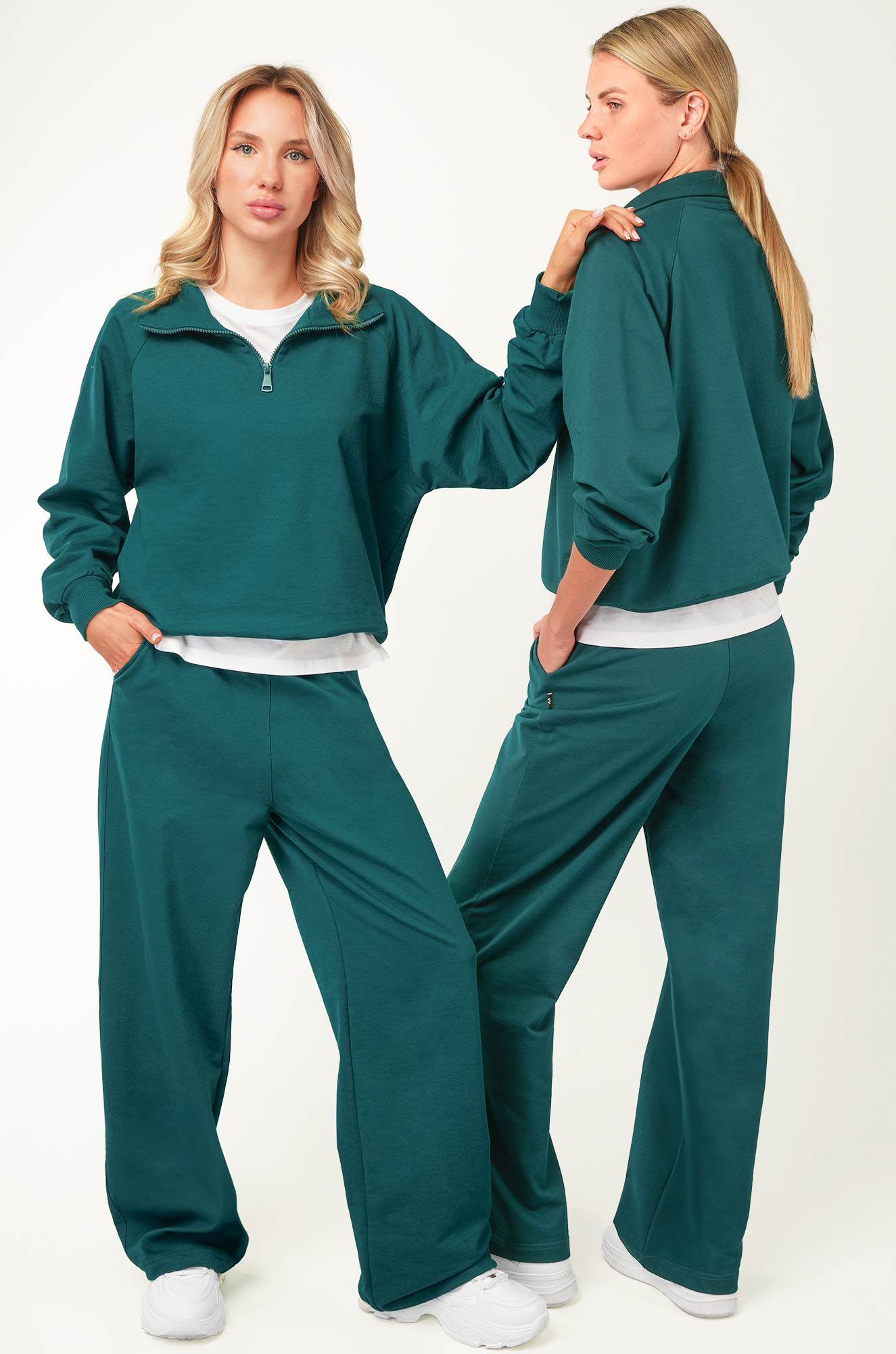 Свободный крой, мягкая горловина, эластичные манжеты, практичные карманы – женский костюм цвета морской волны подарит комфорт и уверенность в себе в любой ситуации!