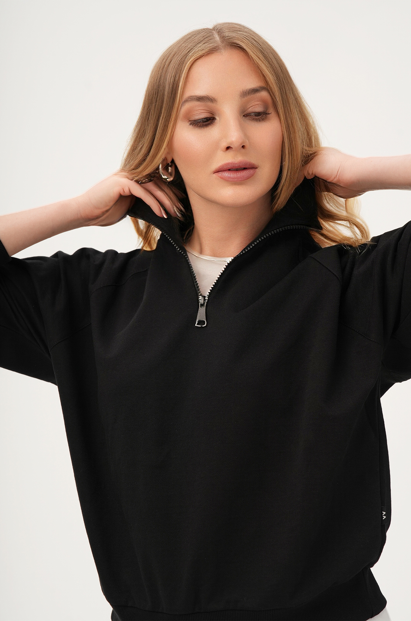 Демисезонный костюм двойка для женщин выполнен из хлопкового трикотажа футер. Благодаря молнии на воротнике внешний вид толстовки меняется в зависимости от вашего настроения. Воротник-стойка мягко обрамляет шею: ты можешь расстегнуть молнию и создать более спокойный образ.