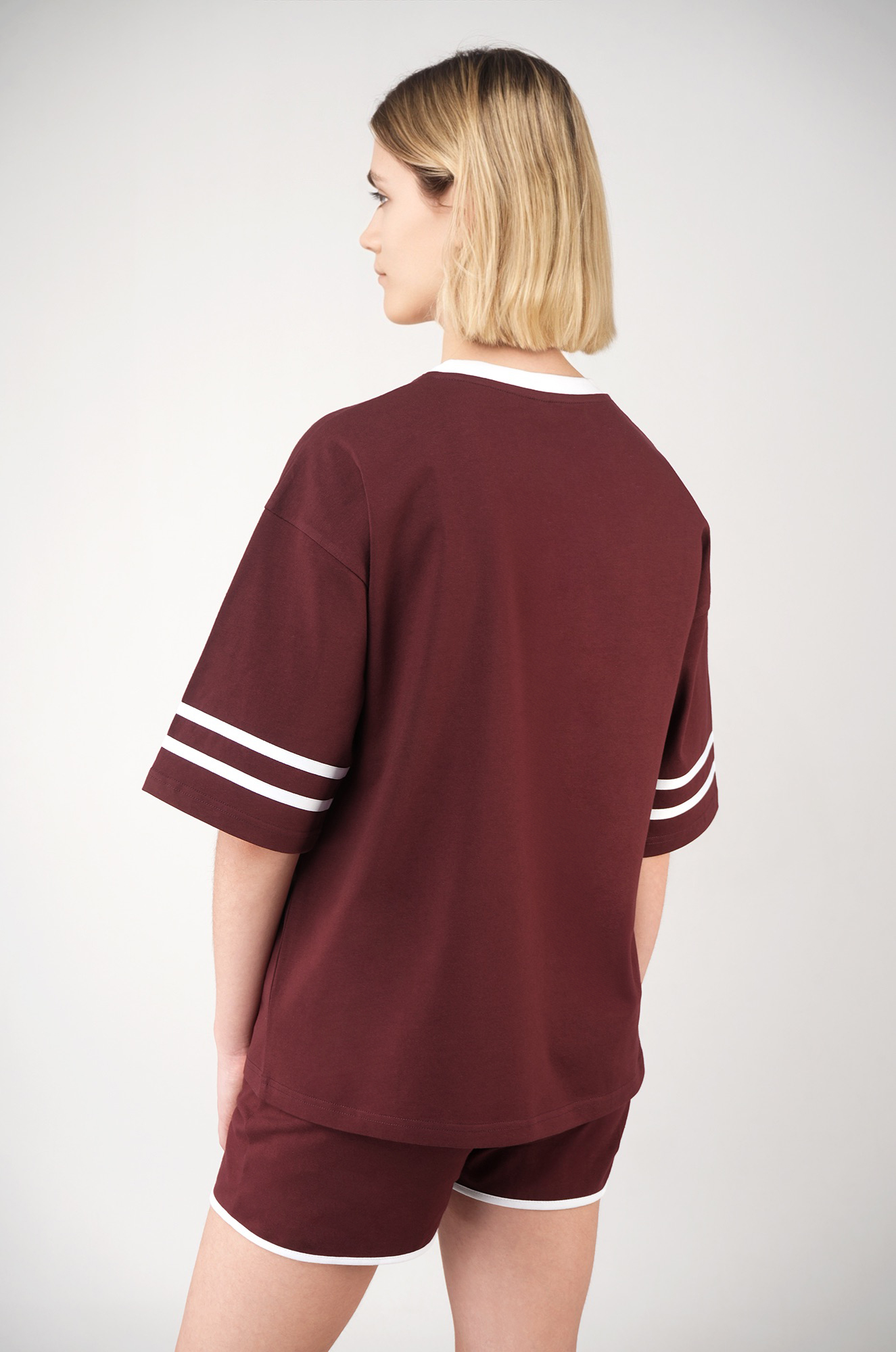 — футболка оверсайз с удлиненным рукавом до локтя создает расслабленный силуэт;
