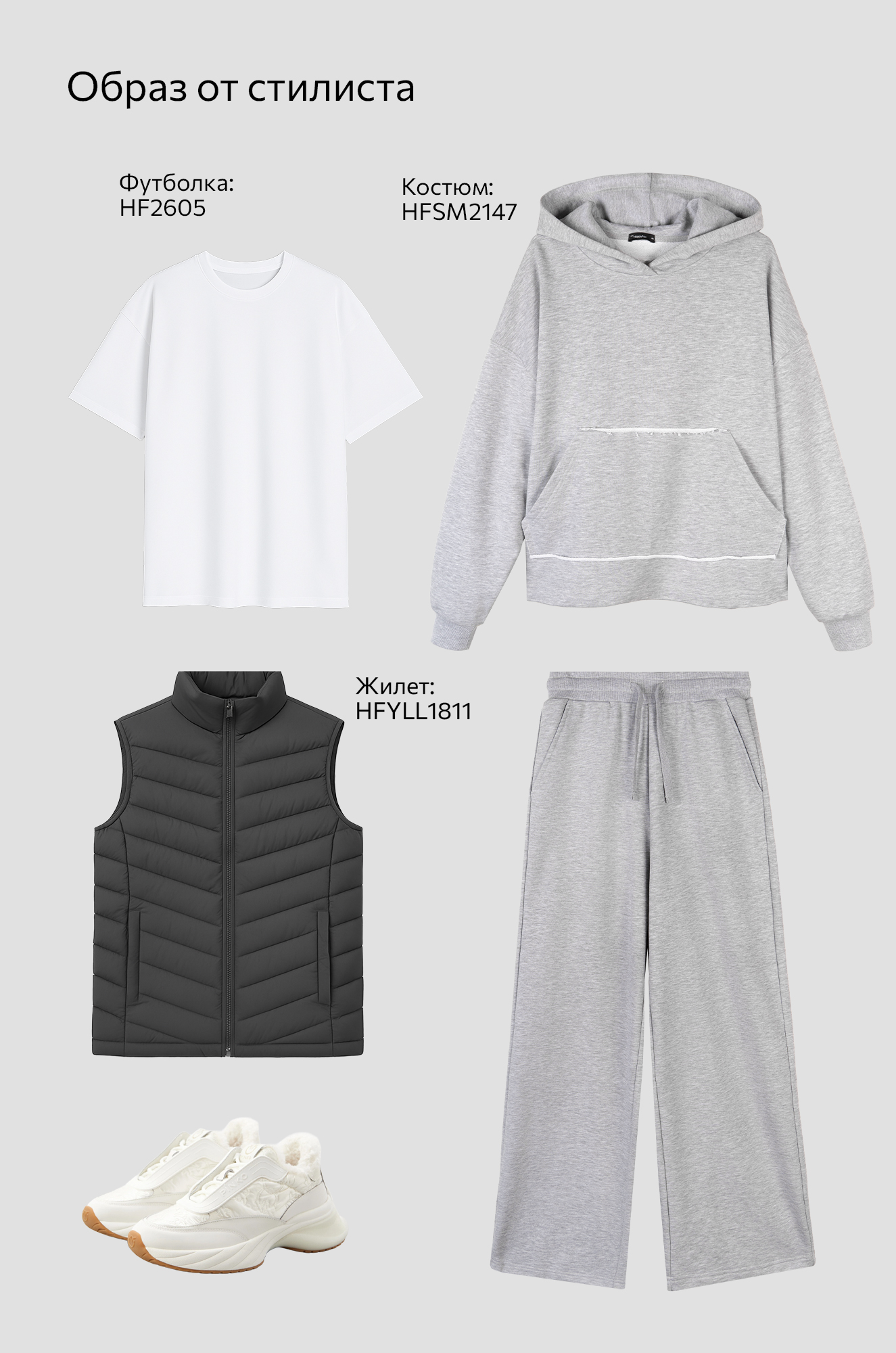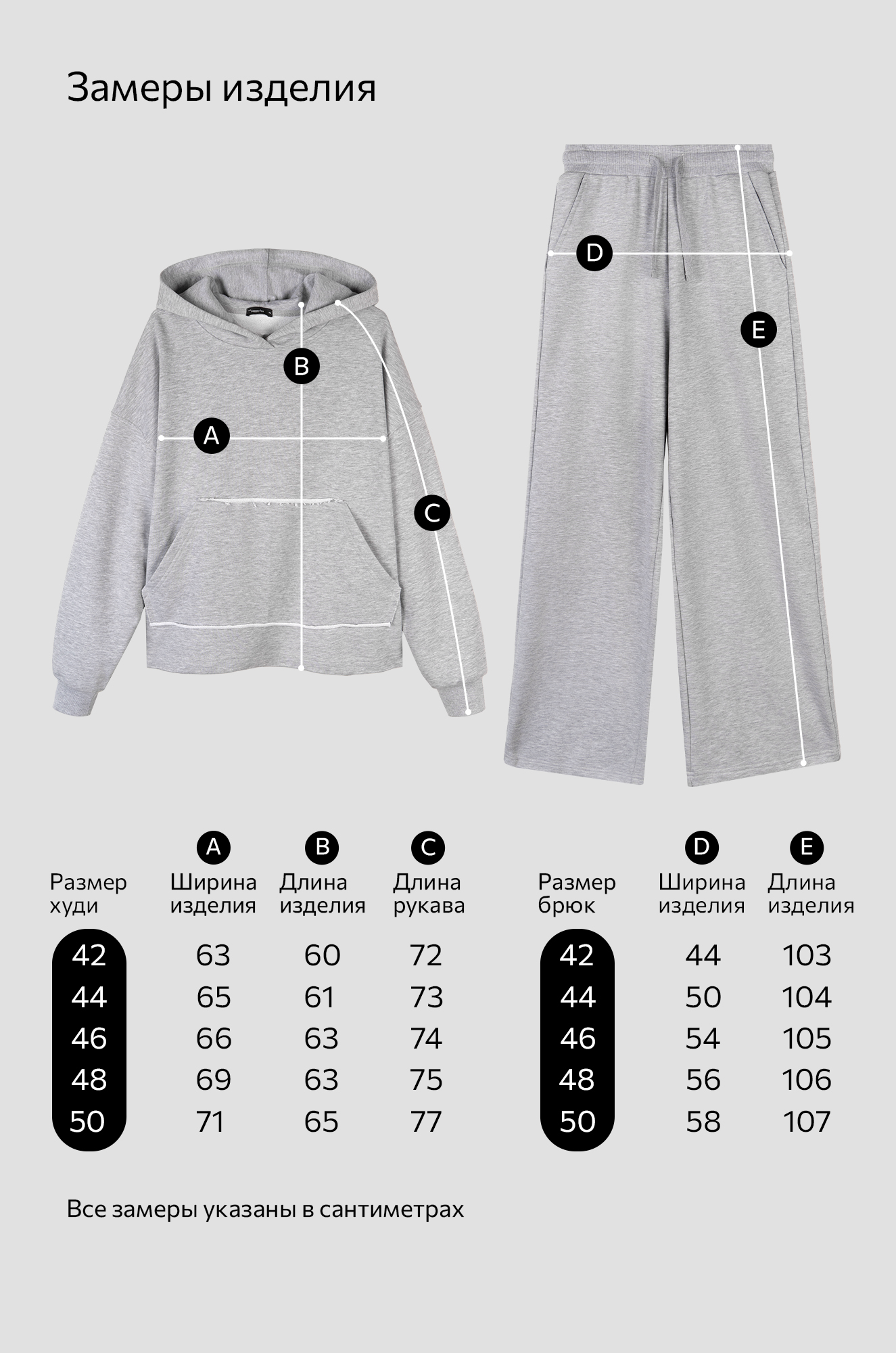 Теплый костюм в цвете серый меланж создает ощущение комфорта. Худи оверсайз с глубоким капюшоном и кулиской по низу легко меняет силуэт — от свободного до более собранного. Удобный карман кенгуру добавляет комплекту практичности. Широкие брюки палаццо регулируются шнурком по талии. Штаны также утягиваются по низу, позволяя играть с формой.