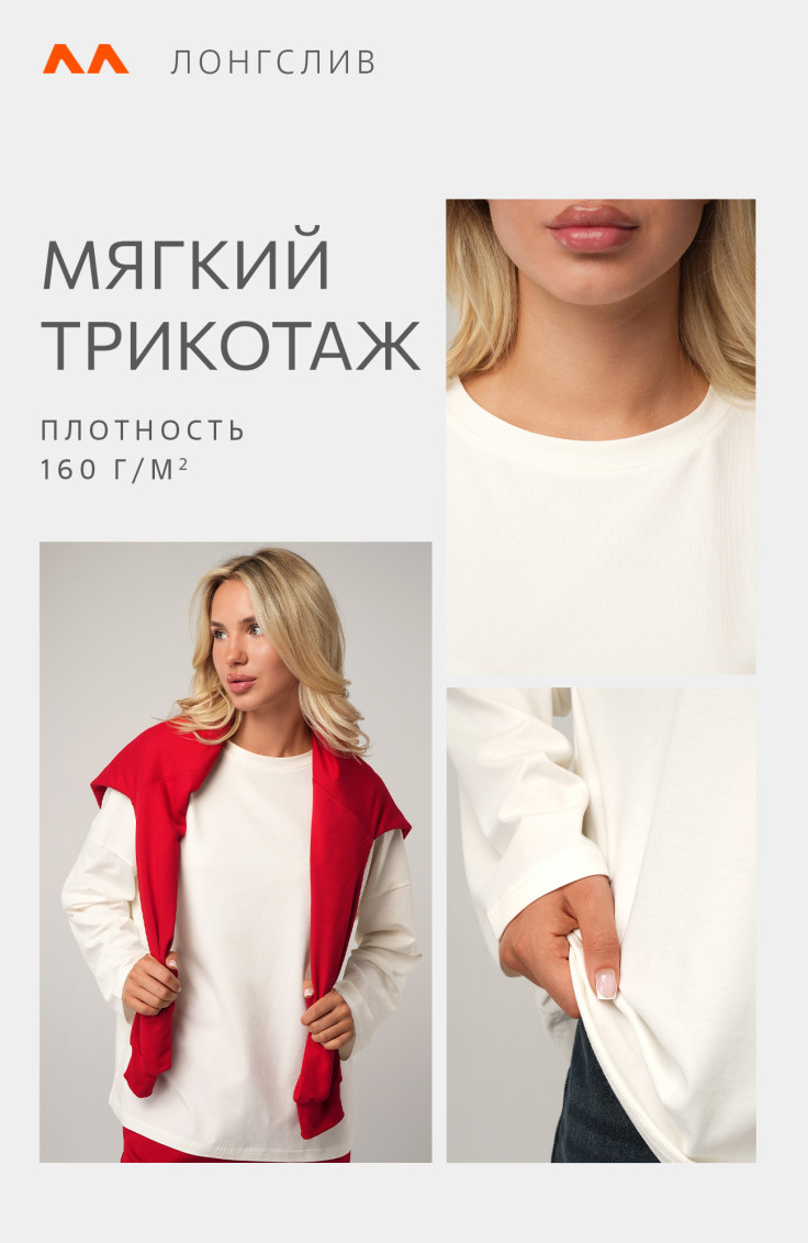 • Лонгсливы из ткани «лапша» — мягкие, эластичные и приятные к телу. Подчёркивают фигуру и хорошо держат форму.