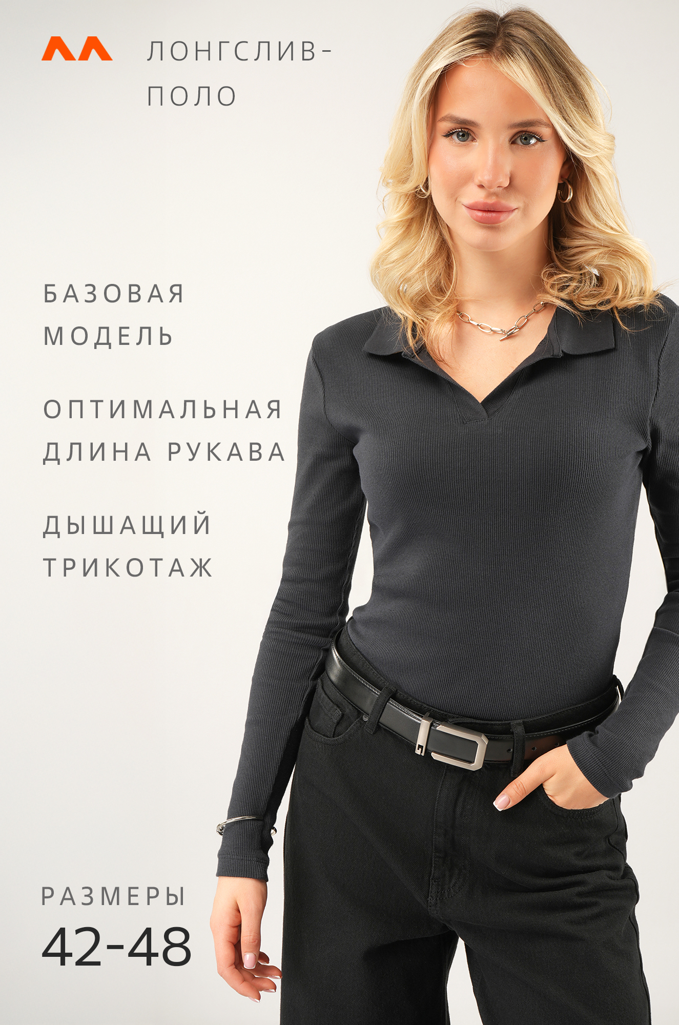 Стильный, удобный и женственный — однотонный женский лонгслив поло черного цвета станет идеальной базой для любого образа! Мягкий трикотаж в рубчик красиво подчеркивает фигуру и дарит комфорт в течение всего дня. Черный лонг с V-вырезом легко впишется и в деловой стиль, и в расслабленный повседневный образ.