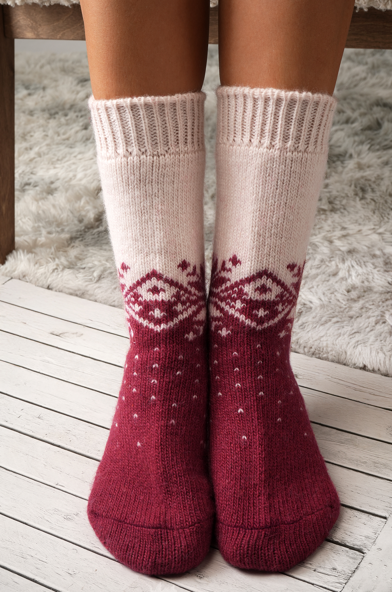 Теплые женские носочки прекрасно подойдут для дома, когда хочется уюта и нежности. Вязаные шерстяные носки с рисунком украсят зимние вечера и сделают их по-настоящему сказочными.