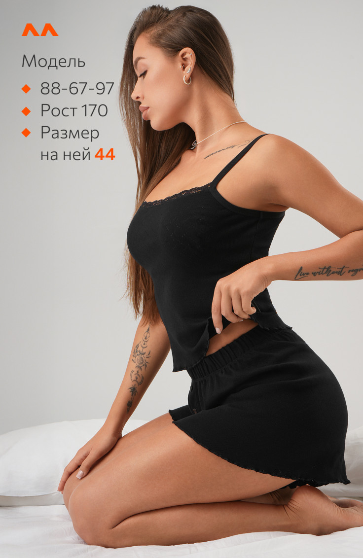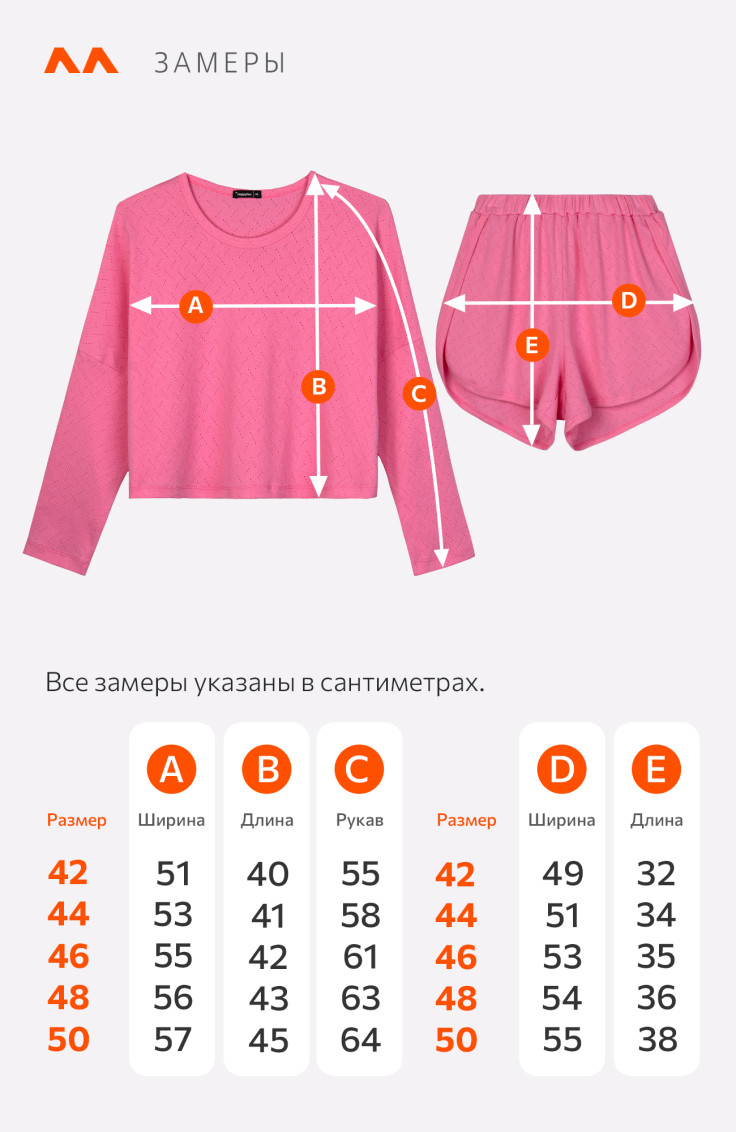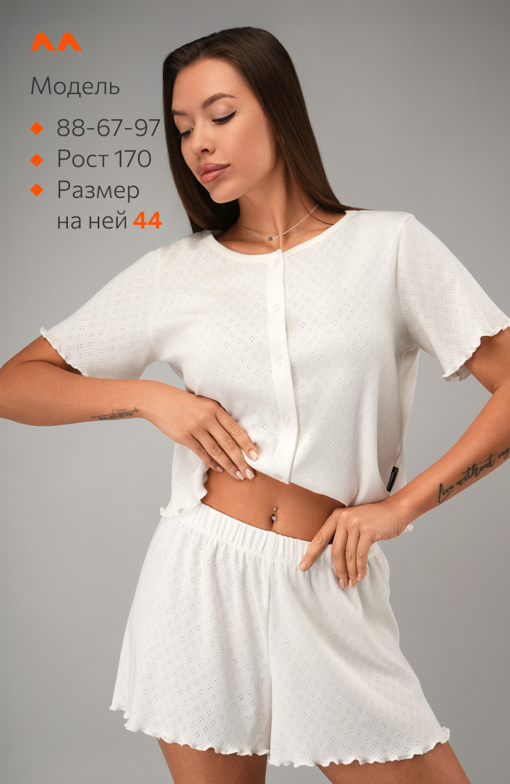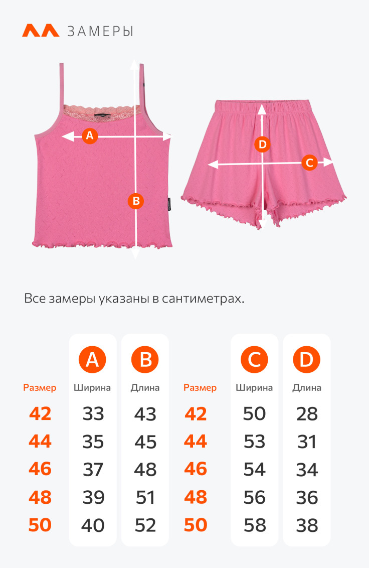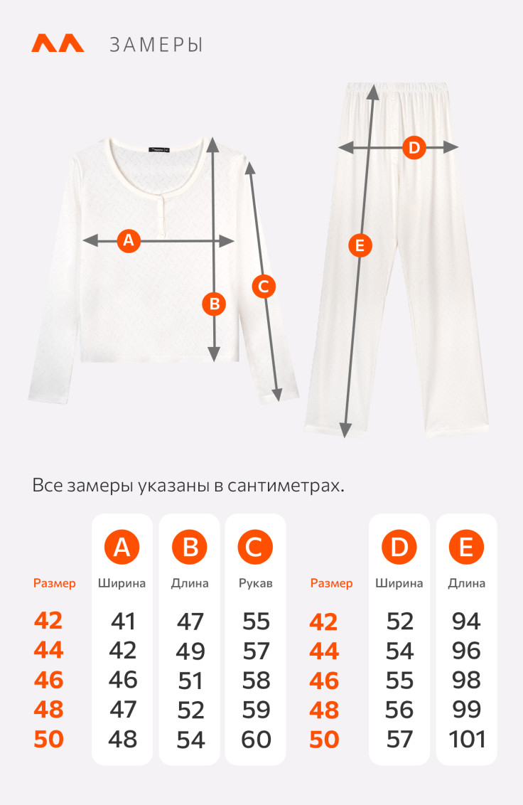 • Не забывайте про размер: пижама должна быть удобной и не стеснять движений.Обратите внимание на таблицу размеров с актуальными замерами, которую найдёте в каждой карточке товара.