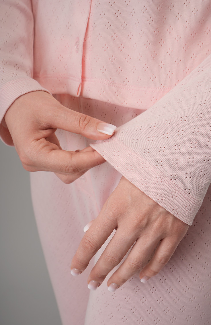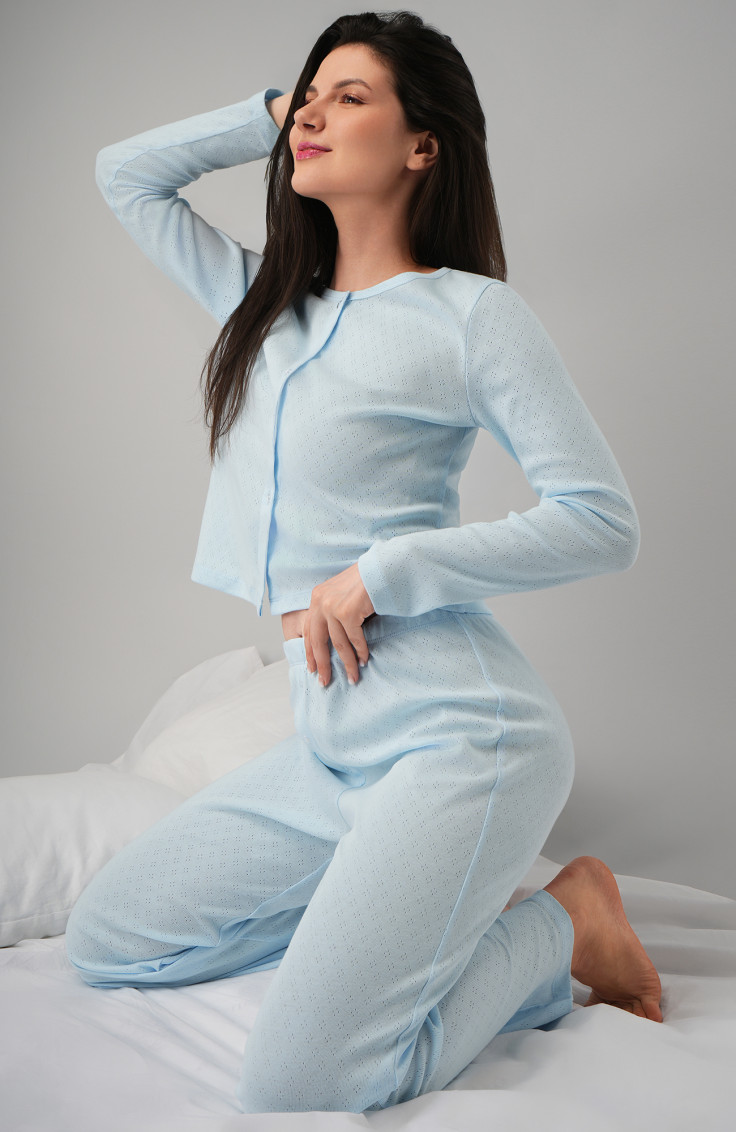 • Классические пижамы с брюками – состоят из верха с длинным или коротким рукавом и брюк с эластичным поясом. Идеальны для тех, кто предпочитает традиционный стиль и комфорт.